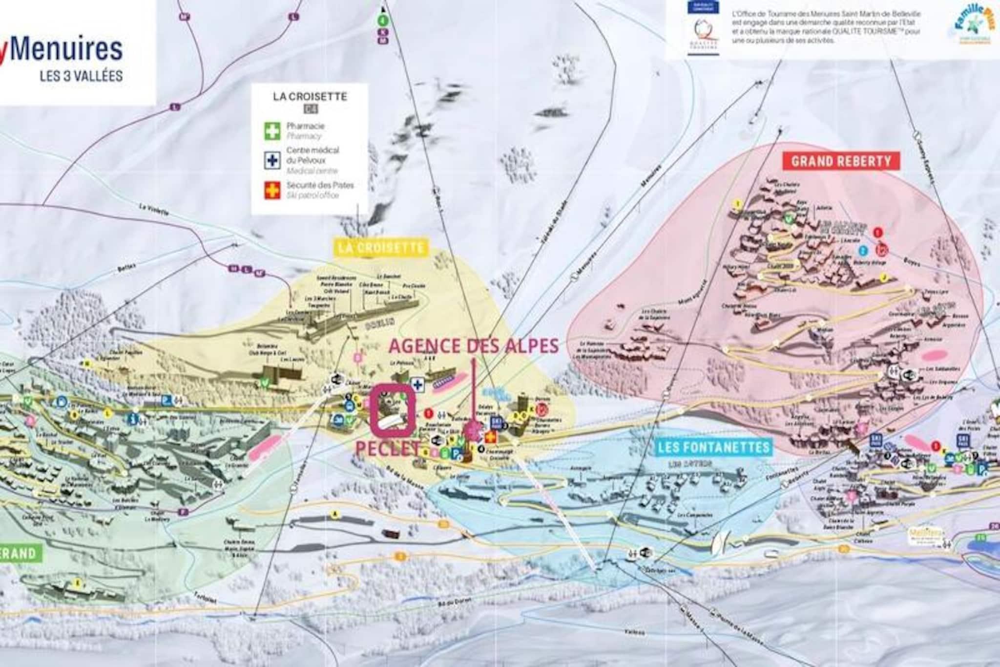 In the vibrant heart of the La Croisette district in Les Menuires, this beautifully renovated two-room apartment offers a warm and inviting retreat for your alpine getaway. Situated at the foot of the slopes and just 30 meters from the ski school meeting point, it provides unparalleled convenience for ski enthusiasts of all levels. With shops, restaurants, the bus station, and a sports center all within walking distance, everything you need for a perfect holiday is right at your doorstep. The south-facing balcony invites you to soak in the sunshine and admire the breathtaking mountain views after a day of adventure. This 36m² apartment, located on the 3rd floor of the Peclet residence with elevator access, comfortably accommodates up to four guests. The living room features two cozy single beds and a television, while the separate bedroom offers a comfortable double bed and its own TV for added privacy. The modern kitchen is fully equipped with an induction hob, oven, microwave, refrigerator, dishwasher, and all the essentials for preparing delicious meals. The open-plan bathroom includes a sleek shower and sink, while a separate toilet is conveniently equipped with a washer/dryer. Thoughtful touches like electric roller shutters and duvets ensure a comfortable and restful stay. Les Menuires is a paradise for winter sports lovers, with its direct access to the renowned 3 Valleys ski area, offering endless slopes and stunning alpine scenery. Beyond skiing, the area boasts a lively après-ski scene, charming shops, and delightful dining options. In summer, the mountains transform into a haven for hikers and cyclists, with trails that reveal the natural beauty of the French Alps. Whether you’re seeking thrilling adventures or peaceful relaxation, this apartment is the perfect base to create unforgettable memories in every season.