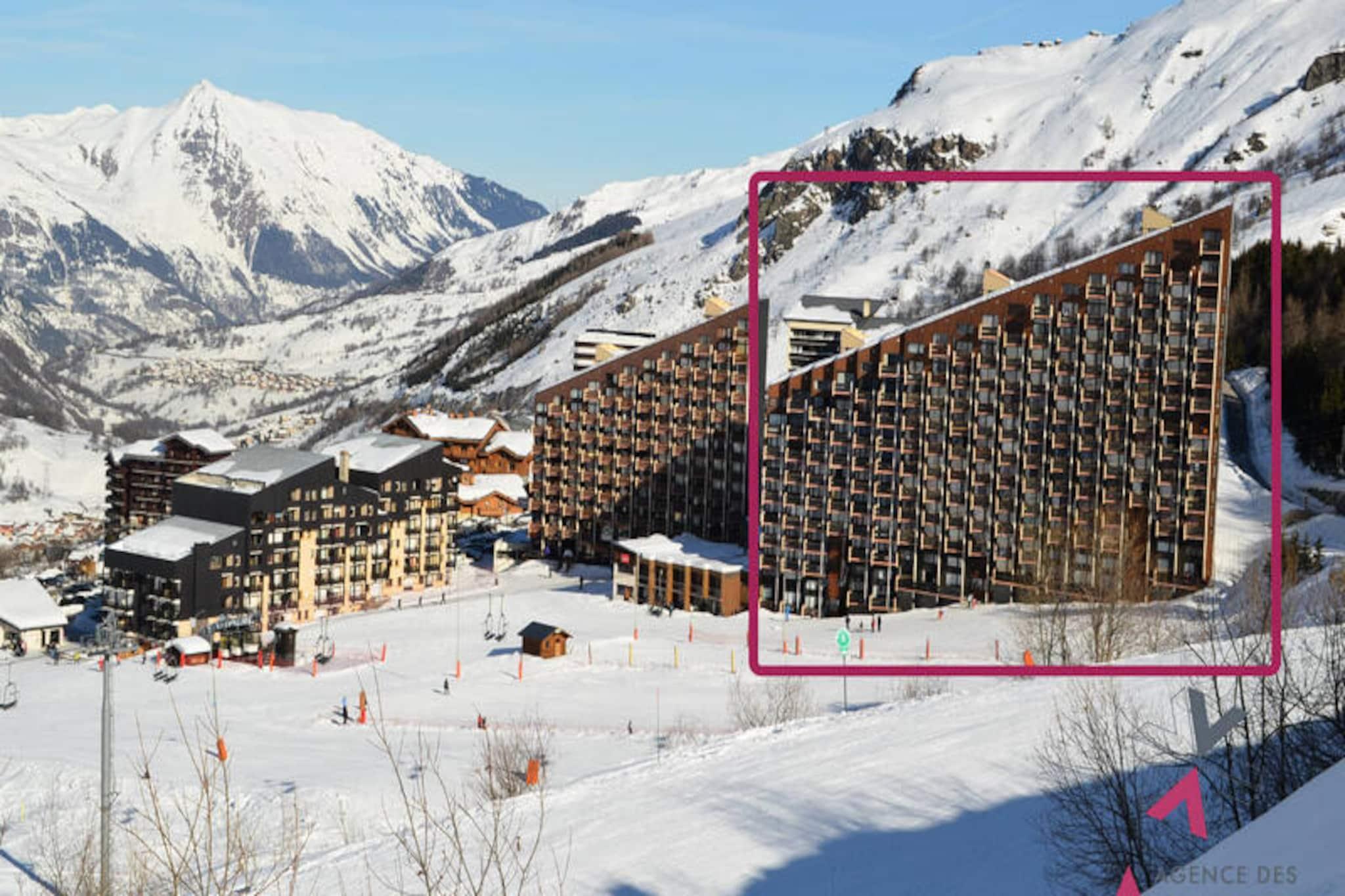 In the serene Preyerand district of Les Menuires, this charming apartment in the Caron residence offers a cozy retreat for your alpine adventures. With its south-facing balcony, you’ll wake up to the gentle warmth of the sun and views of the snowy slopes that beckon just outside your door. The residence is conveniently connected to the heart of the resort by a free gondola lift, operating from early morning to late evening, ensuring easy access to shops, restaurants, and vibrant après-ski activities. Whether you’re here for winter sports or summer hikes, this location places you in the midst of the action while maintaining a peaceful atmosphere. \n\nInside, the apartment is thoughtfully designed for comfort and practicality. Accommodating up to five guests, it features a well-equipped kitchen with modern appliances including an induction hob, oven, microwave, and dishwasher, making meal preparation a breeze. The living room offers flexible sleeping arrangements with single beds and a pull-out bed, while the separate bedroom provides a quiet space with two single beds. The bathroom includes a bathtub and towel warmer, perfect for relaxing after a day on the slopes, and the apartment is equipped with central heating to keep you warm during chilly nights. \n\nThe Caron residence boasts convenient amenities such as elevators and a spacious open-air parking lot, making your stay hassle-free. Nearby, you’ll find ski stores and essential shops, ensuring you have everything you need at your fingertips. For those seeking adventure, the slopes are right at your doorstep, while the gondola lift connects you to the lively resort center for dining, shopping, and entertainment. \n\nWhether you’re drawn to the thrill of skiing, the tranquility of mountain trails, or simply the charm of Les Menuires, this apartment offers the perfect base to create unforgettable memories in the French Alps.