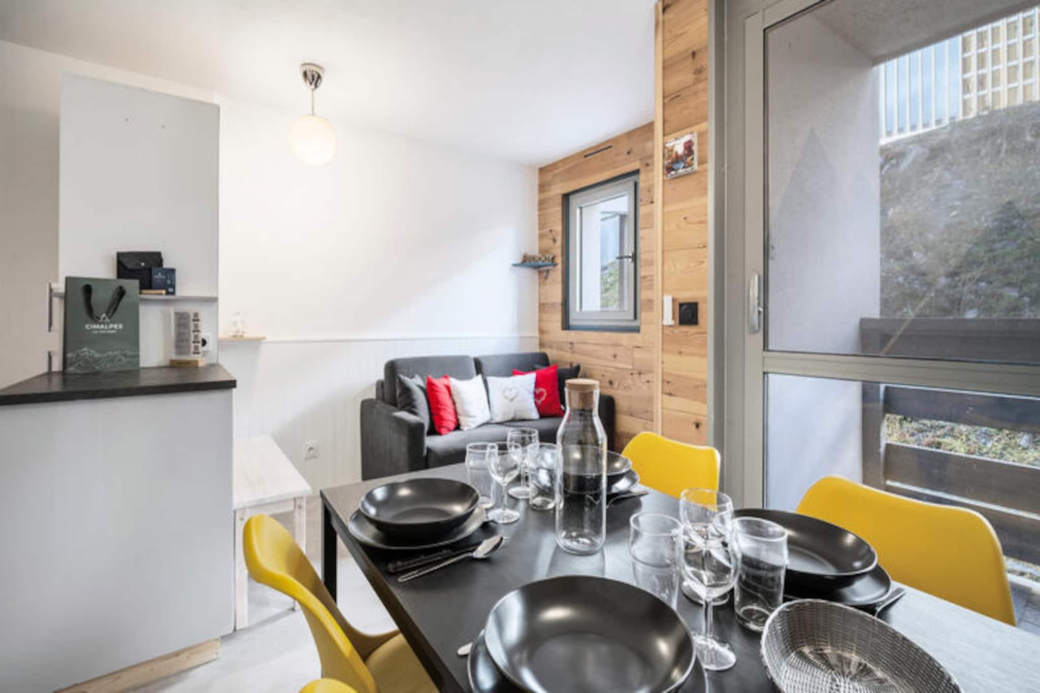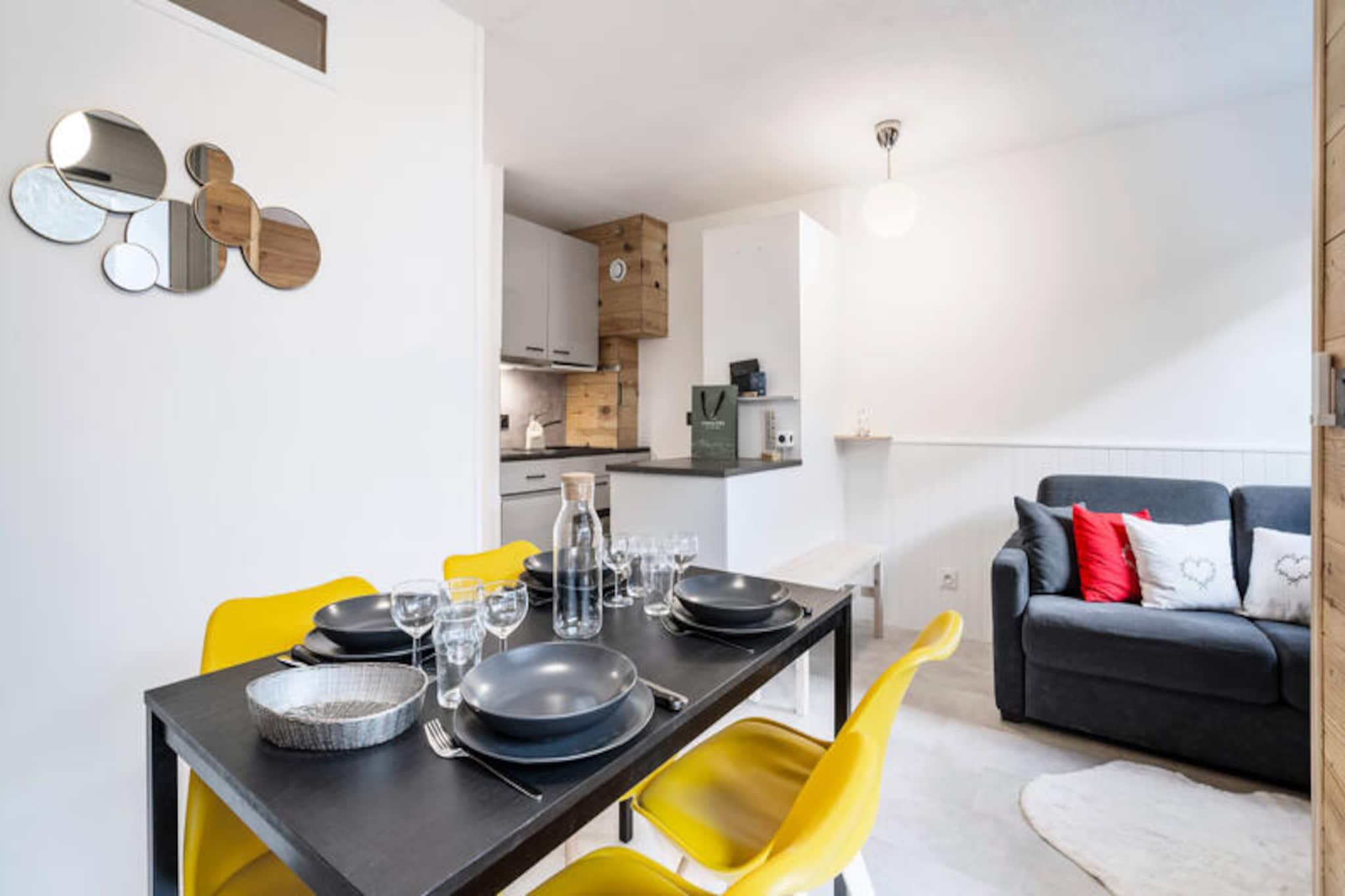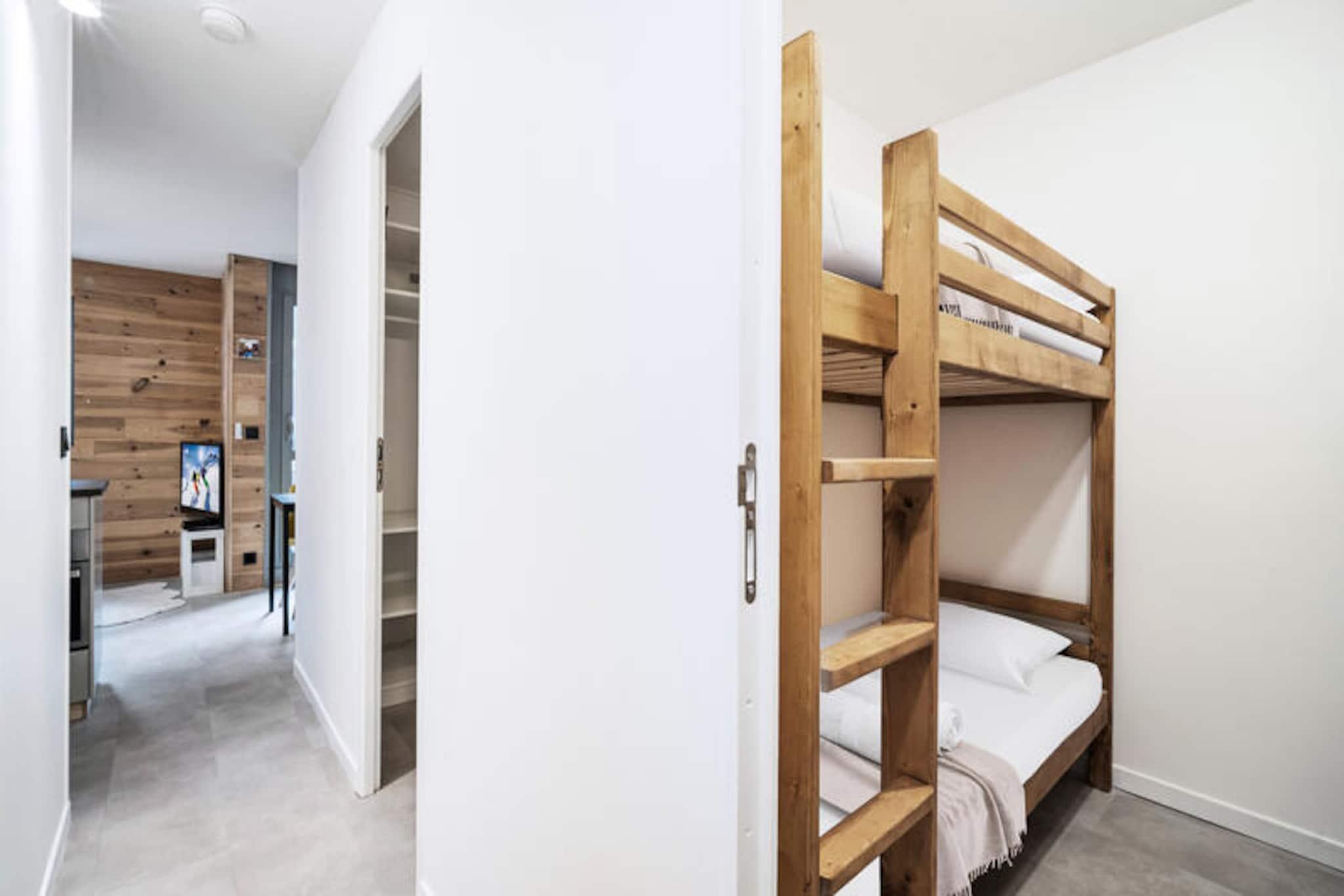 In the heart of Val Thorens, where the majestic Alps meet a vibrant village atmosphere, this charming apartment in the Lauzières Residence offers the perfect alpine escape. Imagine waking up to snow-capped peaks, stepping out to the slopes directly from the rear of the residence, and returning to a warm, modern retreat after a day of adventure. With its prime location below the sports center, you’re just moments away from shops, restaurants, and the lively energy of the resort center. This thoughtfully designed 30m² apartment comfortably accommodates up to four guests, making it ideal for couples or small families. The clever layout includes a cozy bedroom with a double bed and a separate cabin area with bunk beds, ensuring both comfort and privacy. The open-plan living area features a fully equipped kitchen, perfect for preparing hearty meals after a day on the slopes. The décor blends vibrant yellow accents with natural wood tones, creating a warm and inviting ambiance that feels both modern and cozy. High-speed WiFi and a well-appointed bathroom add to the convenience of your stay. Val Thorens, renowned as the highest ski resort in Europe, offers unparalleled access to world-class skiing and snowboarding. Beyond the slopes, explore the resort’s vibrant après-ski scene, indulge in local Savoyard cuisine, or unwind at the nearby sports center. In summer, the mountains transform into a haven for hikers and mountain bikers, with breathtaking trails and panoramic views. Whether you’re seeking thrilling winter sports or a tranquil summer retreat, this apartment provides an elegant and functional base for your alpine adventures. With included services such as linens, beds made upon arrival, and end-of-stay cleaning, every detail is designed to make your stay seamless and unforgettable.