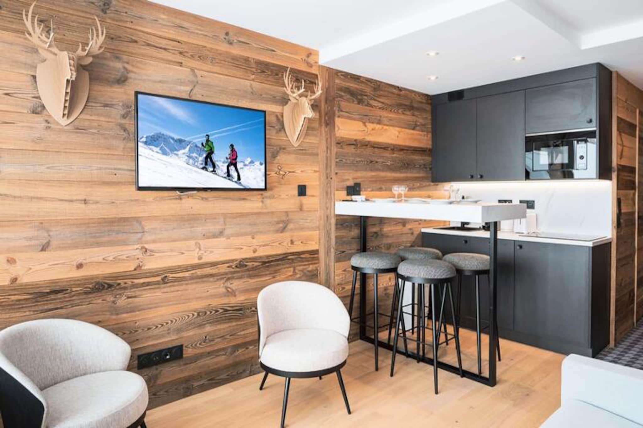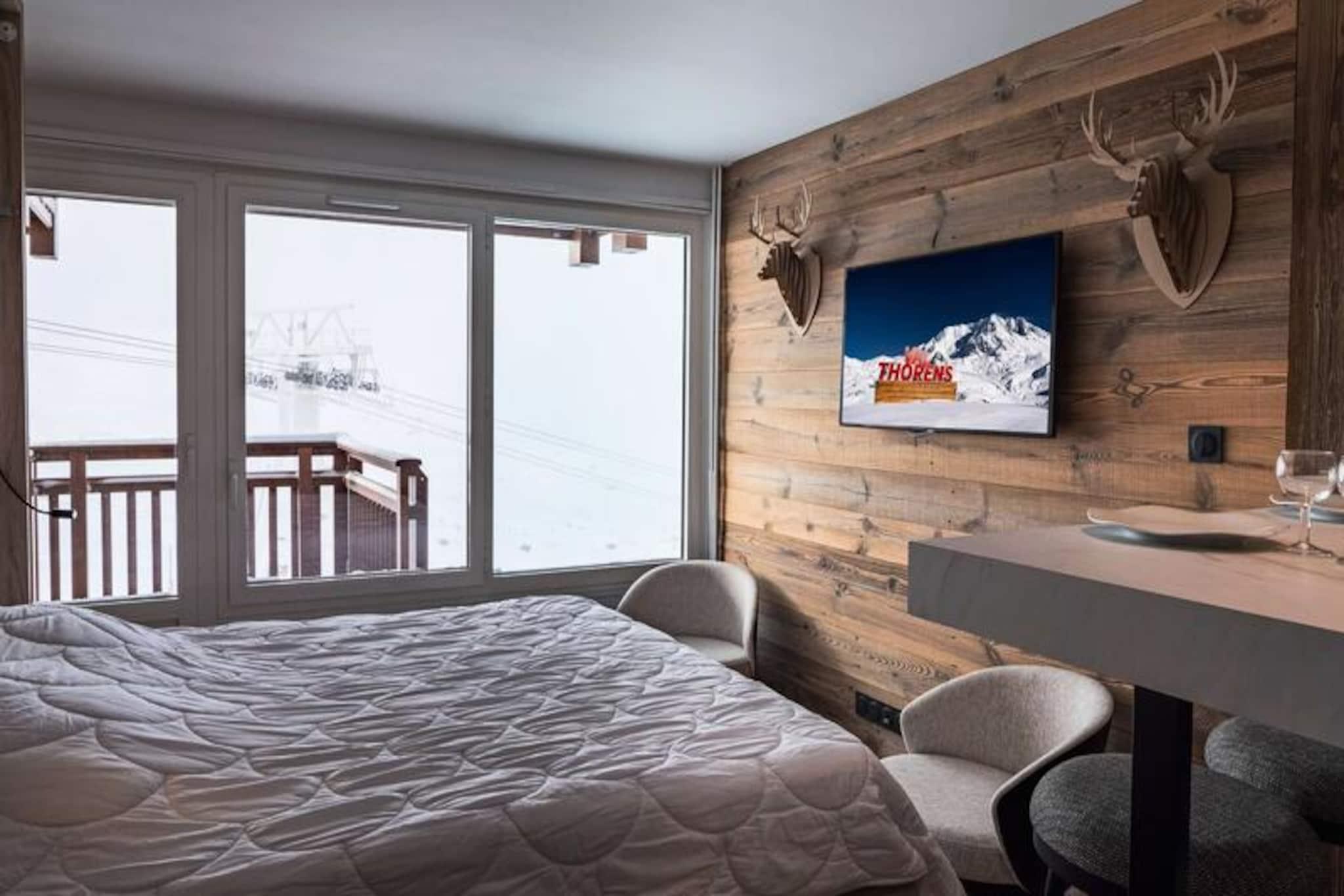 Awaken each morning to the breathtaking panorama of snow-capped peaks and pristine slopes from this beautifully renovated 25m² apartment in the heart of Val Thorens. With its contemporary mountain-style decor and a prime location in the Roc de Péclet I residence, this cozy retreat offers a perfect blend of charm and convenience for up to four guests. Whether you're here to carve through the world-renowned slopes or simply soak in the serene alpine atmosphere, this apartment promises an unforgettable stay. Step inside to discover a thoughtfully designed living space featuring a fold-down bed, two comfortable armchairs, and a TV, all positioned to maximize the stunning south-facing views. The open-plan kitchen is fully equipped with modern appliances, including a ceramic hob, dishwasher, microwave, and Nespresso coffee machine, ensuring you have everything needed to prepare hearty meals after a day on the slopes. A separate sleeping alcove with bunk beds adds a touch of coziness, while the bathroom offers a refreshing shower, towel warmer, and all the essentials for your comfort. Situated in the quiet and charming Slalom area, the Roc de Péclet I residence provides direct ski-in/ski-out access, making it a haven for winter sports enthusiasts. Just steps away, the Péclet shopping center offers a variety of shops, a pharmacy, and a twice-weekly market, ensuring all your needs are met within moments of your doorstep. Whether you're drawn to the exhilarating slopes, the tranquil mountain vistas, or the vibrant local culture, this apartment is your gateway to the ultimate Val Thorens experience. Book your stay and create memories that will last a lifetime.