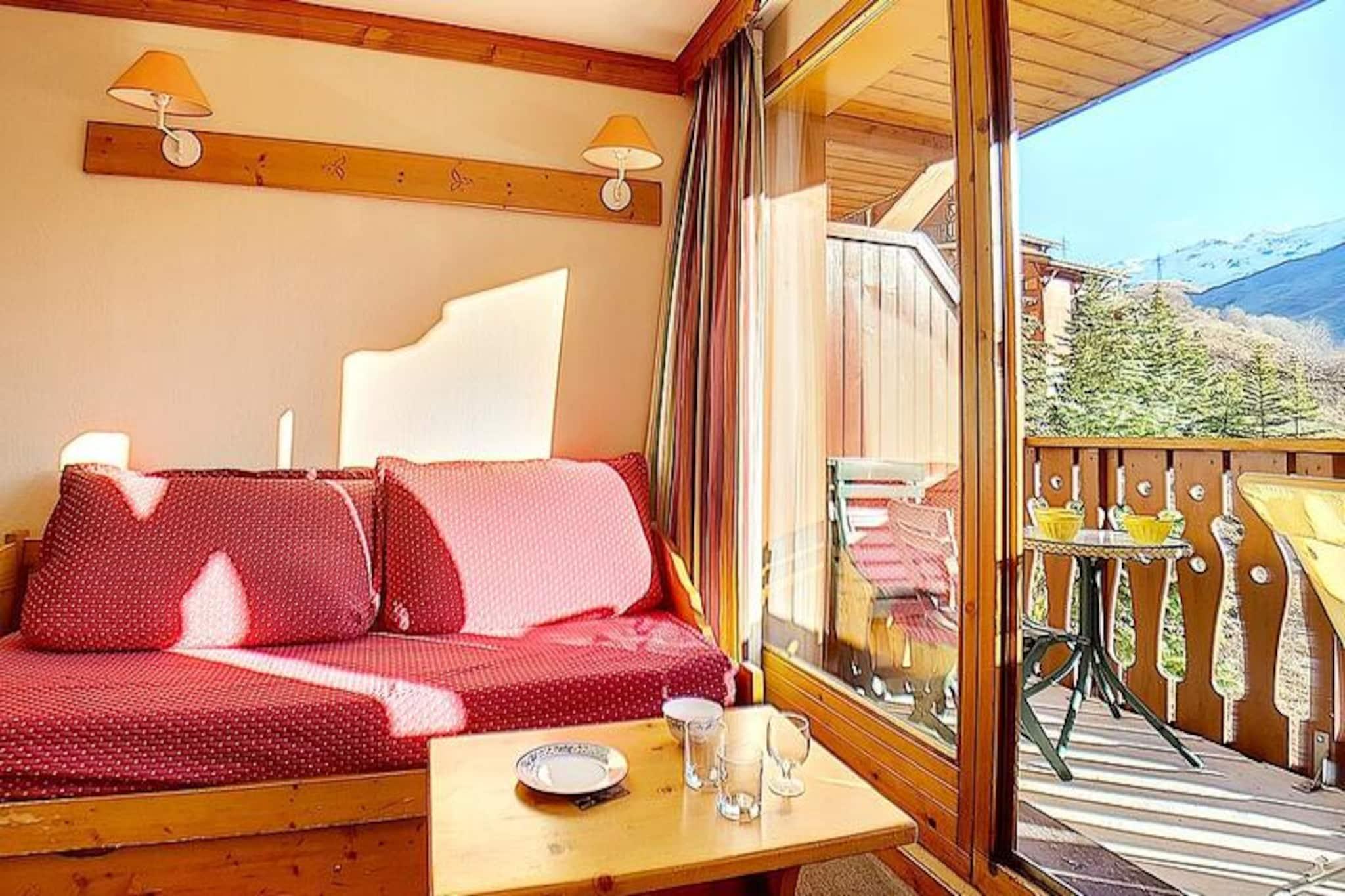 High above the bustling Bruyères district, this charming apartment invites you to experience the magic of the French Alps with a south-facing balcony that captures stunning mountain vistas. Whether you’re here for thrilling ski adventures or tranquil summer escapes, this cozy retreat offers a warm and welcoming base for your holiday. Located on the 7th floor of the Valmonts A residence, you’ll enjoy direct access to the slopes and ski lifts, making it effortless to start your day in the heart of alpine beauty. \n\nDesigned for up to four guests, the apartment features a comfortable living room with a single sofa bed and pull-out bed, perfect for relaxing after a day of exploration. The separate bedroom offers two single beds, ensuring restful nights for all. A fully equipped kitchen awaits your culinary creativity, complete with ceramic hob, dishwasher, refrigerator, microwave, and essential appliances like a kettle and toaster. The bathroom includes a bathtub for a soothing soak, while the separate WC adds convenience. With carpeted floors and thoughtful amenities such as a television, DVD player, and blankets provided, every detail is tailored for comfort. \n\nStep outside and discover the vibrant Bruyères district, where restaurants, shops, a cinema, and a wellness center are just a short stroll away. Families will love the nearby toboggan run, ski school, and children’s playground, while the water park offers fun for all ages. In summer, the alpine trails beckon hikers and cyclists, promising breathtaking views and unforgettable adventures. \n\nWhether you’re seeking adrenaline on the slopes or peaceful moments surrounded by nature, this apartment is your gateway to the best of Les Menuires. Create lasting memories in a setting that combines convenience, charm, and the timeless allure of the mountains.
