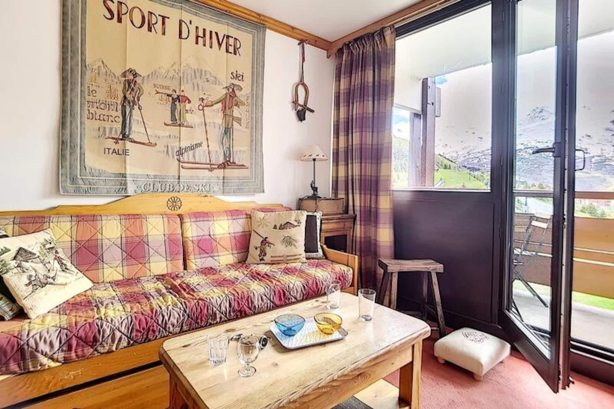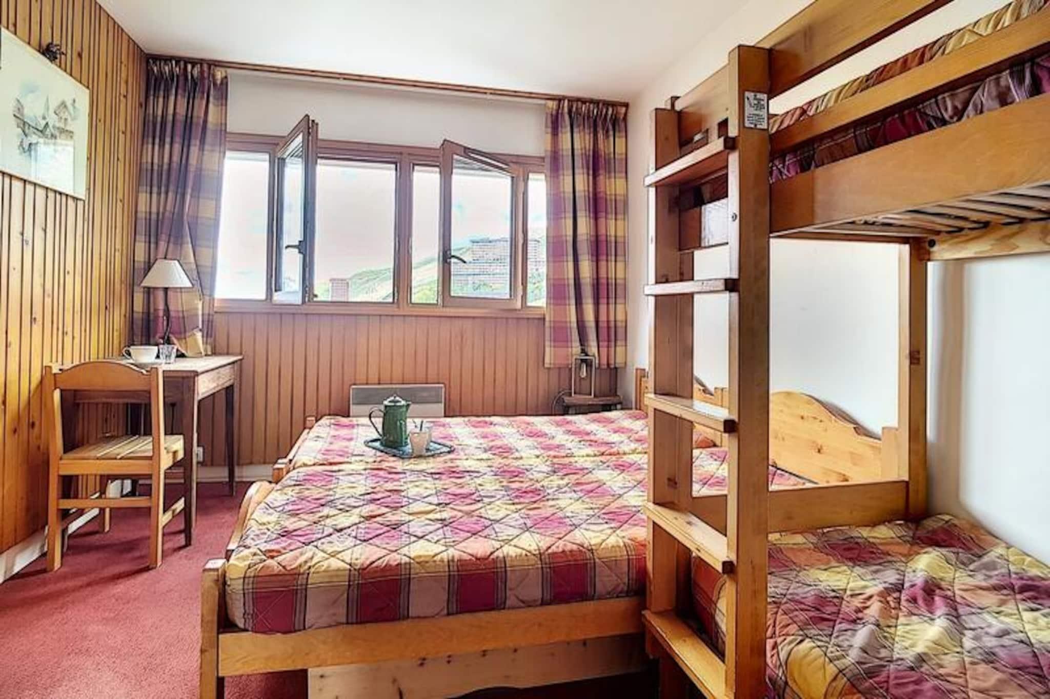 High above the bustling heart of Les Menuires, this charming apartment invites you to experience the magic of the French Alps. With its prime location just steps from the slopes and the La Croisette shopping arcade, every moment of your stay is infused with convenience and alpine charm. From the south-facing balcony on the 8th floor, soak in the panoramic views of snow-dusted peaks and breathe in the crisp mountain air as you plan your day of adventure or relaxation. Whether you're here for thrilling ski runs or tranquil moments, this residence offers the perfect base for your alpine escape. \n\nInside, the apartment's cozy layout accommodates up to six guests, making it ideal for families or small groups. The living room features a single bed and pull-out bed, while the bedroom offers two single beds and a set of bunk beds, ensuring a comfortable night's rest for all. The kitchen is fully equipped with modern amenities, including a refrigerator, microwave, dishwasher, and coffee maker, allowing you to prepare hearty meals after a day on the slopes. The bathroom with a bathtub and separate toilet adds to the convenience, while the carpeted floors and warm furnishings create a welcoming atmosphere. \n\nSituated just 100 meters from the slopes and with ski lockers in the basement, this apartment is a haven for winter sports enthusiasts. The children's daycare and snow garden at the foot of the building make it especially appealing for families. In summer, the surrounding trails and breathtaking landscapes transform the area into a paradise for hikers and nature lovers. With paid Wi-Fi available and electric heating for added comfort, this residence ensures a seamless stay year-round. \n\nChoose this cozy retreat for its unbeatable location, thoughtful amenities, and the chance to create unforgettable memories in the heart of the French Alps. Whether you're chasing powder or soaking up the serene beauty of the mountains, this apartment is your gateway to an extraordinary alpine experience.