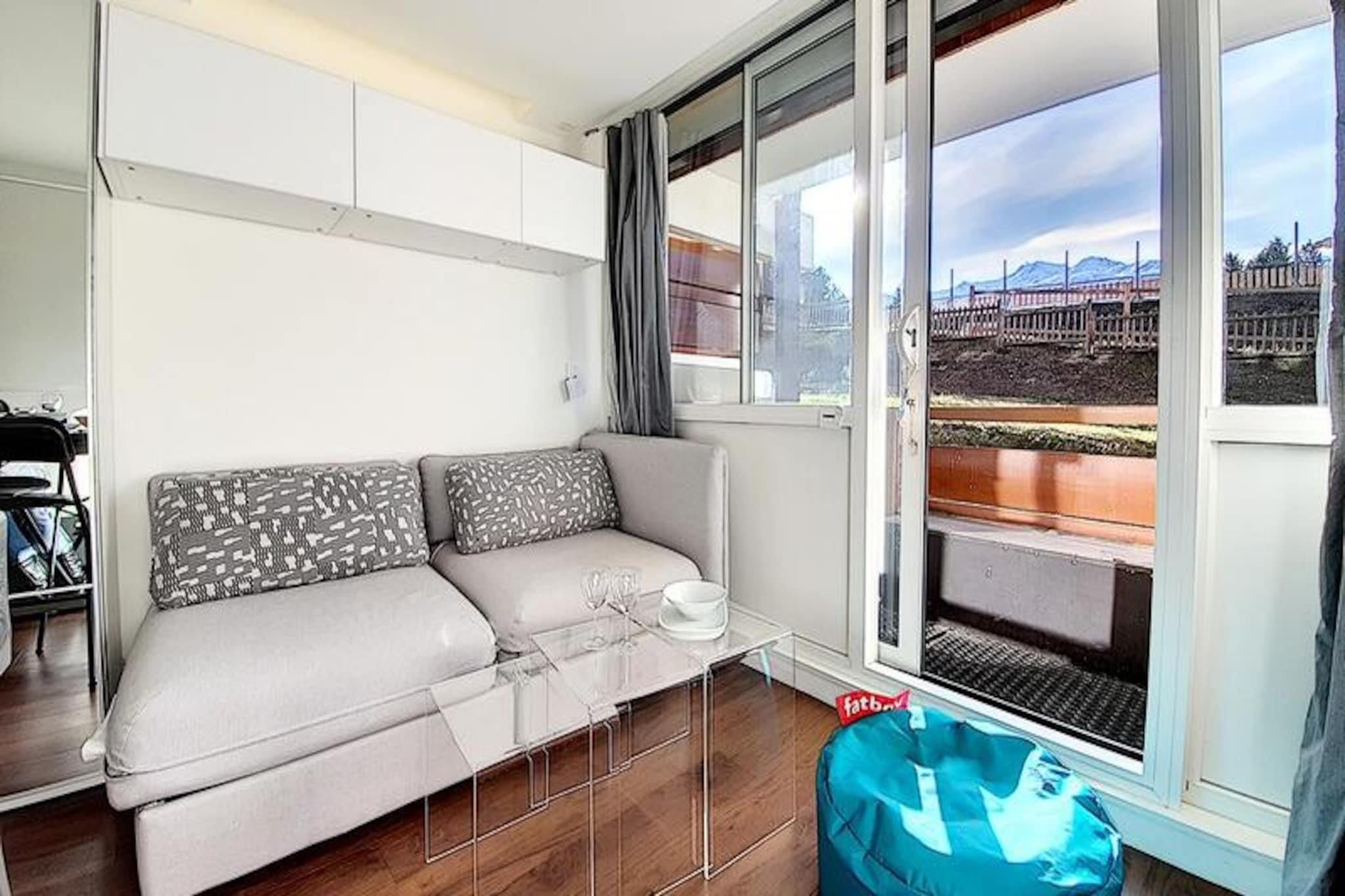 In the heart of the vibrant resort, this charming apartment invites you to experience the magic of the French Alps. Situated on the ground floor of the Burons building, it offers a cozy retreat just steps away from the slopes and the bustling La Croisette shopping arcade. With a south-facing balcony, you can soak in the sunshine and enjoy serene views that perfectly complement the alpine atmosphere. Whether you're here for skiing adventures or a peaceful mountain escape, this property is your gateway to unforgettable moments. \n\nThe fully renovated 36 m² apartment is thoughtfully designed to accommodate up to four guests. The living room features a comfortable sofa bed for two and a flat-screen TV, creating a welcoming space to unwind after a day of exploration. The separate bedroom includes two sets of bunk beds, ideal for families or small groups. The modern kitchen is equipped with an induction hob, refrigerator, oven, microwave, dishwasher, and essential appliances like a kettle, toaster, and coffee maker, making it easy to prepare hearty meals. The bathroom offers a refreshing shower, and the separate WC adds convenience. Wi-Fi is available, ensuring you stay connected during your stay. \n\nLocated just 100 meters from the slopes, this apartment is perfect for ski enthusiasts. The children's daycare and snow garden at the foot of the building make it an excellent choice for families. Nearby, you'll find a bus stop and the bus station, ensuring easy access to the surrounding area. With ski lockers in the basement and electric heating, every detail has been considered for your comfort. \n\nWhether you're drawn by the thrill of the slopes or the charm of the resort, this apartment combines convenience, comfort, and alpine allure. Book your stay and create lasting memories in this idyllic mountain retreat.