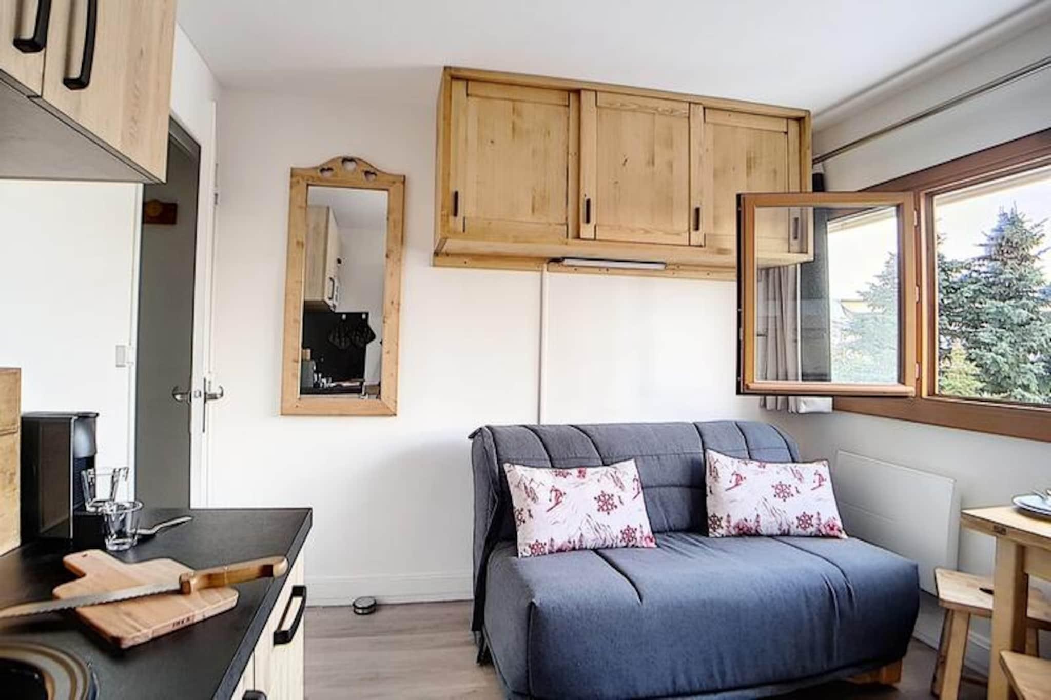 In the heart of the picturesque French Alps, this cozy studio apartment offers an intimate retreat for two, perfect for a romantic getaway or a peaceful mountain escape. Situated in the Burons building, just steps from the lively La Croisette shopping arcade, you’ll find yourself immersed in the charm of this alpine resort, with everything you need right at your fingertips. From the moment you arrive, the breathtaking mountain scenery and crisp alpine air set the tone for an unforgettable stay. Renovated in 2020, this 13 m² studio is thoughtfully designed to maximize comfort and functionality. The living area features a comfortable sofa bed for two and a flat-screen TV, creating a welcoming space to relax after a day of adventure. The compact yet well-equipped kitchen includes two electric hobs, a refrigerator, microwave, toaster, kettle, and coffee maker, making it easy to prepare meals or snacks. The bathroom is modern and fitted with a shower and toilet, while the linoleum flooring adds a touch of practicality and warmth. The apartment is non-smoking, pet-free, and comes with duvets and blankets to ensure a cozy stay. Conveniently located just 100 meters from the slopes, this residence is a dream for ski enthusiasts. The children’s daycare and snow garden are at the foot of the building, making it an excellent choice for families. With a bus stop only 50 meters away and the bus station just a 2-minute ride, exploring the area is effortless. Ski lockers in the basement add to the convenience, while the paid Wi-Fi ensures you stay connected. Whether you’re here to carve through fresh powder, explore the vibrant resort atmosphere, or simply soak in the serene alpine beauty, this charming studio offers the perfect base for your mountain adventures. Book now and create memories that will last a lifetime.