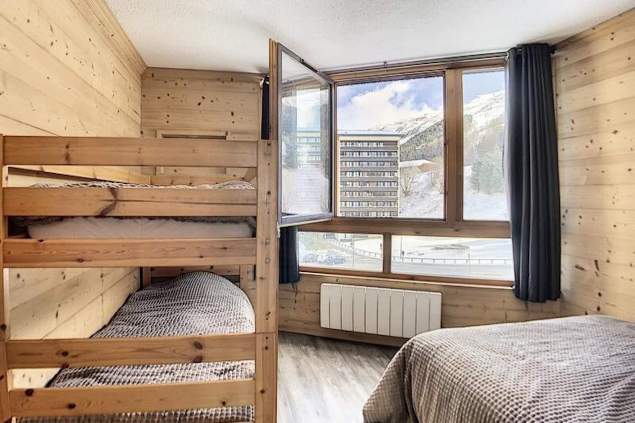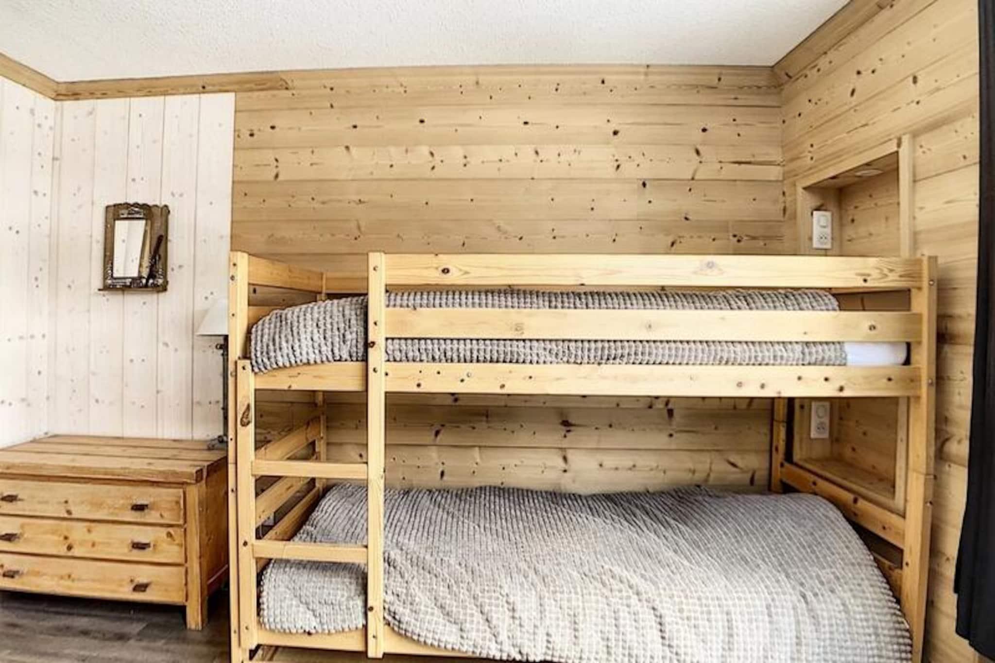 In the charming Preyerand district of Les Menuires, this beautifully renovated two-room apartment offers a cozy retreat at the foot of the slopes. With direct access to the central La Croisette district via the free TéléPreyerand cable car, available daily from 8:00 AM to 11:00 PM, you’ll find convenience and adventure right at your doorstep. Whether you’re here to carve through pristine snow or simply soak in the alpine atmosphere, this residence promises an unforgettable mountain escape. \n\nLocated on the 4th floor with elevator access, this 40 m² apartment comfortably accommodates up to six guests. The south-facing balcony invites you to bask in sunlight while enjoying breathtaking views of the surrounding peaks. Inside, the living room features a sofa bed for two, a television, and a DVD player, creating the perfect space to unwind after a day on the slopes. The bedroom is thoughtfully designed with a double bed and two bunk beds, ideal for families or groups. The modern bathroom includes a bathtub, towel warmer, and washing machine, while the separate toilet adds extra convenience.\n\nThe fully equipped kitchen is a culinary delight, featuring induction hobs, a refrigerator, dishwasher, raclette grill, fondue set, hot stone grill, combination oven/microwave, and a Nespresso machine. With tile and linoleum flooring, the apartment is both stylish and practical. Internet is included, ensuring you stay connected throughout your stay. Please note, the apartment is non-smoking, pet-free, and equipped with duvets for a comfortable night’s sleep.\n\nBeyond the apartment, Les Menuires offers a wealth of activities and amenities. From the vibrant La Croisette district with its shops, restaurants, and après-ski options to the stunning ski slopes of the 3 Valleys, there’s something for everyone. Whether you’re here to ski, hike, or simply relax, this apartment is your gateway to the best of the French Alps.