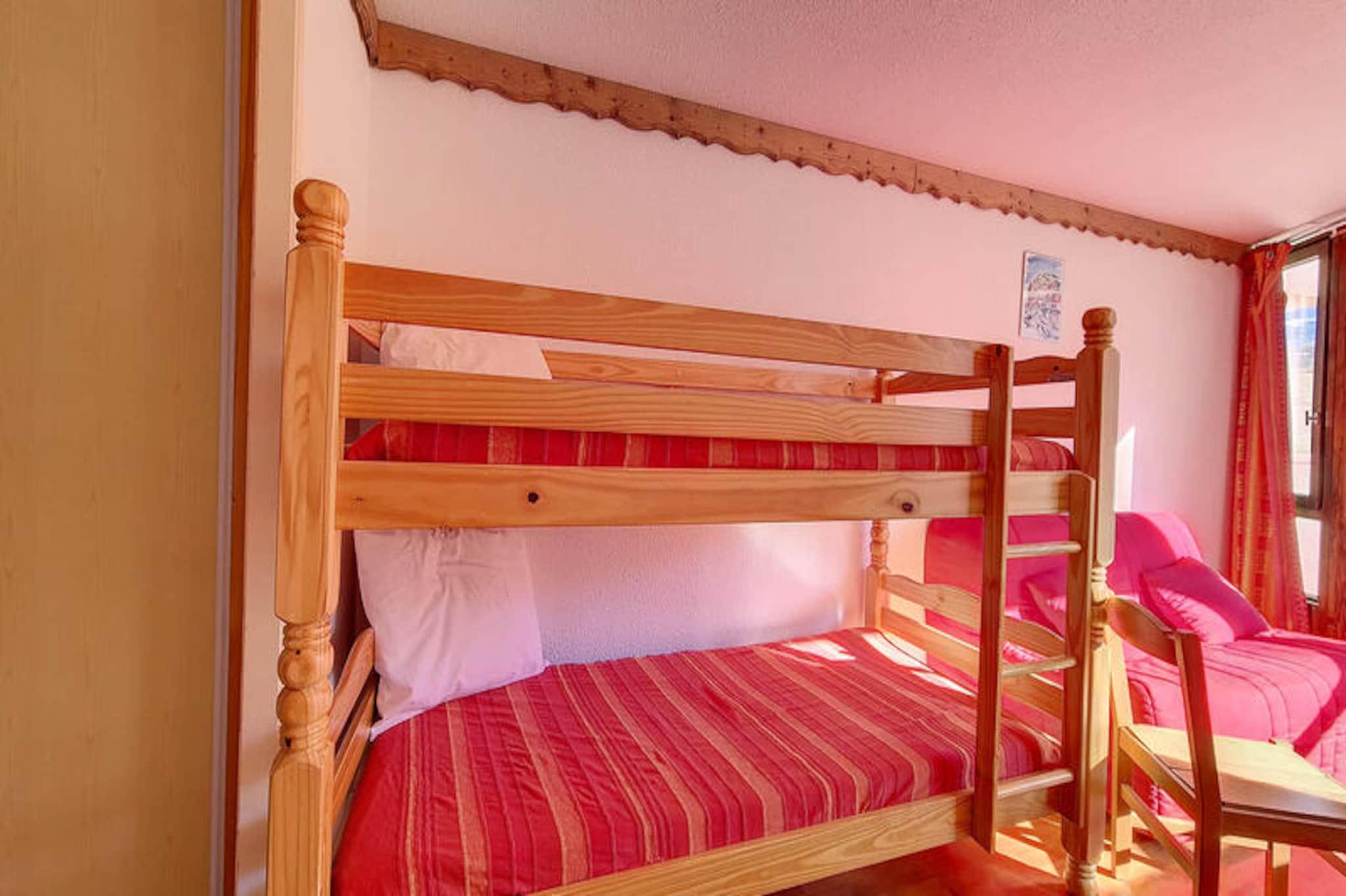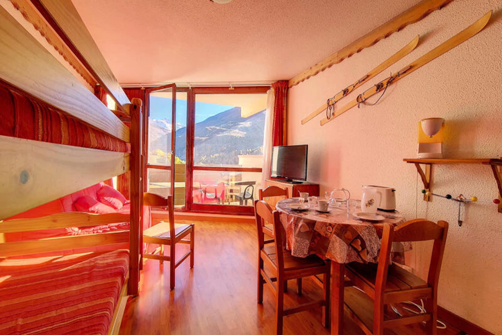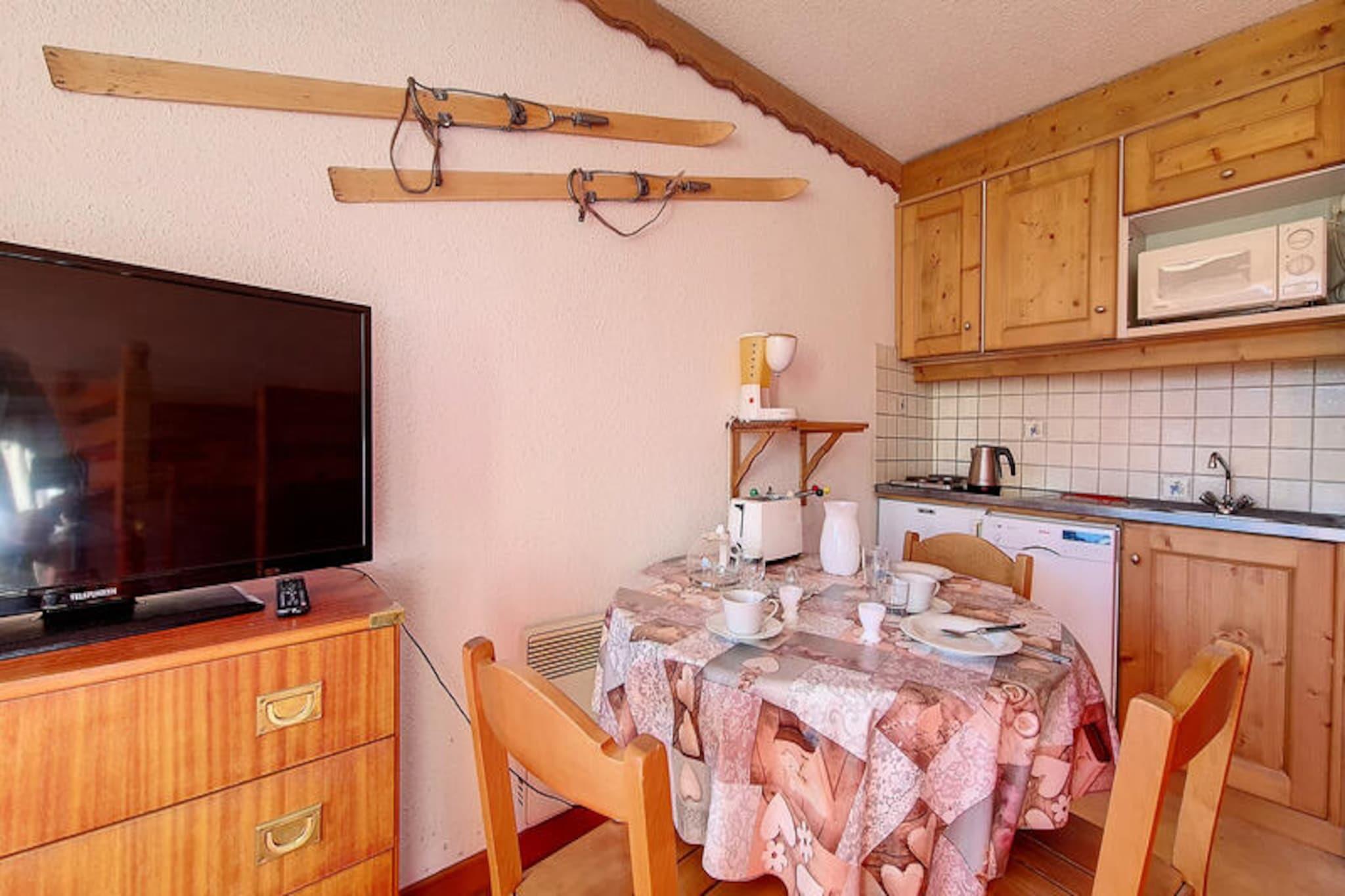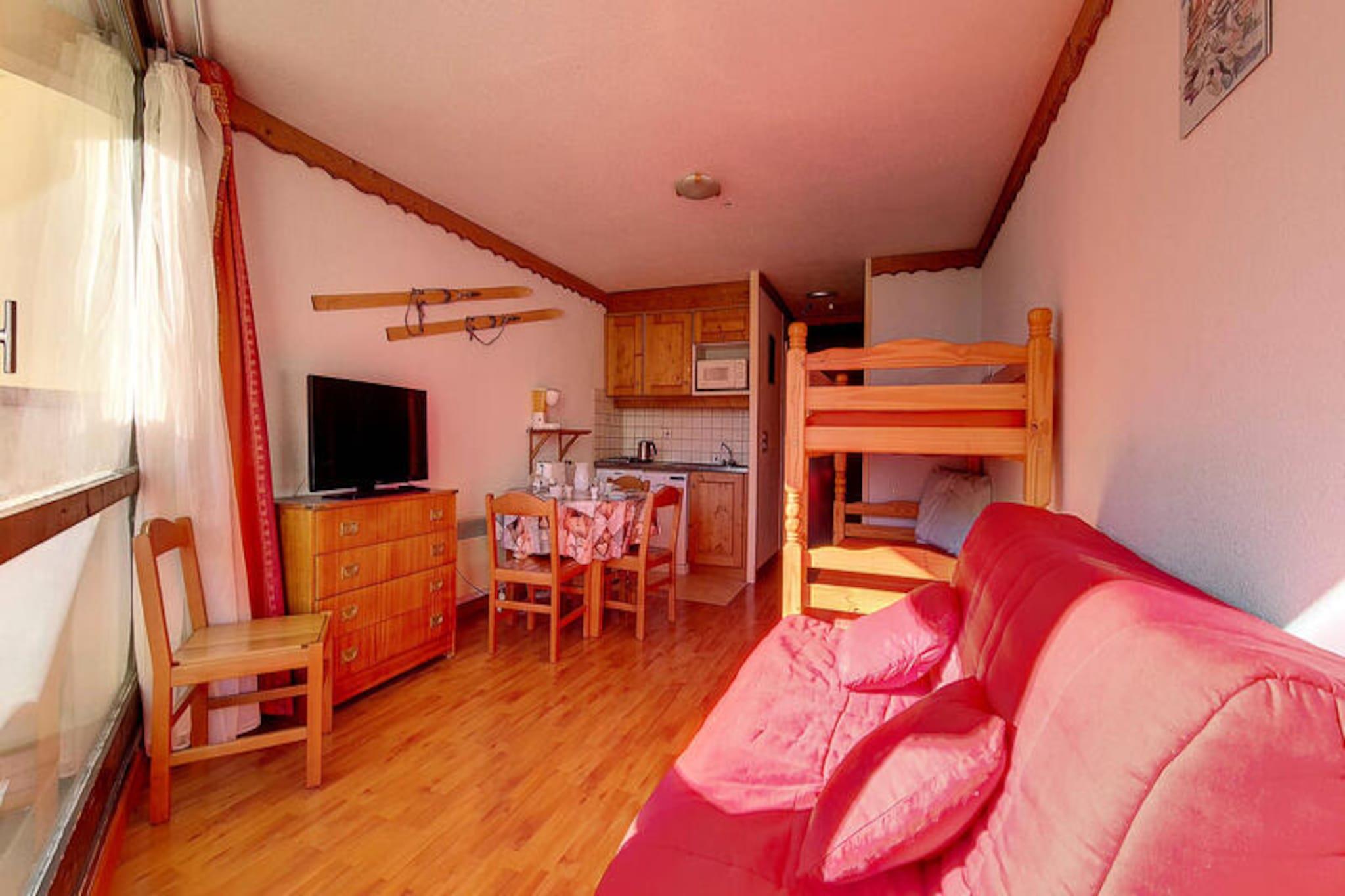 High above the bustling Preyerand district, this charming studio apartment invites you to experience the magic of Les Menuires with slopes right at your doorstep. Imagine waking up to the crisp alpine air and stepping onto your south-facing balcony to soak in the serene mountain views. With the free TéléPreyerand cable car just moments away, connecting you effortlessly to the central La Croisette area, your adventures in the heart of the Three Valleys begin as soon as you step outside. Whether you're here for skiing, snowboarding, or simply to revel in the beauty of the French Alps, this cozy retreat offers the perfect base. \n\nDesigned for up to three guests, the studio features a comfortable living area with a double sofa bed and two single bunk beds, making it ideal for couples or small families. The fully equipped kitchen includes modern appliances such as a refrigerator, microwave, dishwasher, and coffee maker, ensuring you have everything needed to prepare hearty meals after a day on the slopes. The bathroom, complete with a bathtub, provides a relaxing space to unwind, while the television and paid Wi-Fi access keep you connected and entertained. Pets are welcome for a small fee, adding to the homely atmosphere of this non-smoking apartment. \n\nLocated in a prime position, you'll find yourself surrounded by the vibrant energy of Les Menuires. The nearby La Croisette area offers a variety of shops, restaurants, and après-ski activities to enhance your stay. Whether you're exploring the vast Three Valleys ski domain or enjoying the tranquility of the mountain trails, this residence places you at the heart of it all. \n\nChoose this delightful studio for its unbeatable location, cozy ambiance, and easy access to everything Les Menuires has to offer. Perfect for creating unforgettable alpine memories, it’s a place where comfort meets adventure.
