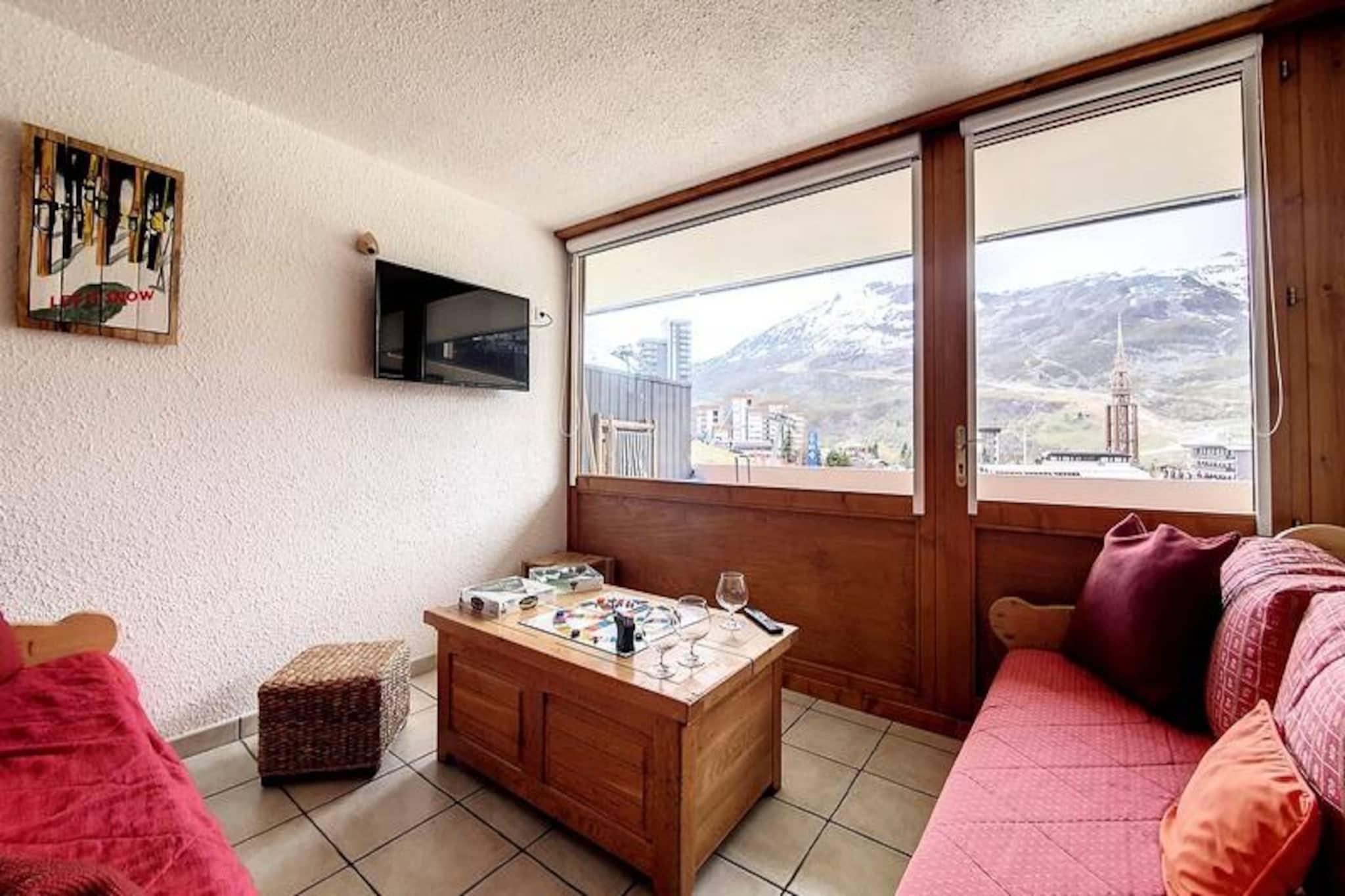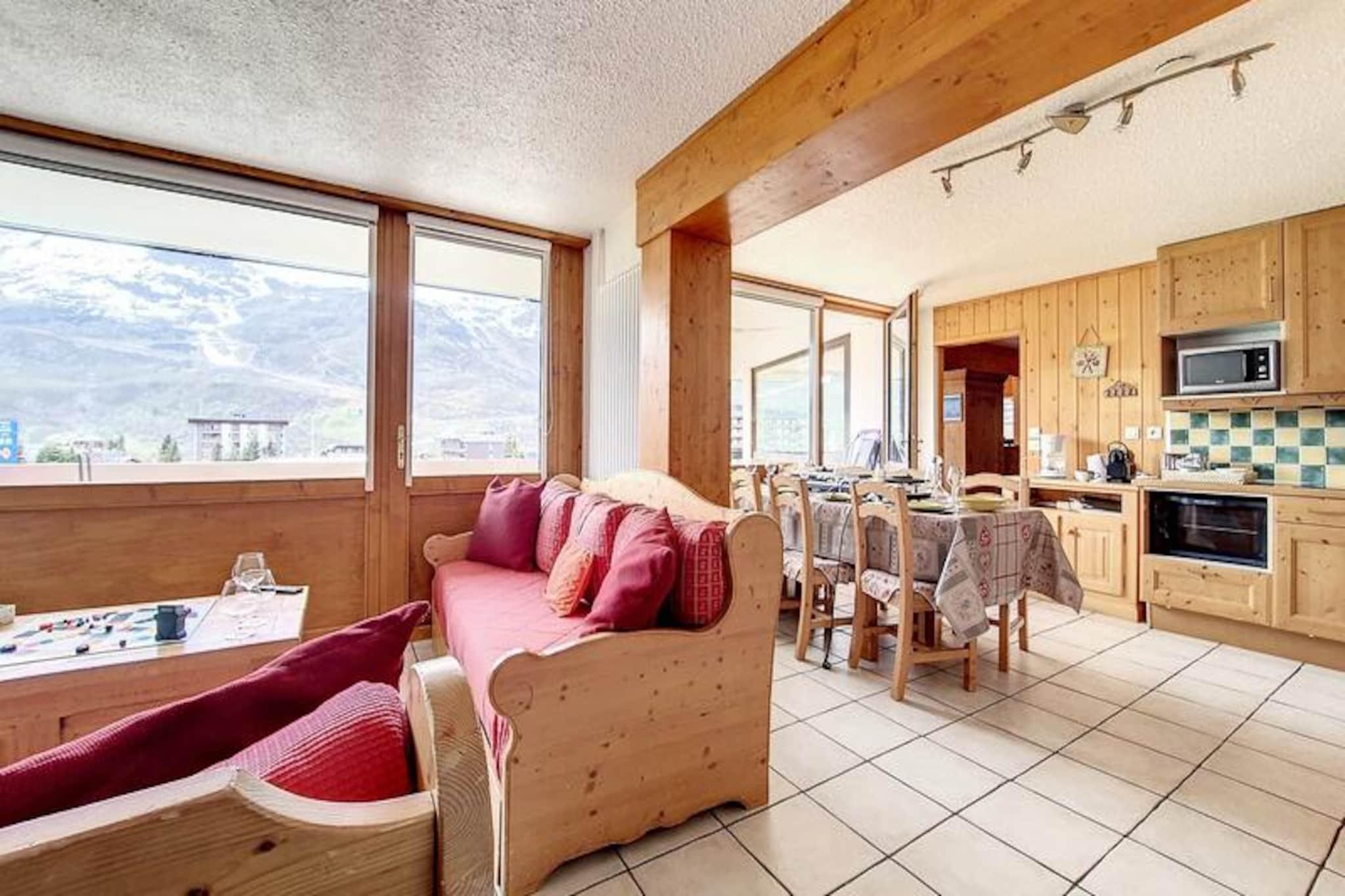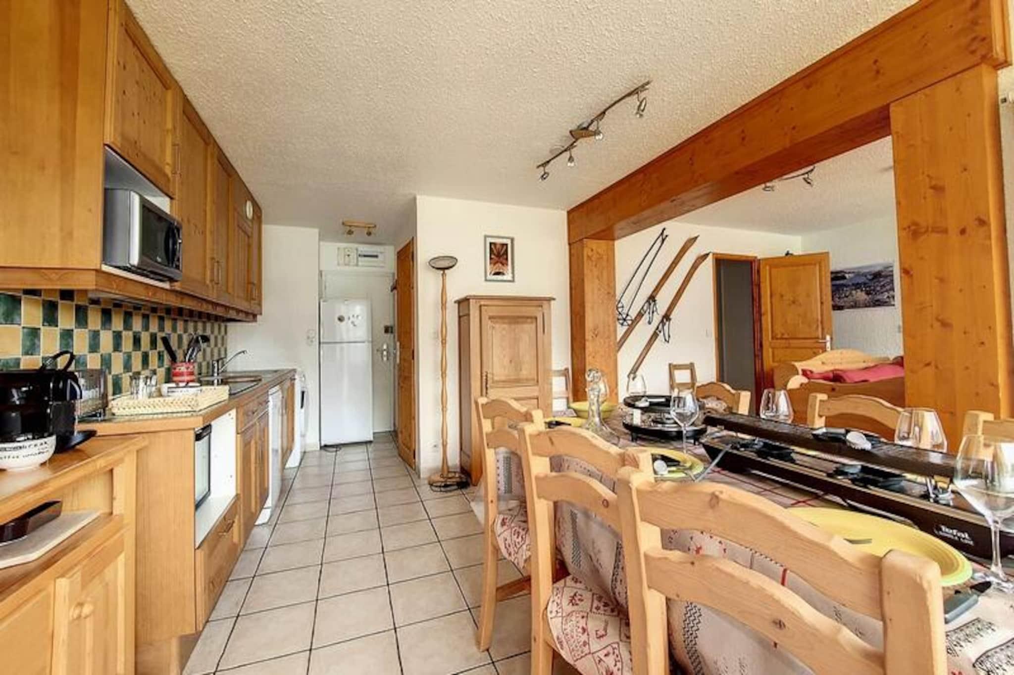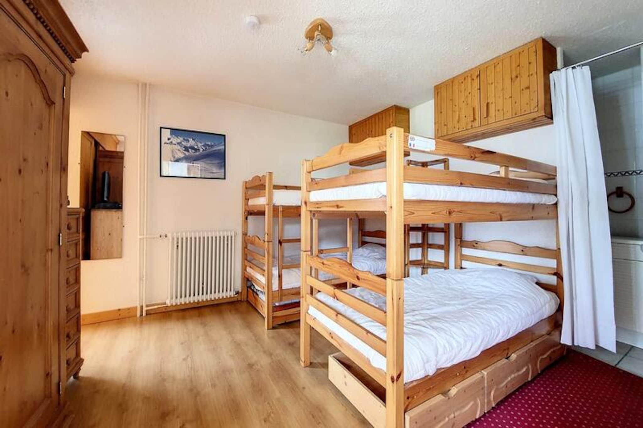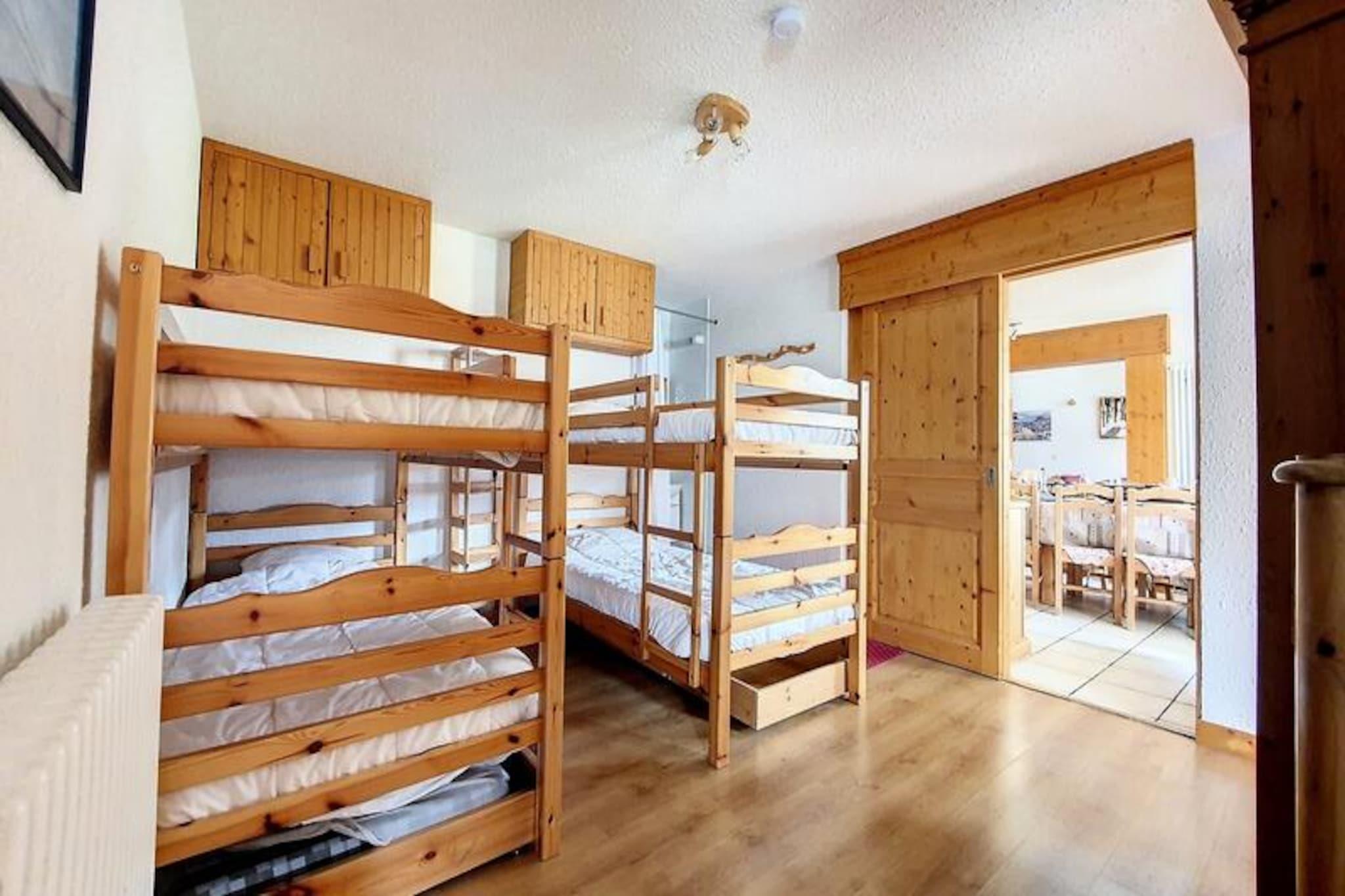 In the heart of the vibrant La Croisette district, this charming apartment invites you to experience the ultimate alpine getaway. With ski lifts located directly at the foot of the building, you can step outside and glide into the snowy wonderland without delay. The bustling shopping arcade is just a two-minute walk away, while the bus station ensures convenient access to the surrounding area. Families will appreciate the proximity to the Pioupiou children's club, a mere ten-minute stroll across La Croisette, offering daycare and a delightful snow garden for the little ones. The southwest-facing balcony provides a sunny retreat to soak in the serene mountain views after an exhilarating day on the slopes. Spanning 70m², this thoughtfully designed 4-room apartment comfortably accommodates up to eight guests. The layout includes two cozy bedrooms with double beds, a third bedroom featuring four single bunk beds and a private shower area, and a spacious living room equipped with a television and DVD player for relaxed evenings. The fully equipped kitchen boasts modern appliances, including a refrigerator, oven, microwave, dishwasher, and coffee maker, ensuring you have everything needed to prepare hearty meals. Additional amenities include two bathrooms, one with a washing machine and dryer, and a separate toilet for added convenience. Beyond the apartment, La Croisette offers a lively atmosphere with shops, restaurants, and après-ski activities to enhance your stay. Whether you're a beginner or an experienced skier, the slopes cater to all levels, and the direct ski-in/ski-out access makes this property a winter sports enthusiast's dream. In summer, the region transforms into a haven for hikers and nature lovers, with trails weaving through stunning alpine landscapes. Perfectly blending comfort, convenience, and a prime location, this apartment is an ideal choice for families or groups seeking unforgettable moments in the French Alps.