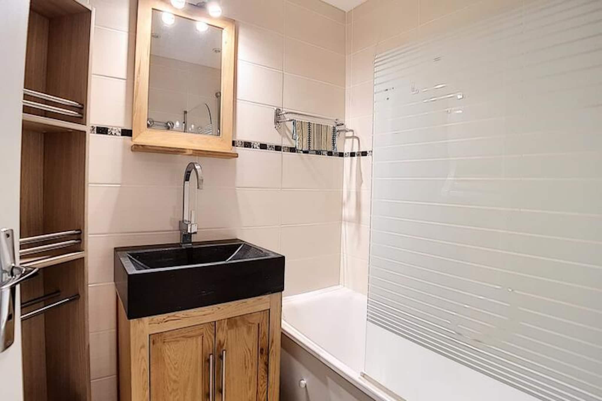 In the heart of the charming Place des Bouquetins, this cozy alpine retreat offers the perfect ski-in/ski-out experience for those seeking a seamless connection to the slopes. Imagine stepping out of your door and gliding directly onto the pristine runs of Les Menuires, surrounded by the breathtaking beauty of the French Alps. With its warm ambiance and thoughtful design, this apartment is a haven for couples or small families looking to immerse themselves in the magic of the mountains. \n\nThis recently renovated 2-room apartment spans 30 m² and is designed to comfortably accommodate up to four guests. Located on the 4th floor, it boasts a west-facing view, allowing you to enjoy the golden hues of the setting sun. The living room features a double sofa bed, a television, DVD player, and a radio/CD player, creating a cozy space to unwind after a day of adventure. The small bedroom, separated by a door, offers a double bed for restful nights. The kitchen is fully equipped with modern appliances, including a ceramic hob, dishwasher, electric oven, microwave, and specialty items like a crepe maker, raclette grill, and fondue set—perfect for indulging in local culinary traditions. A bathroom with a bathtub and wall-mounted hairdryer, as well as a separate toilet, add to the apartment’s convenience. \n\nThe residence itself provides free Wi-Fi (subject to network coverage) and features an elevator for easy access. Just steps away, a pedestrian bridge connects you to the lively Bruyères district, where you’ll find a variety of restaurants, shops, a water park, wellness center, cinema, ski school, and even a toboggan run. For those seeking more exploration, the Croisette district is just a 15-minute walk away via a scenic pedestrian path. \n\nWhether you’re here for the thrill of skiing or the tranquility of alpine living, this apartment offers an ideal base for creating unforgettable memories in the heart of the Three Valleys.