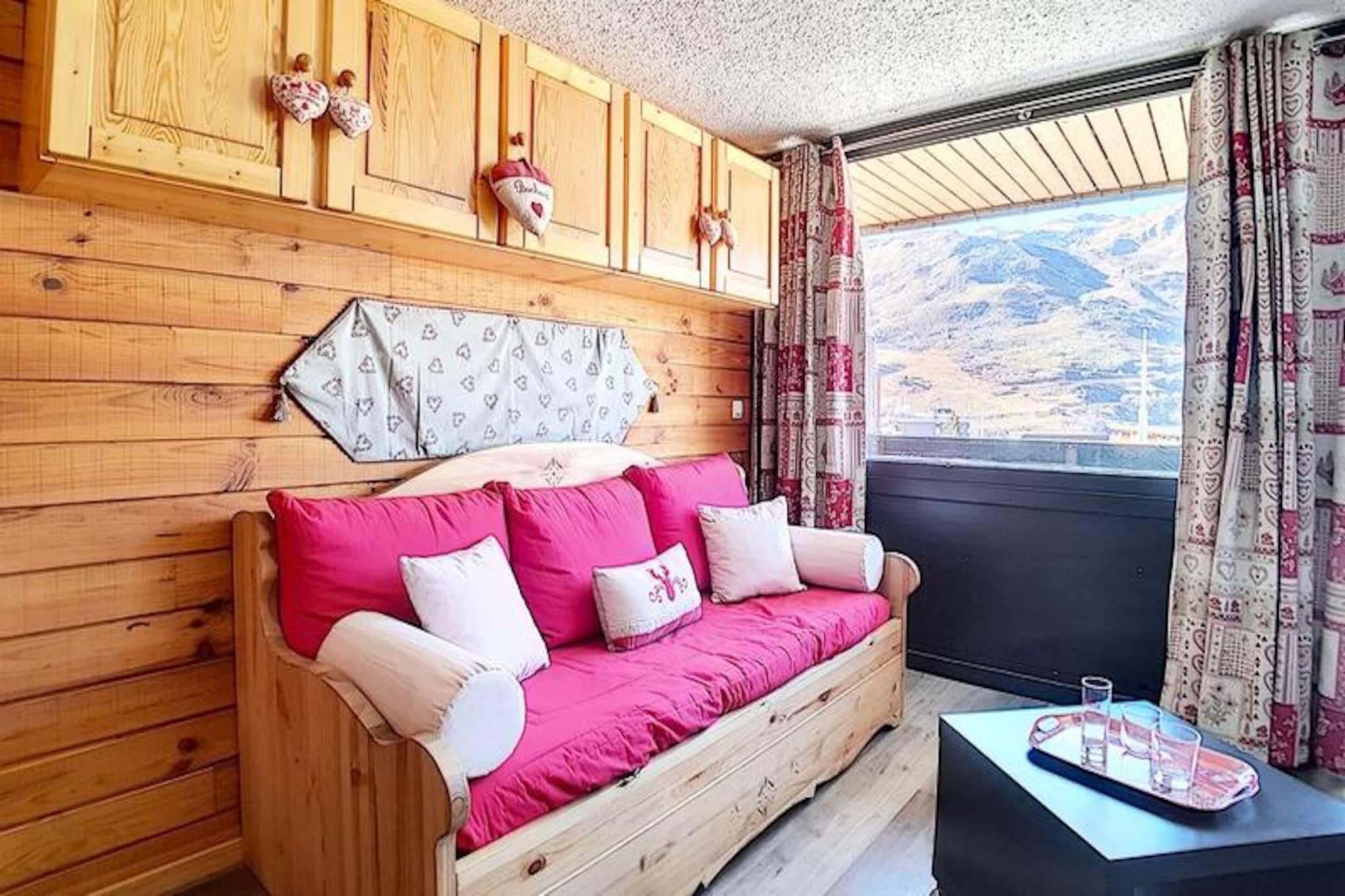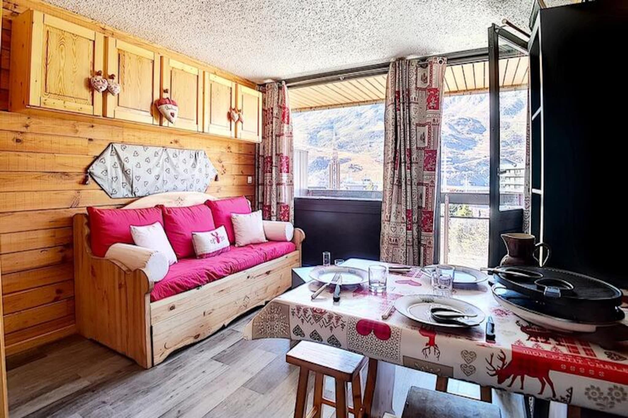 High above the sparkling slopes of the French Alps, this charming studio apartment in the Aravis building offers a cozy retreat for adventurers and relaxation seekers alike. Located in the heart of the La Croisette district, the residence places you just steps away from the ski lifts, ensuring effortless ski-in/ski-out access to the pristine trails. Whether you're a seasoned skier or a beginner, the gentle slopes right outside the building provide the perfect start to your alpine journey. The south-facing balcony invites you to soak in the sunlight and gaze over the snowy landscapes, creating moments of pure tranquility. \n\nThoughtfully renovated, the 22m² studio is designed to comfortably accommodate up to four guests. The living room features a sofa bed and pull-out bed, while the entrance area includes two single bunk beds, ideal for families or small groups. A fully equipped kitchen with modern appliances such as a refrigerator, microwave, mini oven, and dishwasher makes it easy to prepare hearty meals after a day on the slopes. The bathroom includes a shower and toilet, ensuring convenience throughout your stay. Additional amenities like a television and paid Wi-Fi access provide entertainment and connectivity, while the duvets and heating ensure warmth and comfort during chilly evenings. \n\nBeyond the apartment, the vibrant La Croisette district offers a wealth of attractions. The Pioupiou Club, a daycare and snow garden, is just a 10-minute walk away, making this location ideal for families with young children. The nearby shopping arcade and bus station provide easy access to local amenities and transportation, while the ESF ski school meeting point ensures that beginners can quickly get started. \n\nWhether you're here to carve through powdery slopes, explore the alpine charm, or simply unwind in the serene mountain atmosphere, this delightful studio promises an unforgettable escape in the heart of the French Alps.