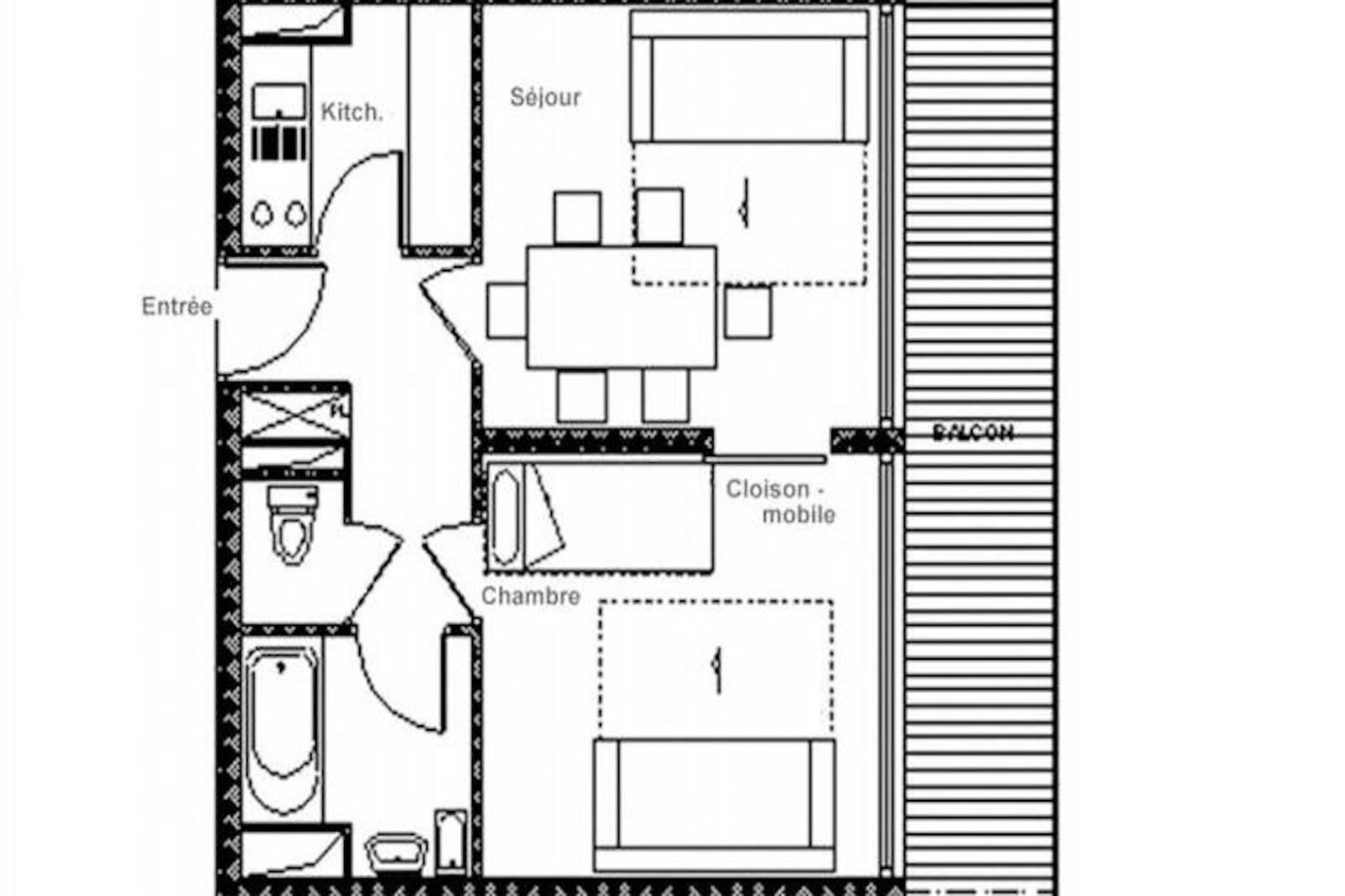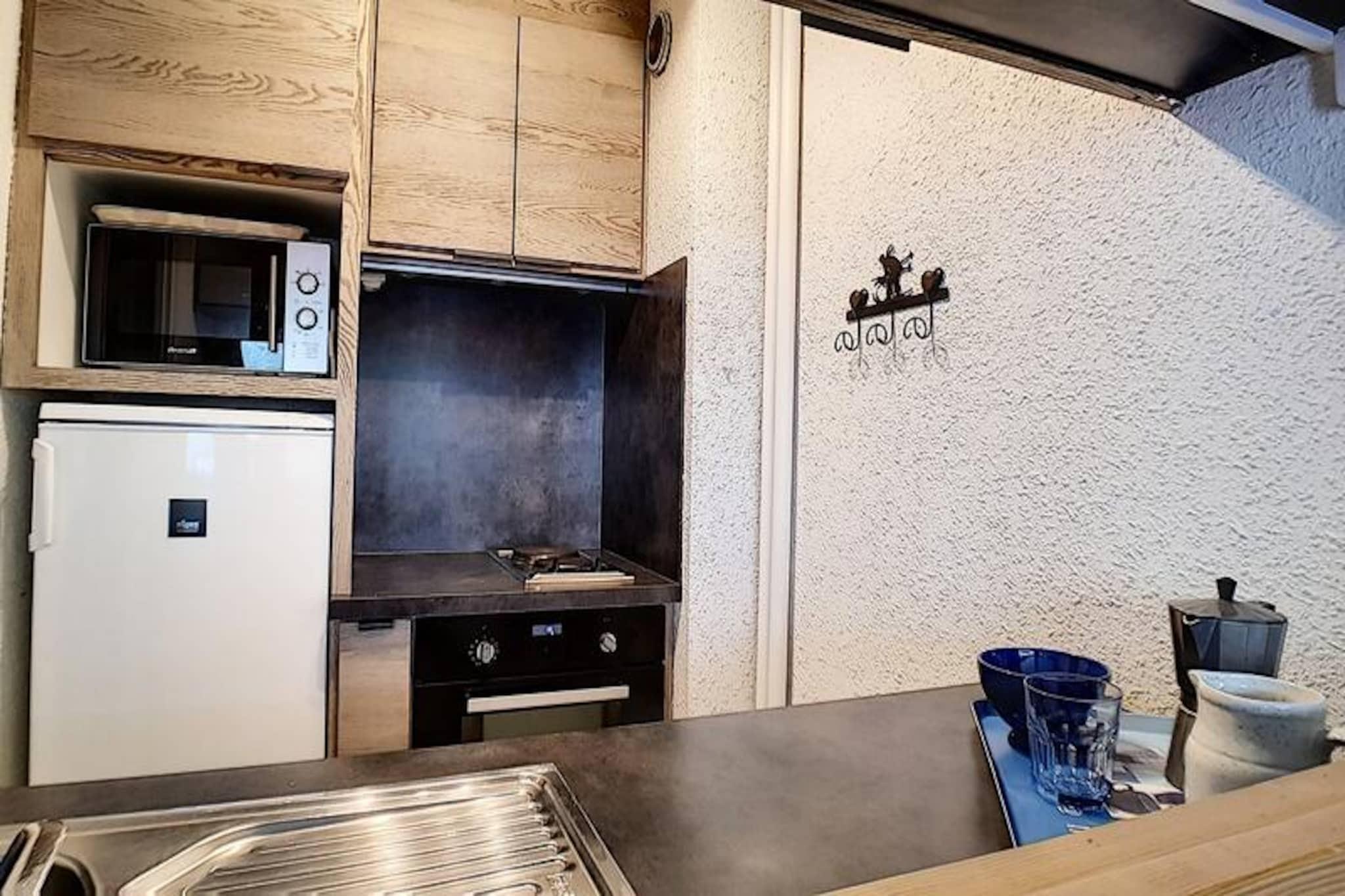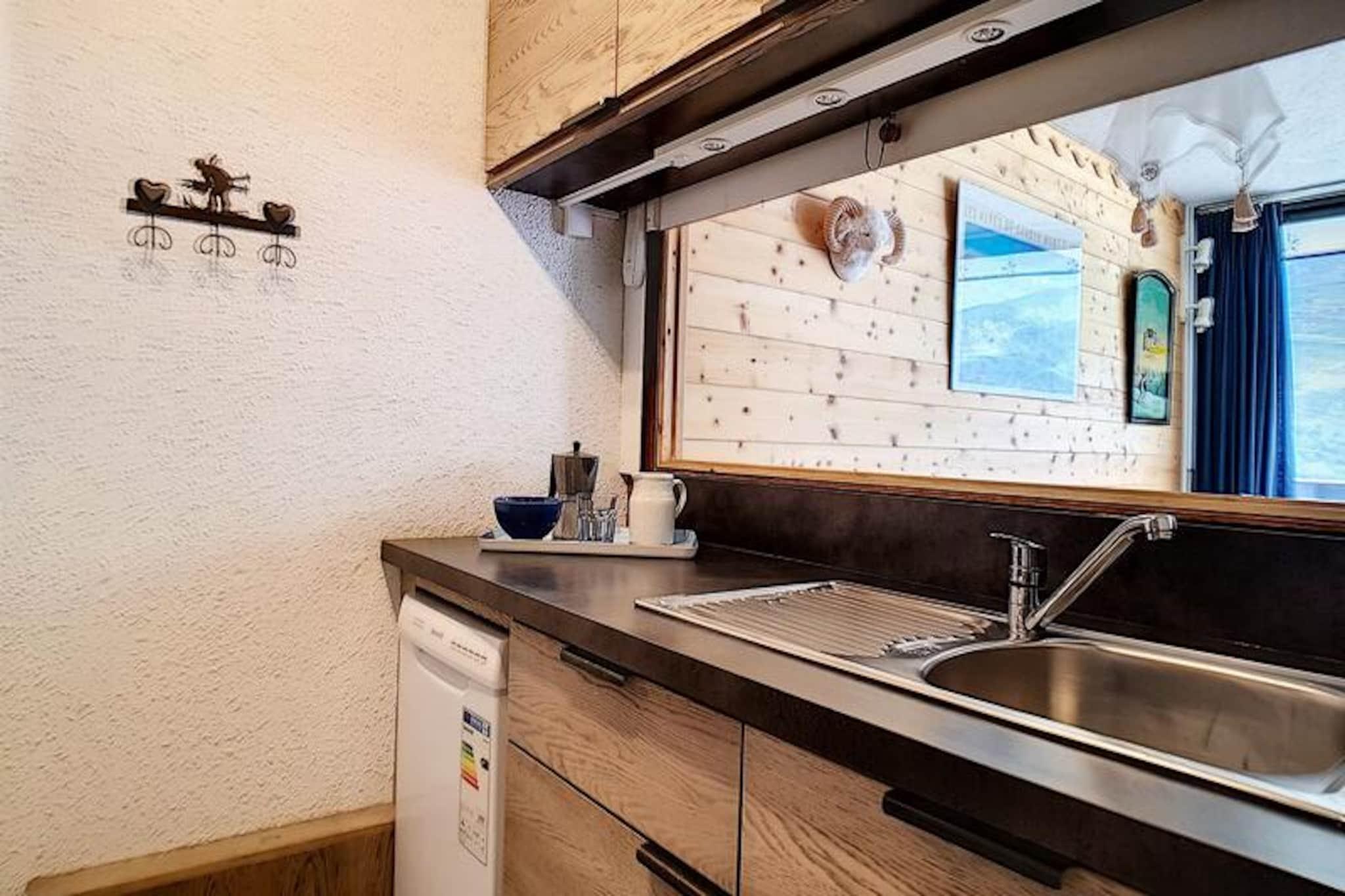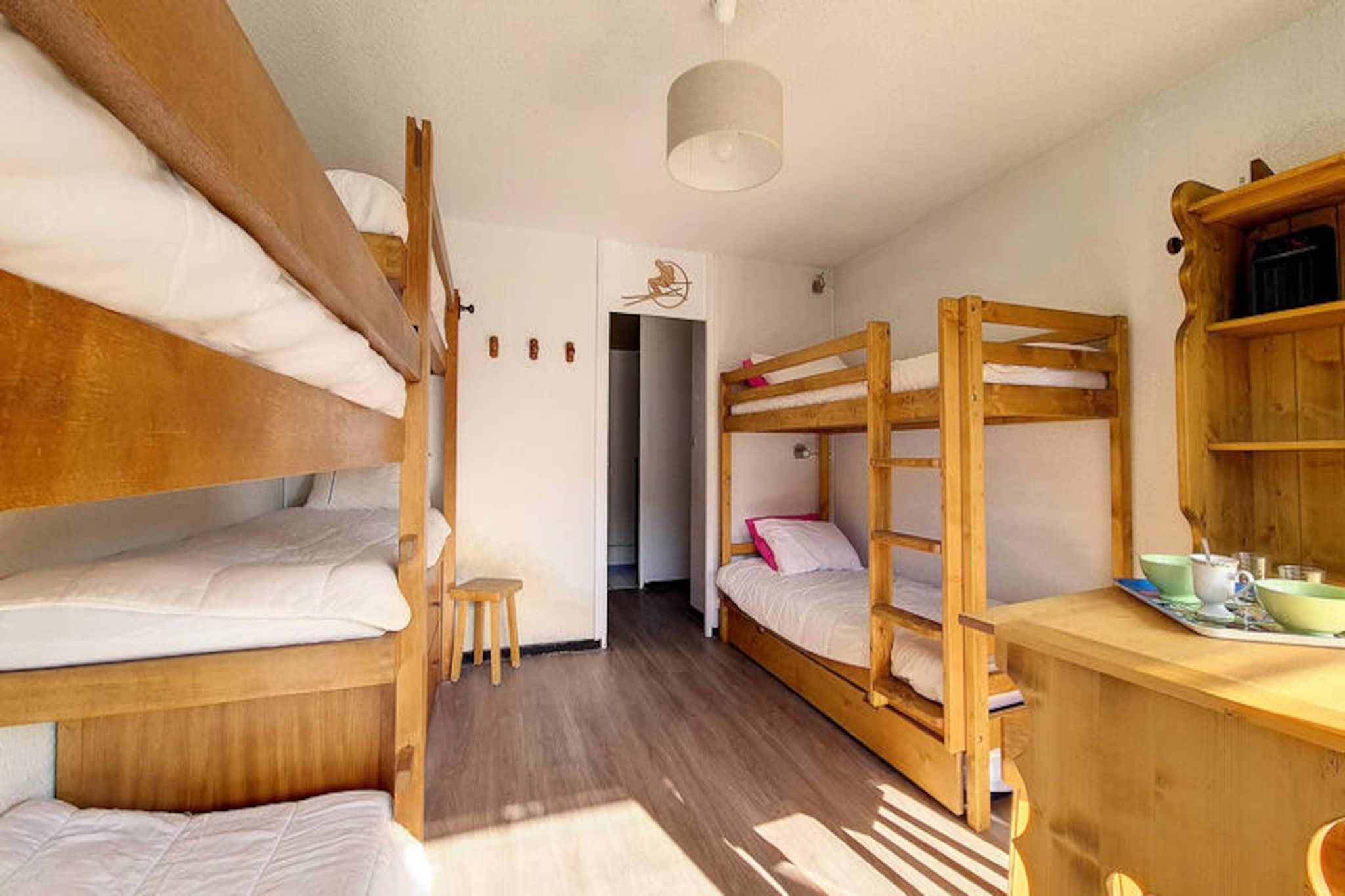 In the heart of the vibrant La Croisette district, this charming alpine apartment offers a cozy retreat with unbeatable ski-in/ski-out convenience. Imagine stepping out of your building and directly onto the slopes, with beginner-friendly pistes right at your doorstep. The Aravis building is perfectly situated for both relaxation and adventure, with the lively shopping arcade just a 2-minute walk away and the bus station only 5 minutes on foot. Whether you're here for the thrill of skiing or the serene mountain views, this location has it all. This 42m² apartment, located on the 3rd floor, comfortably accommodates up to six guests. The living room features a sofa bed for two, a television, and a DVD player, creating a cozy space to unwind after a day on the slopes. The bedroom is thoughtfully designed with two sets of bunk beds, making it ideal for families or groups of friends. A south-facing balcony invites you to soak up the sun and admire the stunning alpine scenery. The fully equipped kitchen includes everything you need to prepare hearty meals, from a refrigerator and oven to a raclette grill for an authentic mountain dining experience. Modern amenities like a washing machine, dishwasher, and paid Wi-Fi ensure a hassle-free stay. Families will appreciate the proximity to the Pioupiou Club, a daycare and snow garden located just a 10-minute walk away, making it a perfect choice for those traveling with young children. For added convenience, a garage in the nearby Pelvoux residence is available for rent. With its prime location and thoughtful amenities, this apartment is your gateway to an unforgettable alpine getaway. Whether you're hitting the slopes, exploring the charming village, or simply relaxing on the balcony, every moment here is a memory in the making.