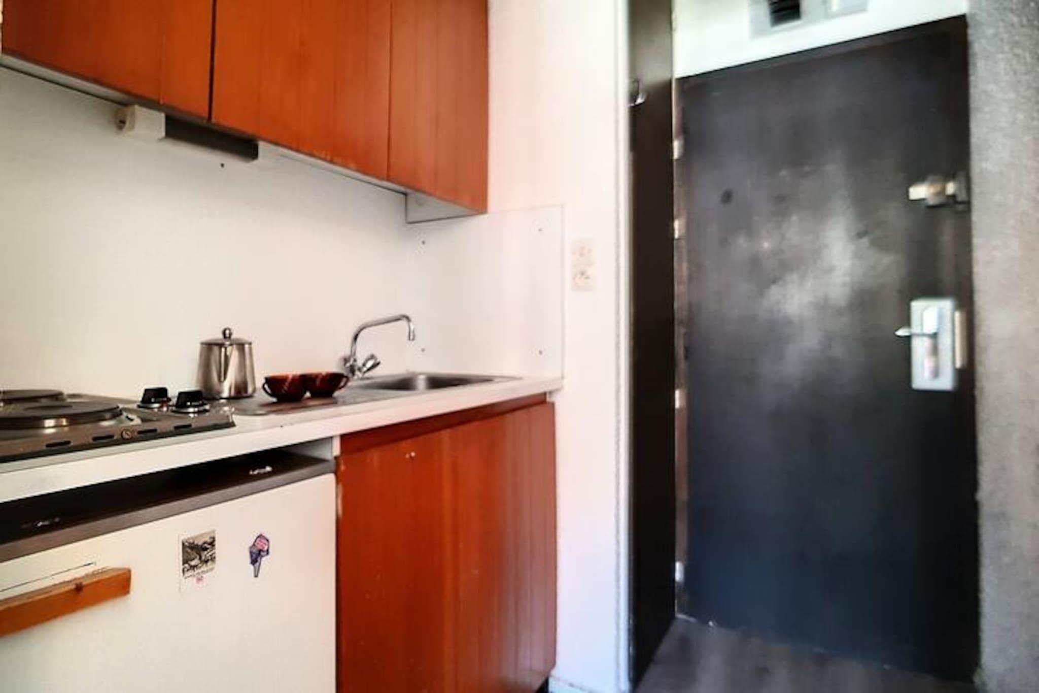 High above the bustling La Croisette district, this charming studio apartment invites you to experience the magic of the French Alps in comfort and style. With ski lifts conveniently located at the foot of the building, you can step straight onto the slopes and embrace the thrill of ski-in/ski-out access. The south-west facing balcony offers a serene retreat where you can soak up the alpine sun and enjoy picturesque views of the surrounding peaks, creating the perfect setting for relaxation after a day of adventure. Whether you're here for the snow or the summer trails, this cozy hideaway is your gateway to the mountains. \n\nDesigned to accommodate up to three guests, the 22 m² studio is thoughtfully furnished with a double sofa bed and a single bed, ensuring a restful night's sleep. The living area is equipped with a television for your entertainment, while the compact kitchen features all the essentials, including a cooktop, refrigerator, combination oven/microwave, toaster, kettle, and coffee maker. The bathroom, complete with a bathtub and toilet, adds a touch of convenience to your stay. Blankets are provided, and paid Wi-Fi access is available, subject to network coverage. \n\nJust a short walk away, you'll find the vibrant shopping arcade and the bus station, making it easy to explore the resort and beyond. Families will appreciate the proximity to the Pioupiou Club, a daycare and snow garden located within a 10-minute walk, perfect for little ones to enjoy their own alpine adventures. For added convenience, a ski locker is located in the basement, ensuring your gear is always ready for action. \n\nWhether you're seeking thrilling slopes, peaceful mountain views, or a cozy base to unwind, this studio apartment in the heart of La Croisette offers an unforgettable alpine escape tailored to your needs.