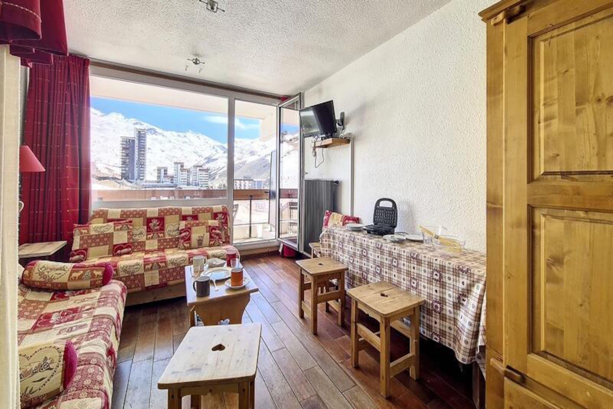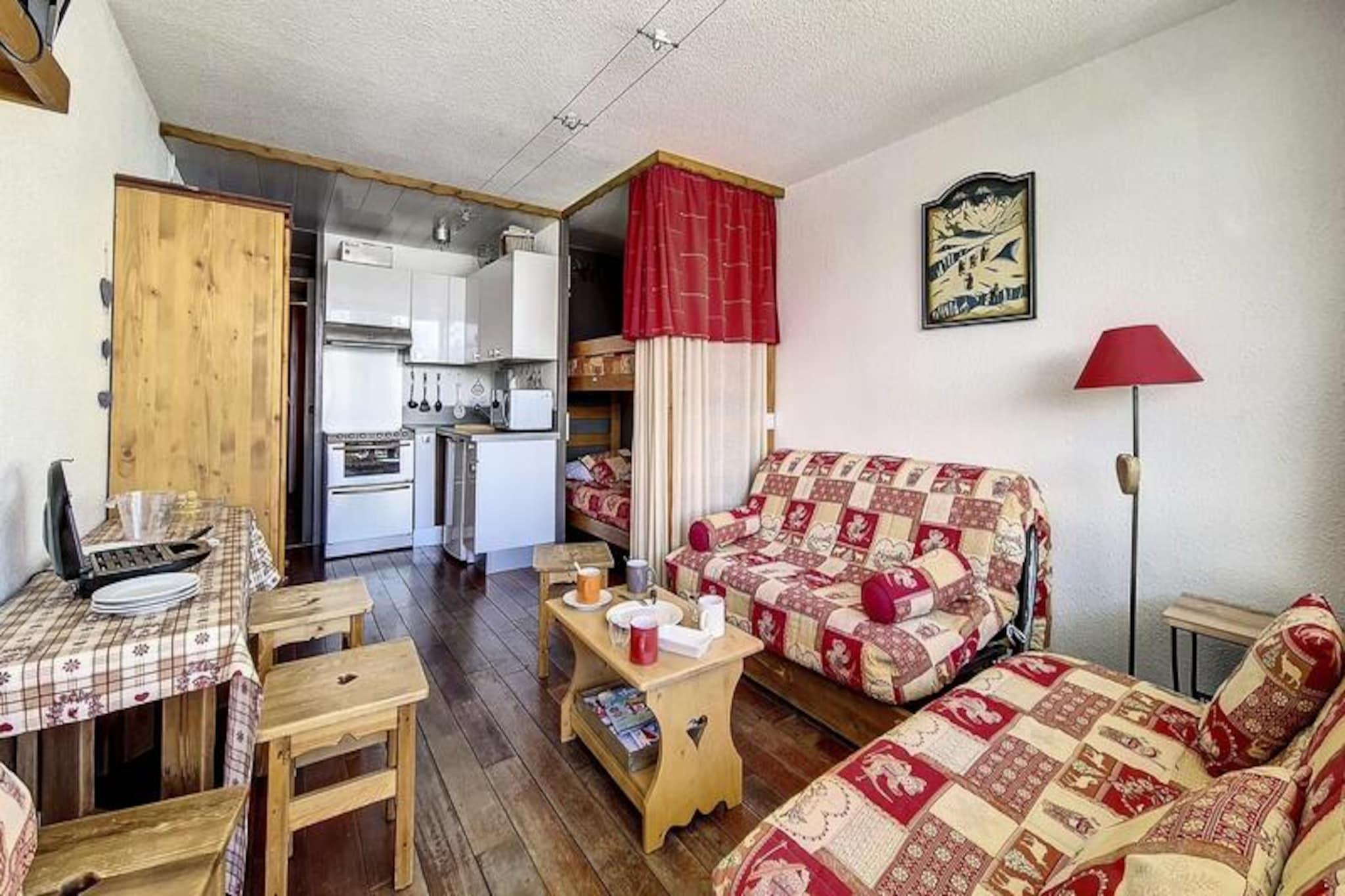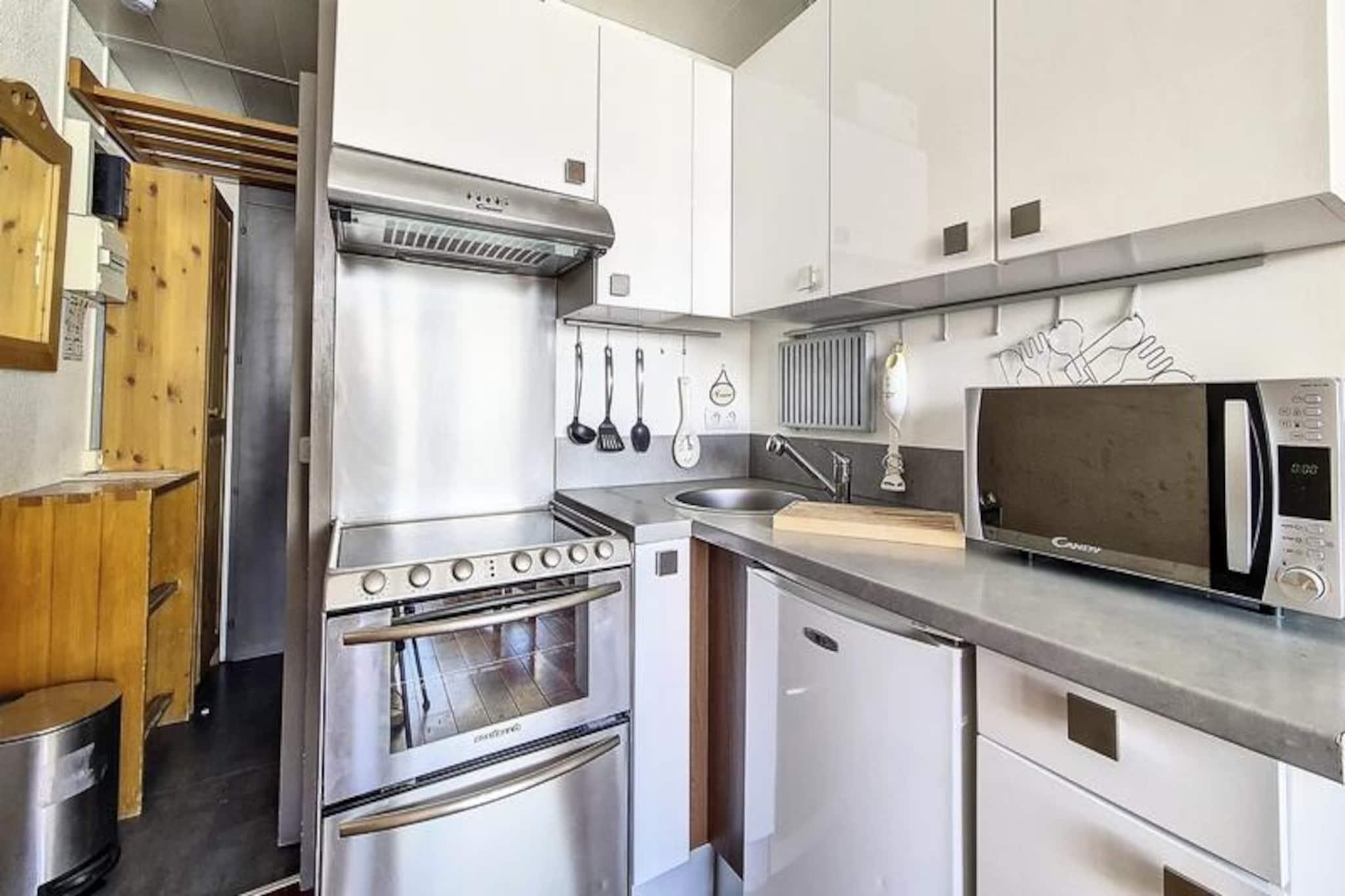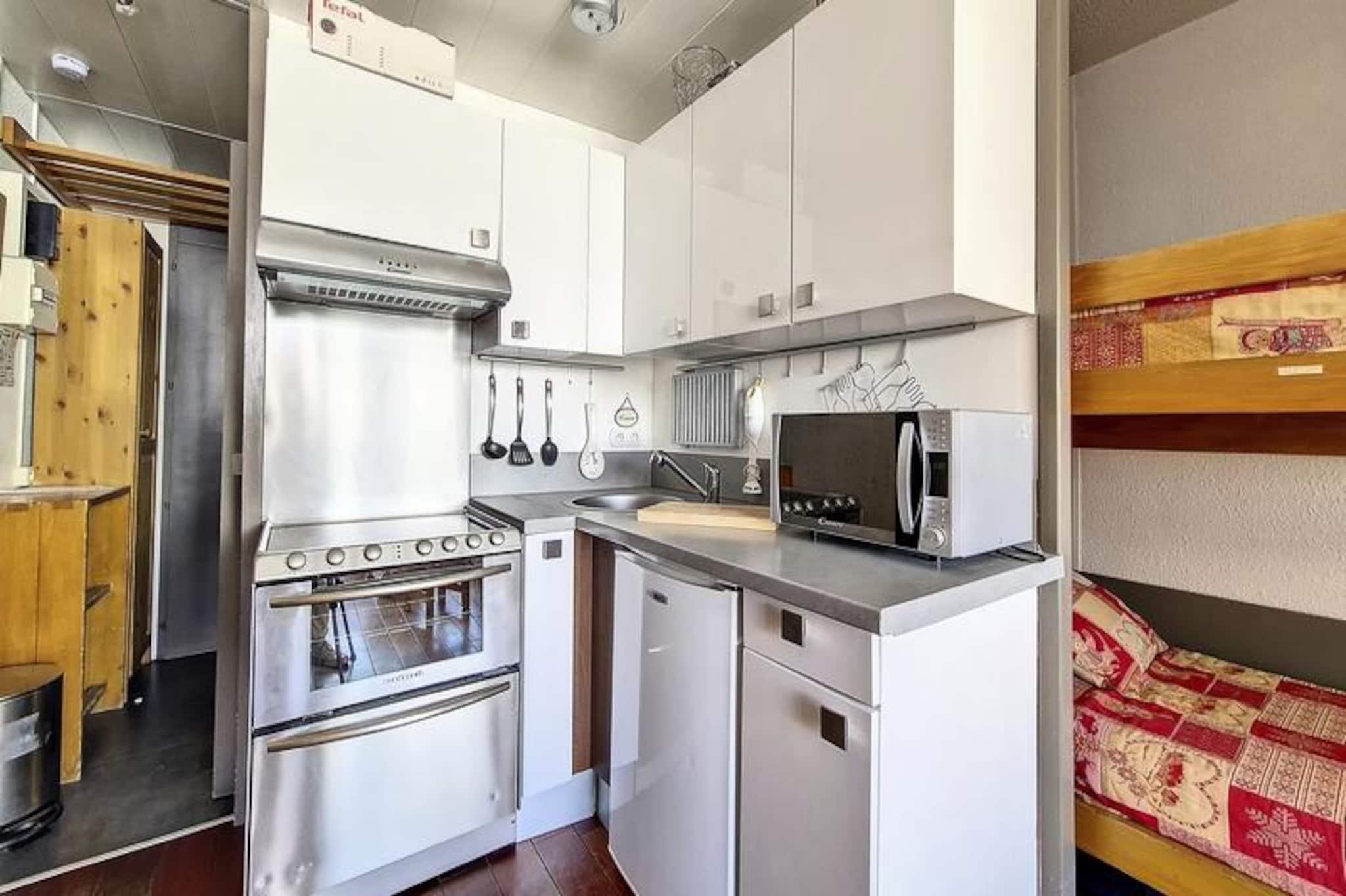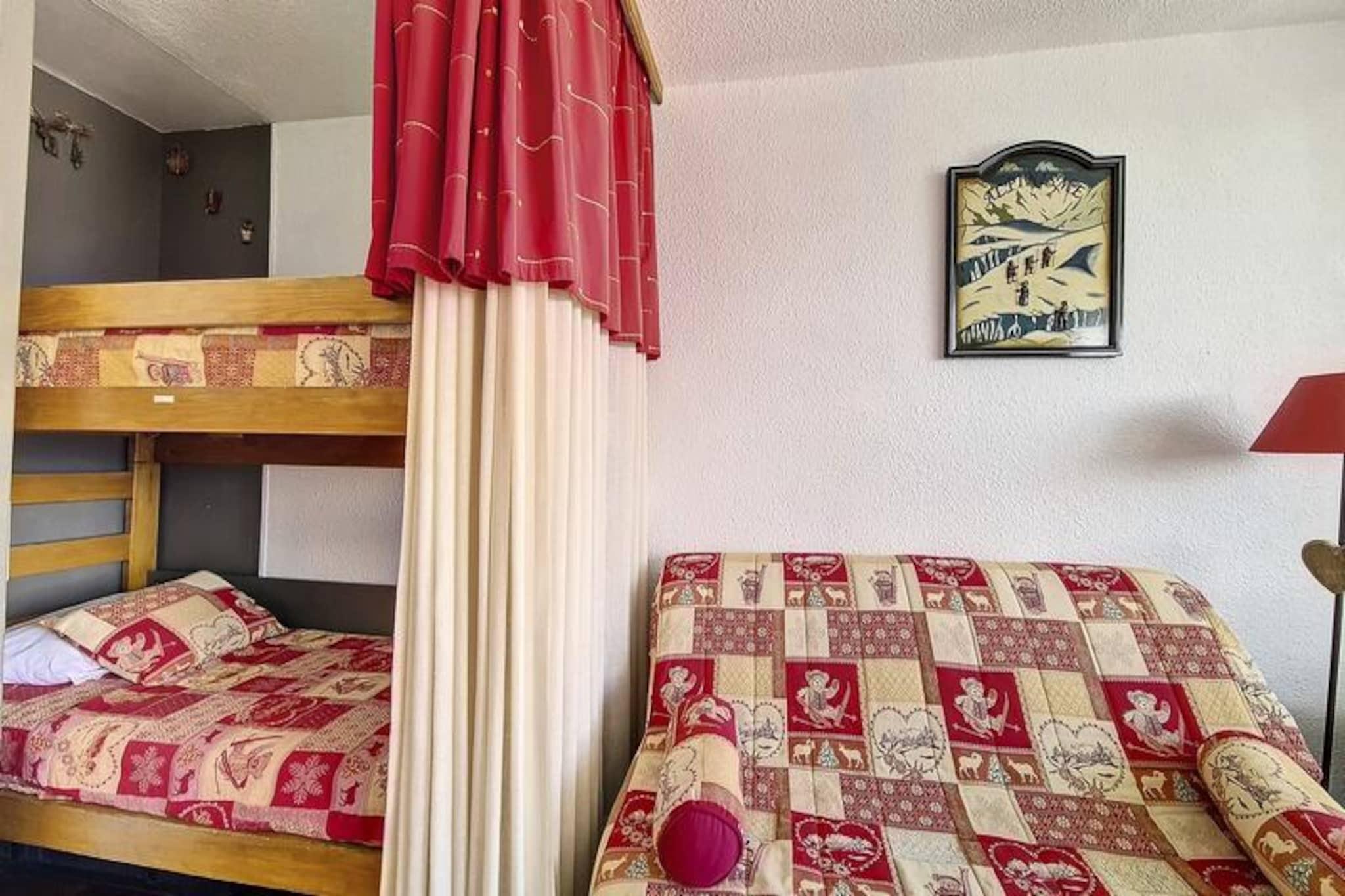 High above the bustling La Croisette district, this charming studio apartment offers a cozy retreat with direct access to the slopes and the convenience of a shopping arcade right below. Imagine stepping out of the building and being greeted by the pristine snow-covered trails, ready for your next alpine adventure. The south-facing balcony on the fifth floor provides stunning slope views, perfect for soaking in the mountain atmosphere after a day of skiing or exploring the area. With free outdoor parking available at the foot of the building, your arrival and departure are hassle-free, allowing you to focus on enjoying your holiday to the fullest. \n\nDesigned for up to four guests, this 24m² studio is thoughtfully arranged to maximize comfort and functionality. The living area features two single bunk beds and a BZ-type sofa bed, ideal for families or small groups. A well-equipped kitchen includes a ceramic hob, refrigerator, microwave, mini-oven, mini-dishwasher, toaster, kettle, and coffee maker, ensuring you have everything you need to prepare delicious meals. The bathroom offers a shower and separate toilet, while linoleum flooring throughout adds a touch of practicality. Blankets and duvets are provided, and the apartment is non-smoking for a fresh and clean environment.\n\nLocated just 300 meters from the daycare center, this residence is perfect for families with young children. Paid Wi-Fi access is available, and the vibrant La Croisette district offers a variety of amenities and entertainment options within walking distance. Whether you’re here to ski, shop, or simply unwind in the heart of the French Alps, this studio apartment combines comfort, convenience, and breathtaking views for an unforgettable stay. Don’t miss the chance to experience the magic of the mountains from this delightful retreat.