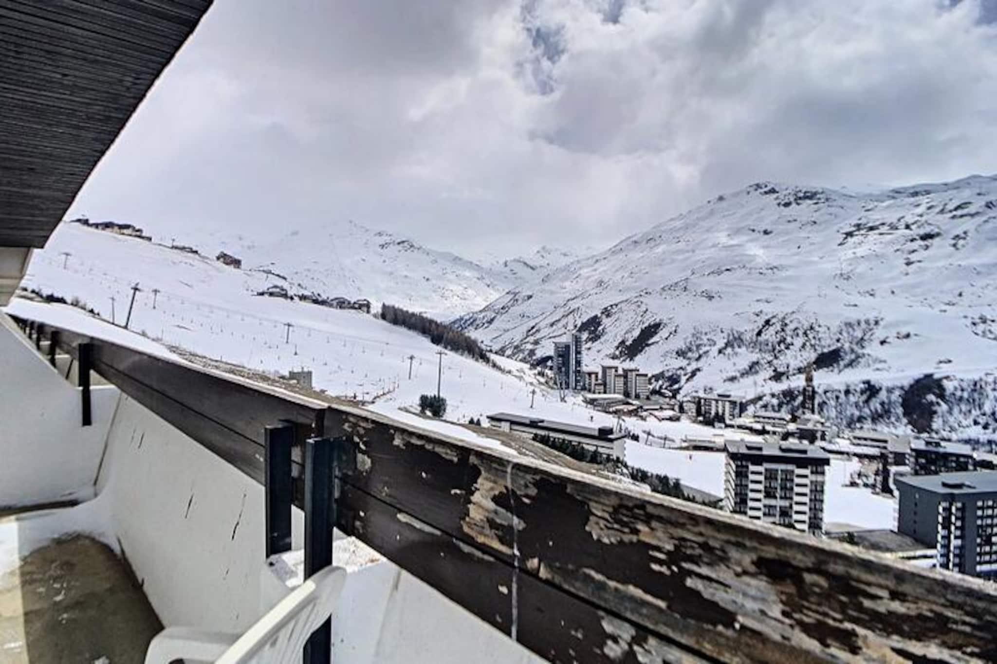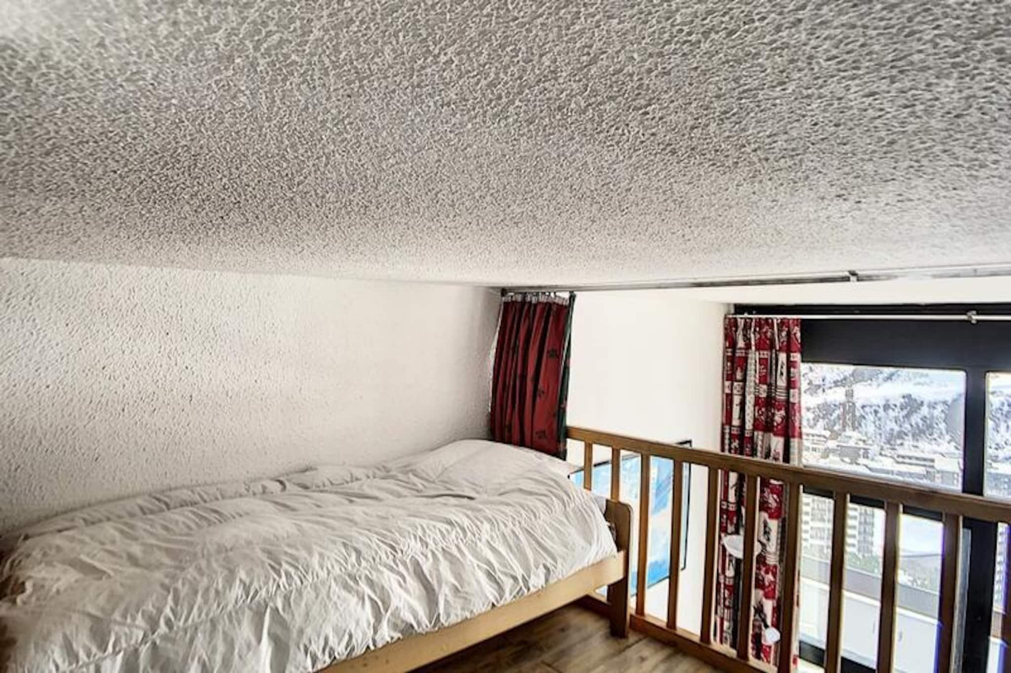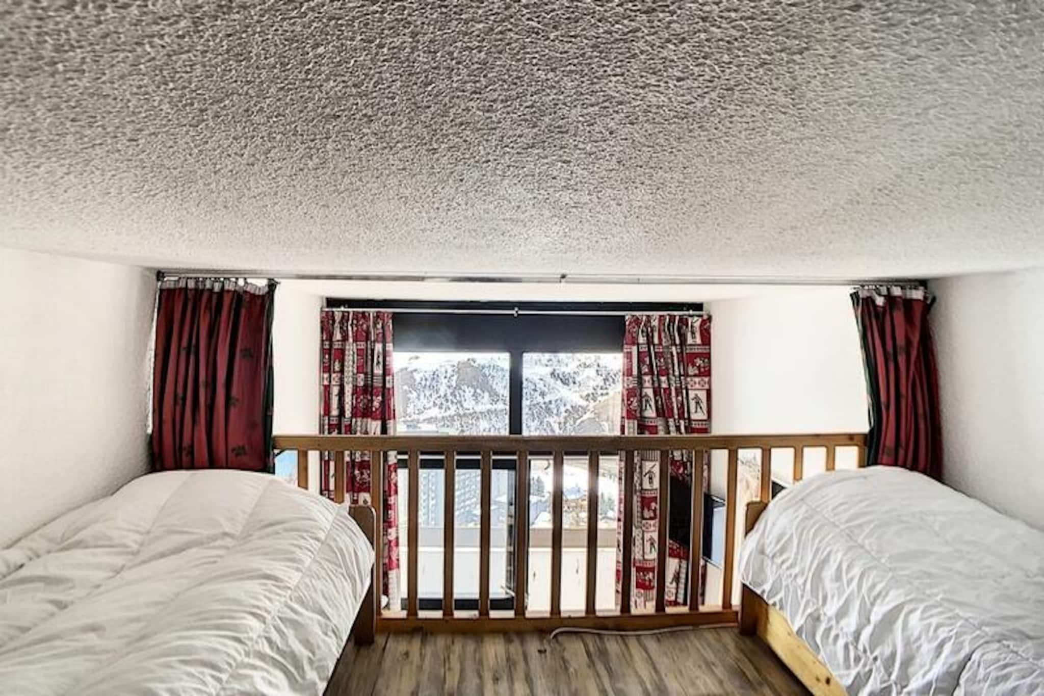 High above the vibrant Les Menuires resort, the Brelin building offers a unique alpine retreat with breathtaking views and direct access to the slopes. Perched above the La Croisette district, this charming duplex apartment is conveniently connected by 24/7 public elevators, ensuring easy access to the heart of the resort while maintaining a peaceful and elevated setting. The southwest-facing corner balcony on the 7th floor invites you to soak in the sunshine and marvel at the stunning mountain vistas that stretch as far as the eye can see. Whether you're here for winter skiing or summer hiking, this location promises unforgettable moments in the French Alps. \n\nInside, the cozy 39m² apartment is designed for comfort and practicality, accommodating up to six guests. The living room features a sofa bed and flat-screen TV, while the bedroom offers two single beds for restful nights. An open mezzanine above the living room, with a ceiling height of 1.50m, provides additional sleeping space with two single beds, making it ideal for families or small groups. The renovated bathroom with a bathtub and separate toilet ensures convenience, while the fully equipped kitchen—complete with a cooktop, microwave/grill, refrigerator, dishwasher, and more—makes meal preparation effortless. Additional amenities like boot warmers and a ski rack add thoughtful touches to your stay. \n\nThe Brelin building itself boasts a shopping arcade with ski lift ticket offices and essential shops, making it easy to stock up on supplies or plan your next adventure. Free parking at the Evons lift and ski lockers on the ground floor enhance the convenience, while the resort's paid Wi-Fi ensures connectivity during your stay. Whether you're exploring the slopes or enjoying the tranquility of the mountains, this apartment offers the perfect base for your alpine getaway. \n\nEscape to the French Alps and experience the charm and comfort of this delightful duplex, where every detail is designed to create lasting memories in a truly spectacular setting.