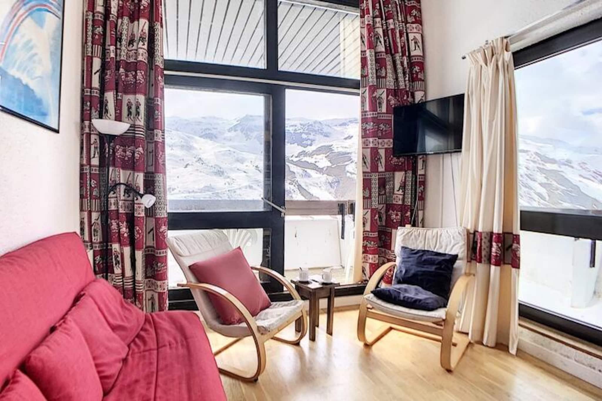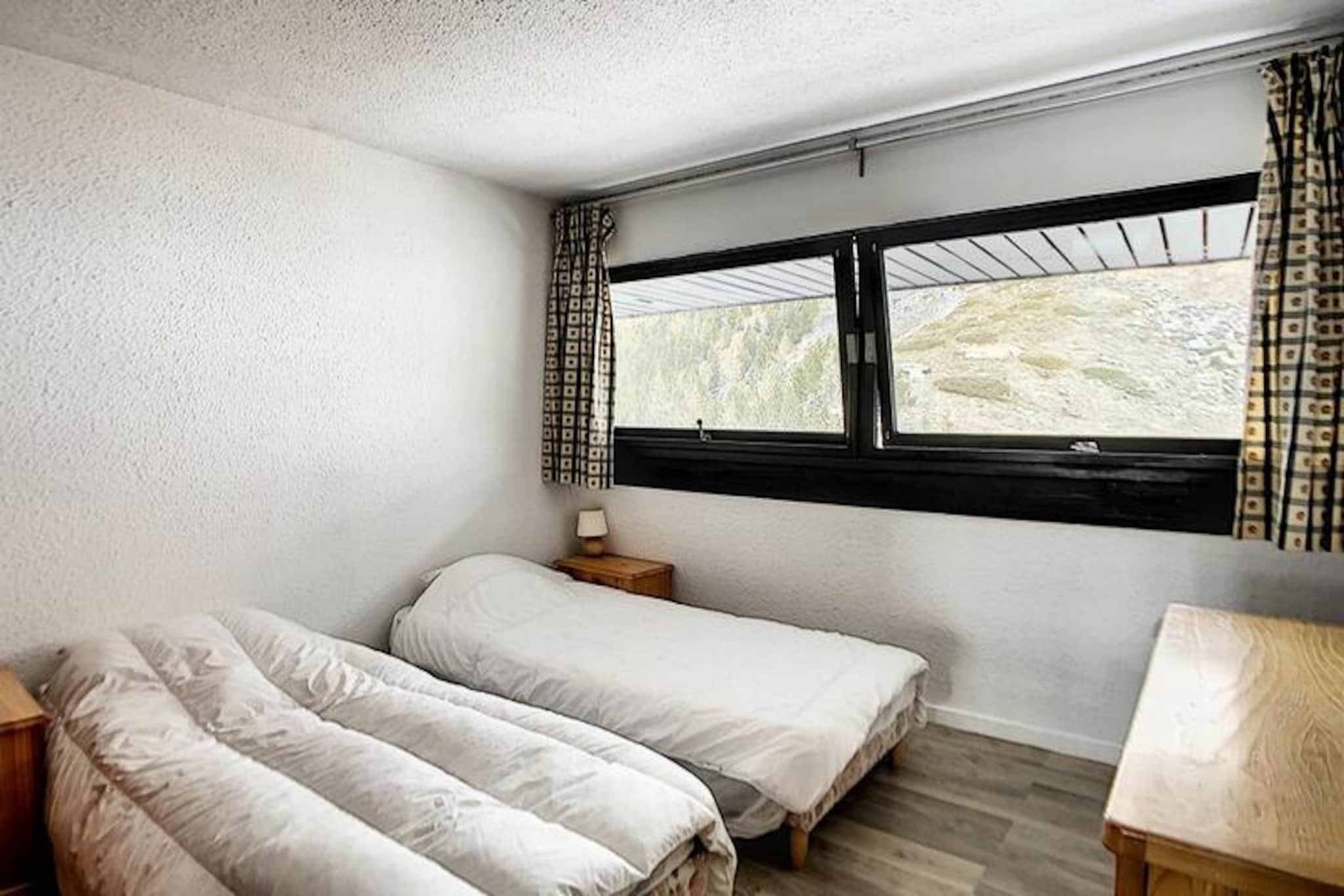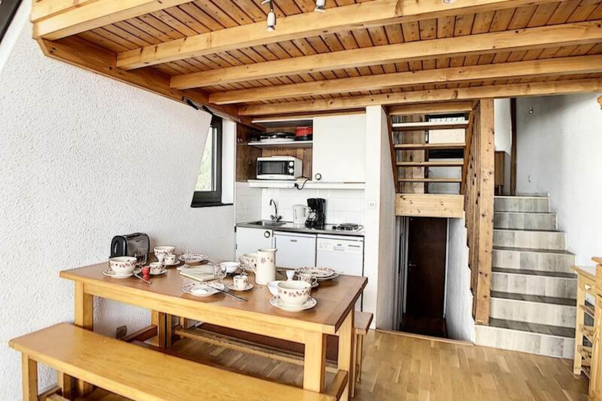 High above the vibrant Les Menuires resort, the Brelin building offers a unique alpine retreat with breathtaking views and direct access to the slopes. Perched above the La Croisette district, this charming duplex apartment is conveniently connected by 24/7 public elevators, ensuring easy access to the heart of the resort while maintaining a peaceful and elevated setting. The southwest-facing corner balcony on the 7th floor invites you to soak in the sunshine and marvel at the stunning mountain vistas that stretch as far as the eye can see. Whether you're here for winter skiing or summer hiking, this location promises unforgettable moments in the French Alps. \n\nInside, the cozy 39m² apartment is designed for comfort and practicality, accommodating up to six guests. The living room features a sofa bed and flat-screen TV, while the bedroom offers two single beds for restful nights. An open mezzanine above the living room, with a ceiling height of 1.50m, provides additional sleeping space with two single beds, making it ideal for families or small groups. The renovated bathroom with a bathtub and separate toilet ensures convenience, while the fully equipped kitchen—complete with a cooktop, microwave/grill, refrigerator, dishwasher, and more—makes meal preparation effortless. Additional amenities like boot warmers and a ski rack add thoughtful touches to your stay. \n\nThe Brelin building itself boasts a shopping arcade with ski lift ticket offices and essential shops, making it easy to stock up on supplies or plan your next adventure. Free parking at the Evons lift and ski lockers on the ground floor enhance the convenience, while the resort's paid Wi-Fi ensures connectivity during your stay. Whether you're exploring the slopes or enjoying the tranquility of the mountains, this apartment offers the perfect base for your alpine getaway. \n\nEscape to the French Alps and experience the charm and comfort of this delightful duplex, where every detail is designed to create lasting memories in a truly spectacular setting.