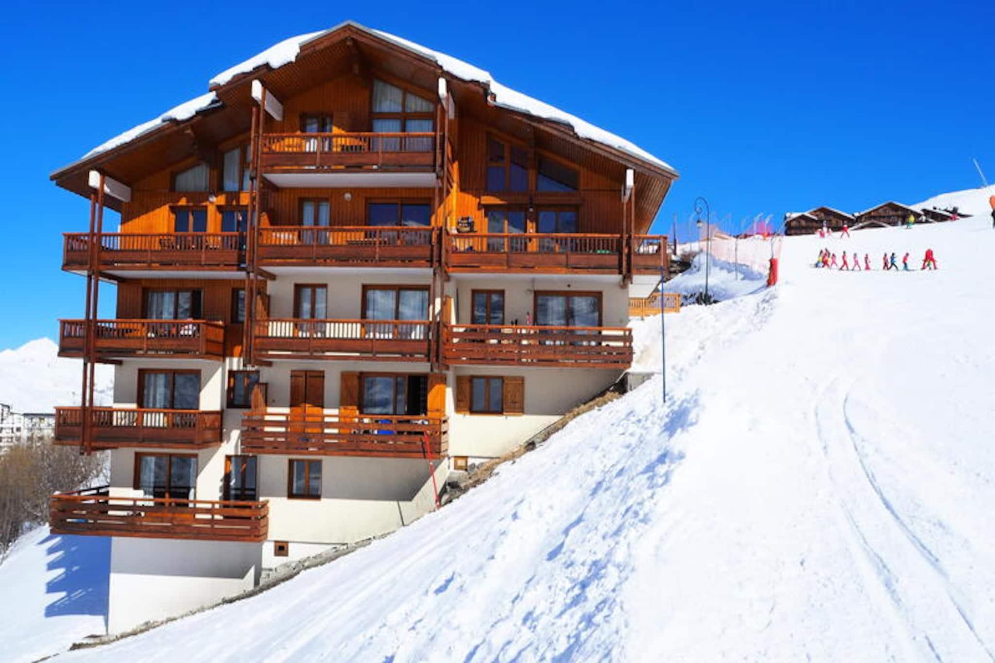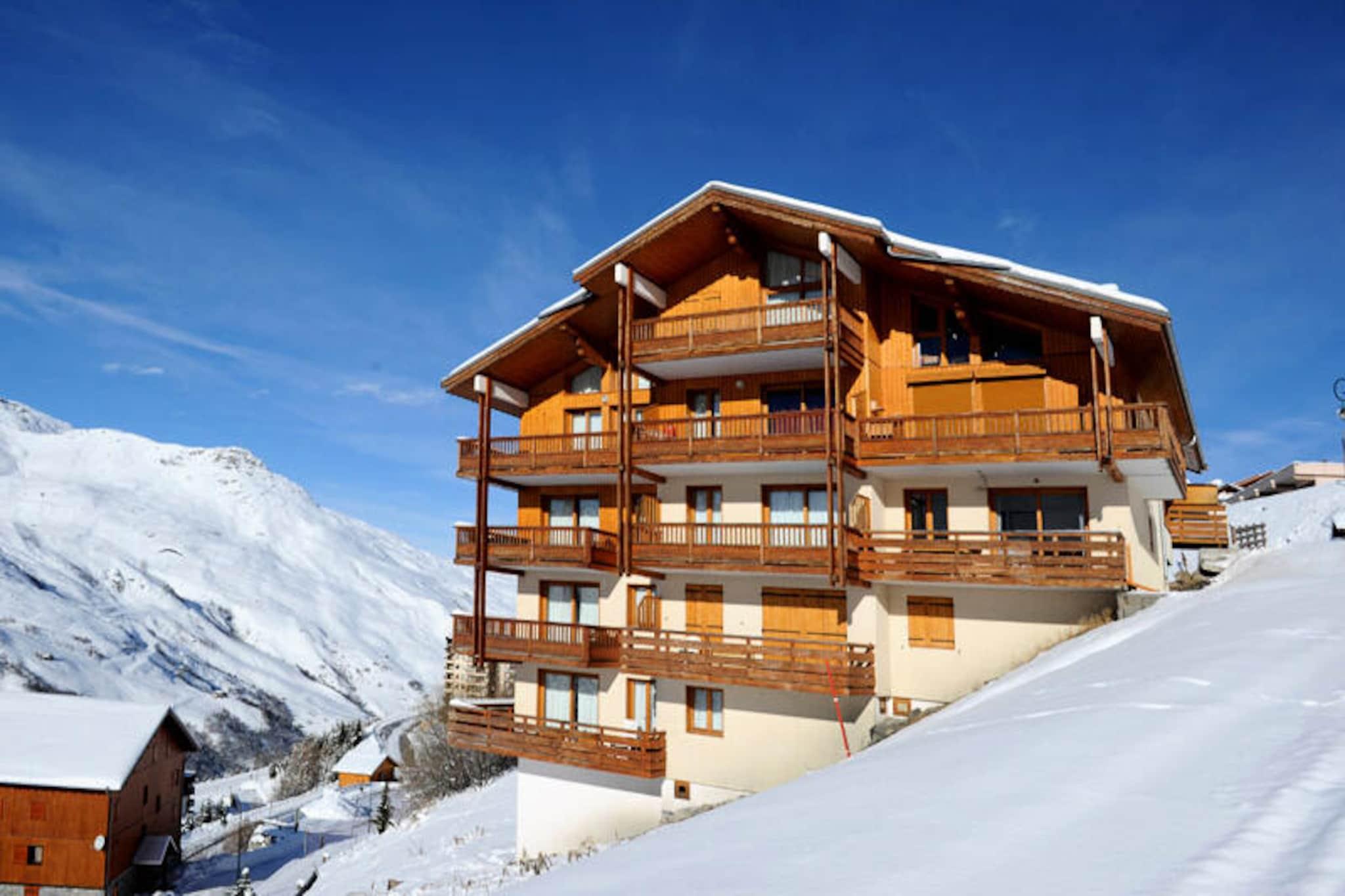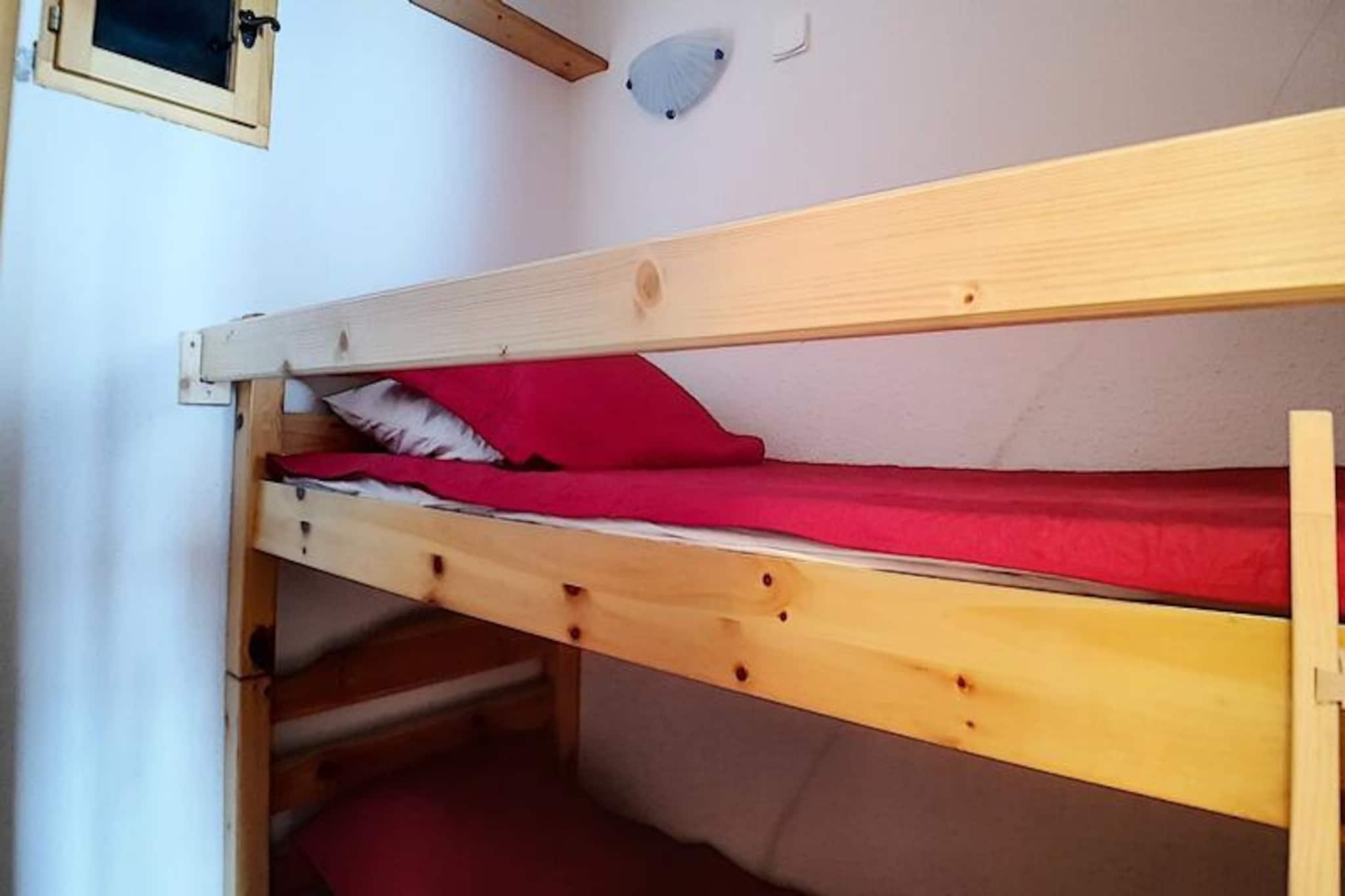 High above the shimmering slopes of Reberty 2000, this charming chalet-style residence offers a serene alpine retreat with unbeatable ski-in/ski-out access. Imagine waking up to the crisp mountain air, stepping onto your spacious south-facing balcony, and gazing out at the snowy expanse of Les Boyes blue ski run just steps away. With free parking and a convenient shuttle bus stop right at the entrance, your journey to adventure begins effortlessly each day. Whether you're here for thrilling descents or peaceful mountain moments, this cozy haven promises an unforgettable stay. \n\nThe apartment, thoughtfully designed for up to six guests, combines comfort and practicality. Its unique layout includes an entrance at ground level and a third-floor balcony, ensuring easy access. Inside, you'll find a warm living room with a pull-out sofa bed, a tranquil bedroom with a double bed and fitted wardrobe, and a cozy cabin with bunk beds. The fully equipped American-style kitchen invites you to prepare hearty meals with its array of modern appliances, including a crepe maker, fondue set, and raclette grill—perfect for indulging in local culinary traditions. A bathroom with a shower, separate toilet, and convenient amenities like a washing machine complete the setup for a stress-free stay. \n\nNestled in the heart of the Three Valleys ski domain, this residence places you within reach of world-class slopes, picturesque trails, and vibrant après-ski spots. After a day of adventure, unwind on your private terrace with teak furniture, soaking in the serene mountain ambiance. Whether you're exploring the pristine snow or basking in the summer sun, Reberty 2000 offers a gateway to the best of the Alps. \n\nChoose this delightful apartment for its unbeatable location, thoughtful amenities, and the promise of cherished alpine memories.