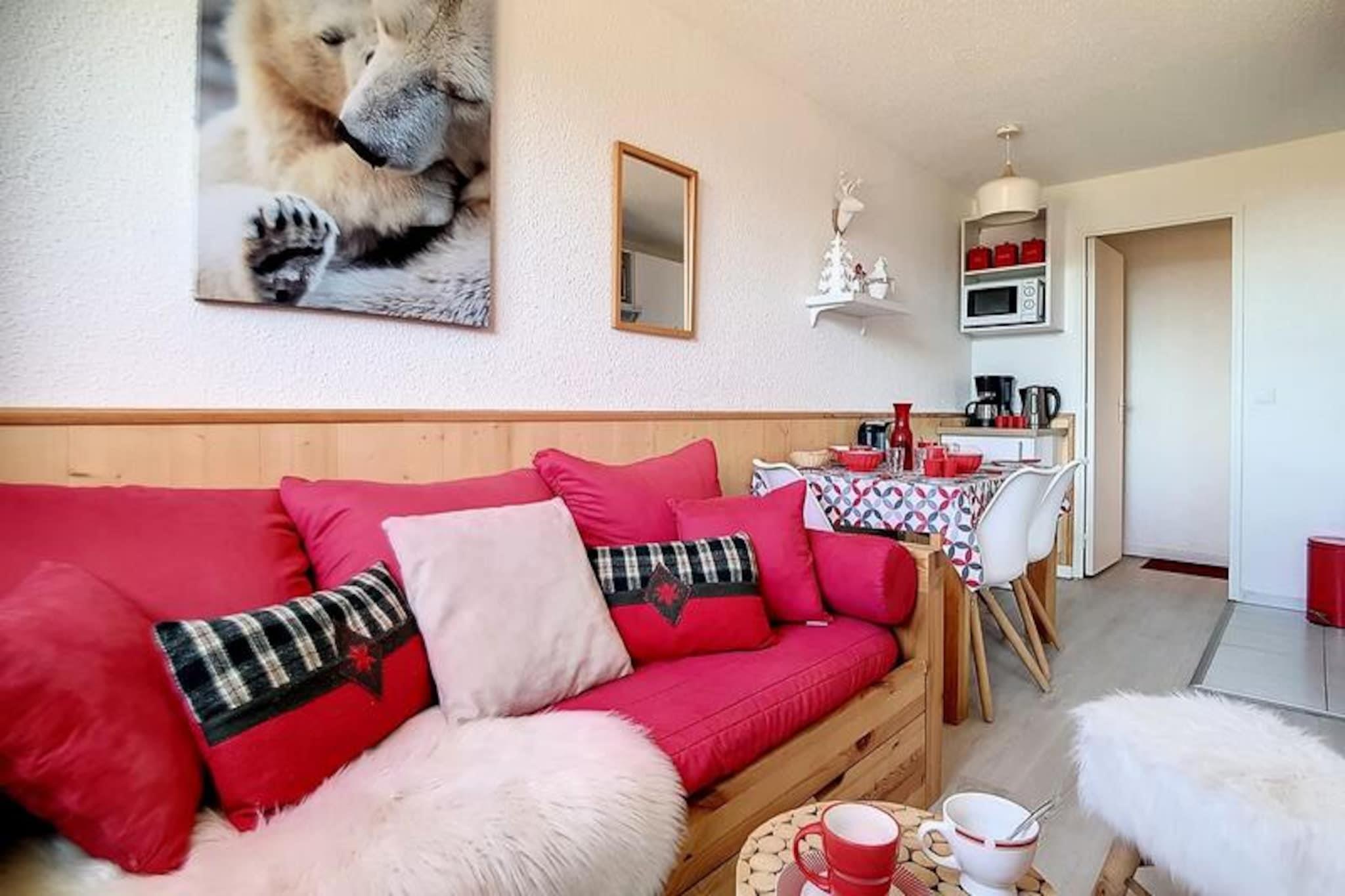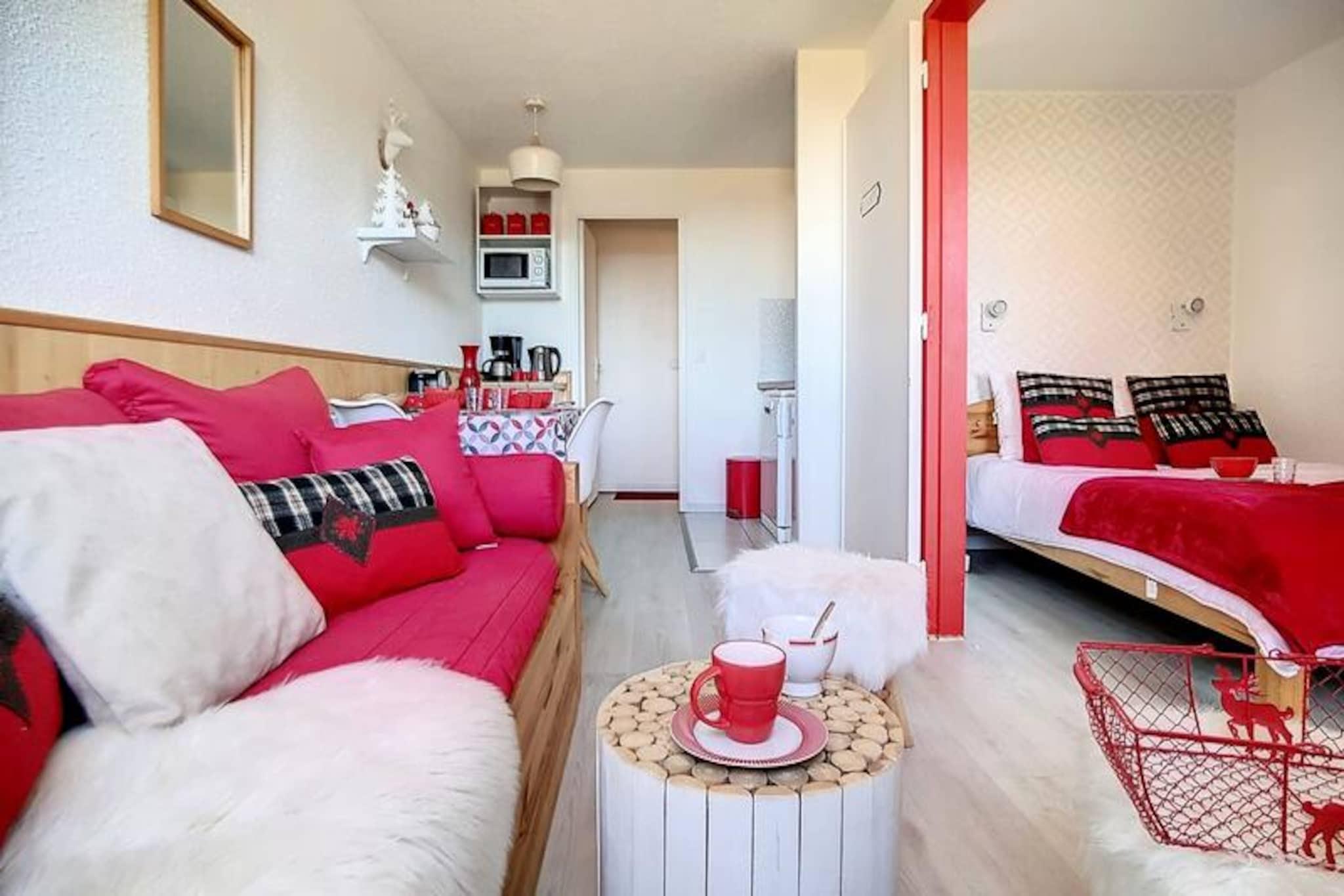 High above the bustling Reberty 1850 district, this charming apartment offers a cozy retreat for those seeking both adventure and relaxation in the heart of Les Trois Vallées. Imagine waking up to the sun streaming through your south-facing balcony, sipping coffee while gazing at the snow-covered peaks that surround you. With free parking at the foot of the building and the slopes just 250 meters away, your alpine escape begins the moment you step outside. Whether you're here to carve through pristine powder or simply soak in the serene mountain atmosphere, this residence is perfectly positioned to make every moment unforgettable. \n\nInside, the apartment is thoughtfully designed to accommodate up to four guests. The living room features a single sofa bed and a pull-out bed, ensuring flexibility for families or small groups. The separate bedroom offers a comfortable double bed for restful nights after a day of exploration. The kitchen is fully equipped with modern amenities, including a dishwasher, microwave, and Senseo coffee machine, making it easy to prepare hearty meals. A bathroom with a bathtub and toilet adds to the convenience, while the apartment's non-smoking policy and prohibition on pets ensure a clean and pleasant environment. \n\nNearby, you'll find a ski school and shops, making it effortless to gear up for your adventures or enjoy après-ski activities. Paid Wi-Fi access keeps you connected, while the free parking simplifies your arrival and departure. Whether you're here for winter sports or summer hikes, the Médian residence places you at the center of it all. \n\nChoose this welcoming apartment for your next alpine getaway and create lasting memories in one of France's most iconic mountain destinations.