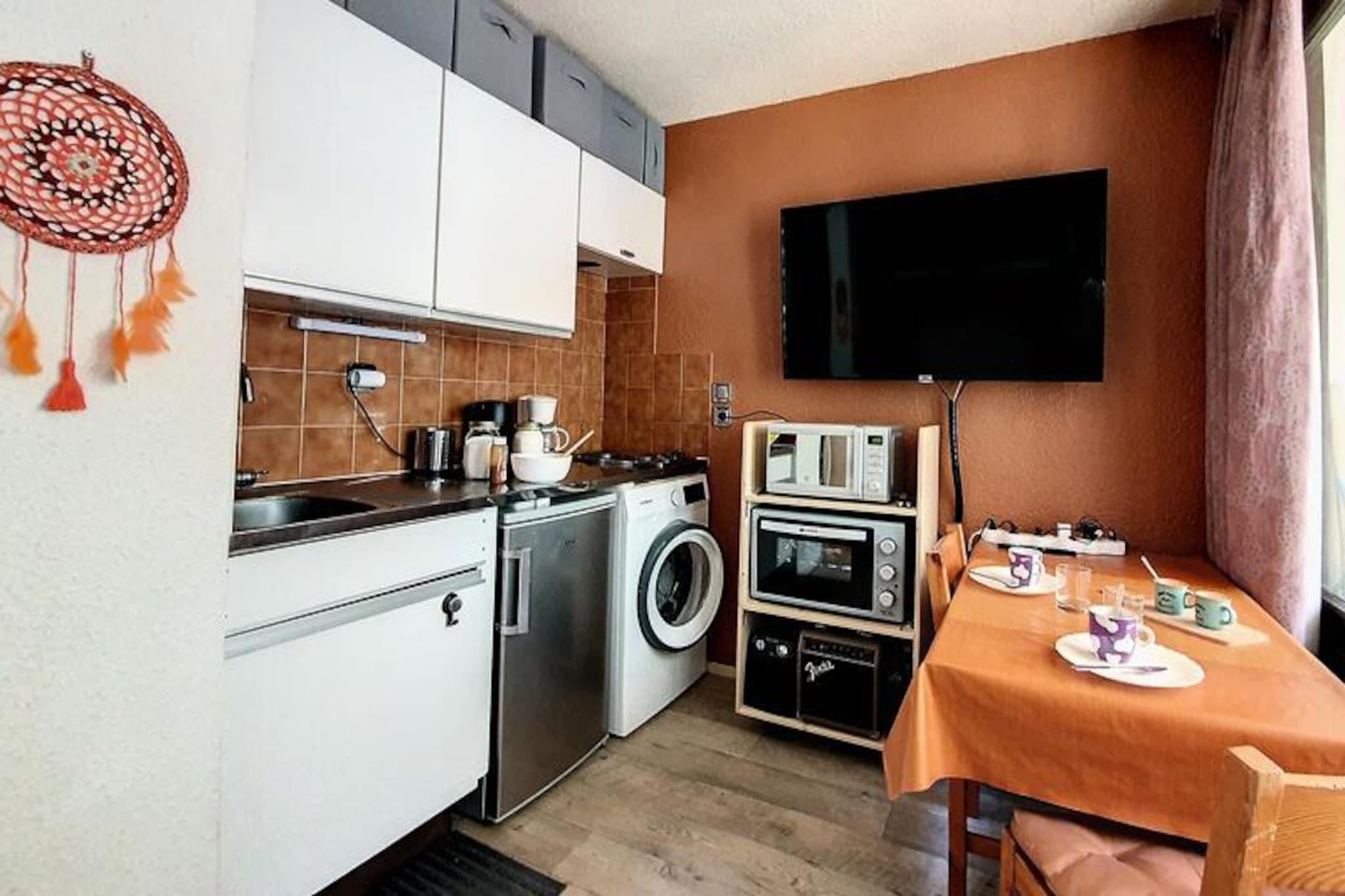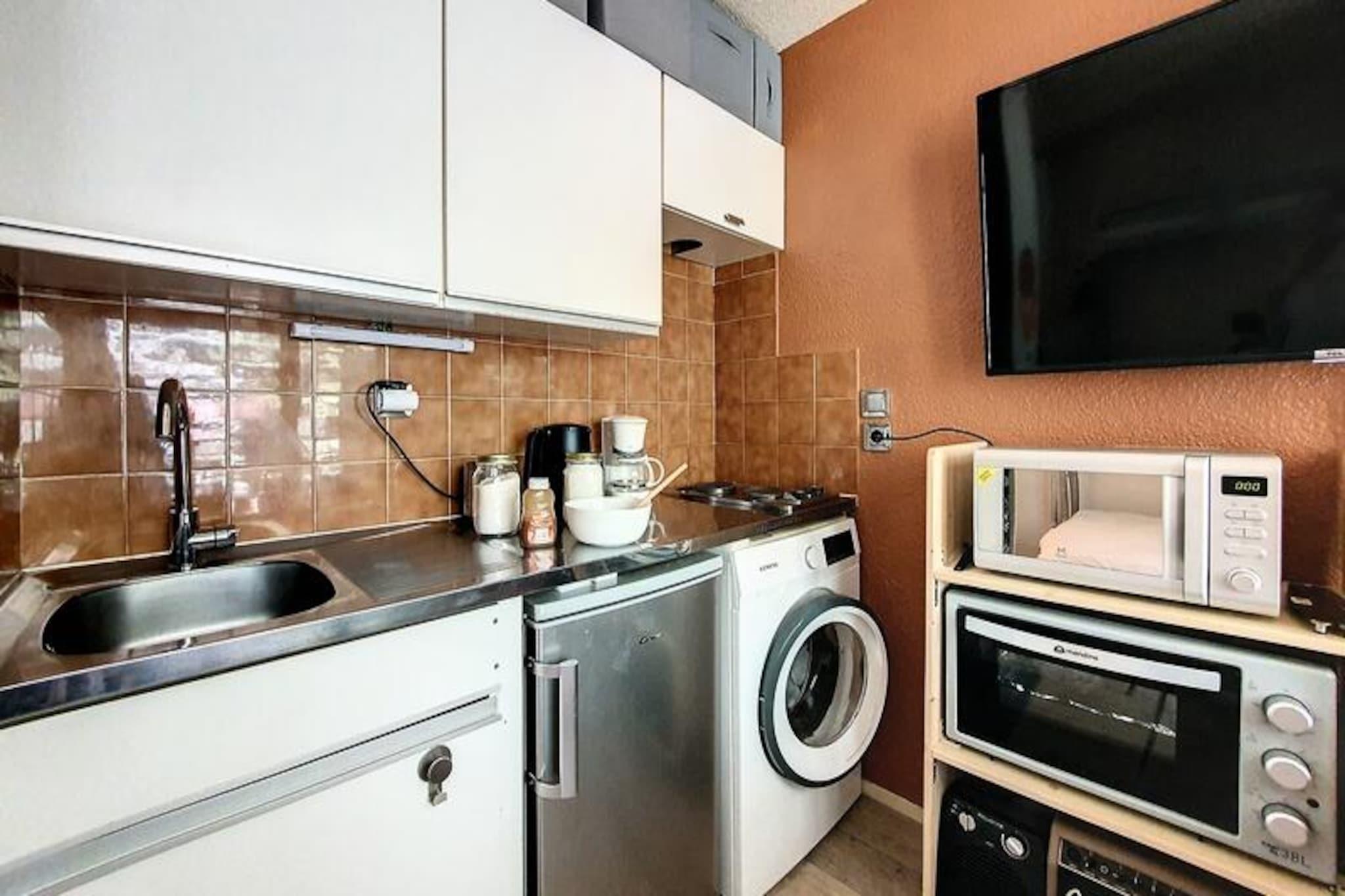 In the heart of the picturesque French Alps, this charming studio apartment offers an inviting retreat for couples or solo travelers seeking a cozy alpine getaway. Situated in the Gentianes residence on Place des Bouquetins, the property is just 20 meters from the slopes, making it a dream destination for ski enthusiasts. Wake up to the crisp mountain air and enjoy your morning coffee on the east-facing balcony, soaking in the serene views of the surrounding peaks. The residence combines modern convenience with alpine charm, ensuring a comfortable and memorable stay. \n\nThe 17 m² studio is thoughtfully designed to maximize space and comfort. It features a cozy living area with a double bed and a single bunk bed, perfect for a restful night after a day of adventure. The fully equipped kitchen includes a 2-burner cooktop, refrigerator, microwave, oven, coffee maker, kettle, and even a washing machine, making it easy to prepare meals and feel at home. The bathroom is fitted with a bathtub and toilet, and the apartment is equipped with free Wi-Fi (subject to network coverage), a television, and laminate flooring for added comfort. This non-smoking, pet-free property ensures a clean and welcoming environment for all guests.\n\nBeyond the residence, a pedestrian bridge provides easy access to the lively Bruyères district, where you’ll find a variety of restaurants, shops, a water park and wellness center, a cinema, a toboggan run, a ski school, and a children’s playground. For those who enjoy exploring, the Croisette district is just a 15-minute walk away via a scenic pedestrian path. Whether you’re here to hit the slopes, relax in the wellness center, or explore the charming alpine surroundings, this studio apartment offers the perfect base for your mountain escape. With its unbeatable location and thoughtful amenities, it’s an ideal choice for a memorable holiday in the French Alps.