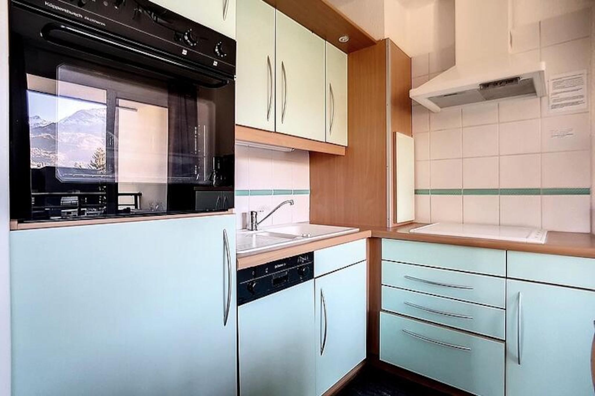 In the heart of the picturesque Place des Bouquetins, this charming apartment offers a cozy alpine retreat just 20 meters from the slopes. Imagine stepping out of your door and being moments away from thrilling ski adventures, all while surrounded by the serene beauty of the French Alps. With its southwest-facing balcony, you can bask in the afternoon sun while enjoying views of the lively square below, creating the perfect setting for relaxation after a day on the mountain. \n\nThis thoughtfully designed 32 m² apartment comfortably accommodates up to five guests, making it ideal for families or small groups. The living room features a sofa bed that converts into a double bed, while the bedroom offers two single bunk beds and an additional single bed. The well-equipped kitchen includes a ceramic hob, grill oven, microwave, refrigerator, dishwasher, and all the essentials for preparing delicious meals. Modern conveniences such as free Wi-Fi, a television, and electric shutters ensure a comfortable and hassle-free stay. The apartment also includes a ski locker for your convenience. \n\nA pedestrian bridge opposite the residence connects you to the vibrant Bruyères district, where you’ll find a variety of restaurants, shops, a cinema, a water park, and a wellness center. Families will appreciate the nearby toboggan run, ski school, and children’s playground. For those looking to explore further, the Croisette district is just a 15-minute walk away via a scenic pedestrian path. \n\nWhether you’re here to carve through fresh powder or simply soak in the alpine charm, this apartment offers a perfect blend of comfort, convenience, and access to the best of Les Menuires. Make unforgettable memories in this delightful mountain escape.