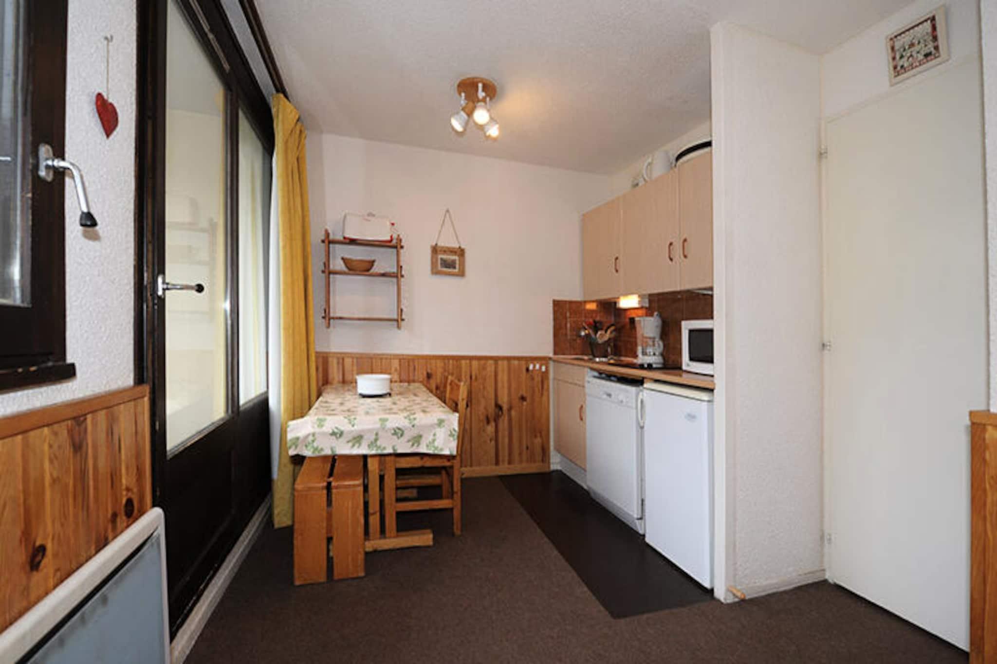 In the heart of the picturesque Place des Bouquetins, this charming studio apartment offers a cozy retreat just 20 meters from the slopes, making it an ideal choice for ski enthusiasts and mountain lovers alike. With its west-facing balcony, you can unwind after a day of adventure while soaking in the serene alpine views and golden sunsets that paint the horizon. The residence combines convenience and comfort, ensuring a memorable stay in the French Alps. \n\nThe apartment, thoughtfully designed to accommodate up to four guests, features a sleeping alcove with two single bunk beds and a living room equipped with a single sofa bed and a pull-out bed. The compact yet functional kitchen includes modern amenities such as a ceramic hob, microwave, refrigerator, dishwasher, and coffee maker, making it easy to prepare hearty meals after a day on the slopes. A separate bathroom and WC add to the practicality, while free Wi-Fi ensures you stay connected throughout your holiday. The apartment is non-smoking and pet-free, providing a clean and welcoming environment for all guests. \n\nStep outside and discover the vibrant Bruyères district via the pedestrian bridge opposite the residence. Here, you'll find a variety of restaurants, shops, a tourist office, a water park, a wellness center, a cinema, and even a toboggan run and ski school. Families will appreciate the nearby children’s playground, while the Croisette district, just a 15-minute walk away, offers additional attractions and amenities. \n\nWhether you’re seeking thrilling ski adventures, relaxing wellness experiences, or simply a peaceful alpine escape, this studio apartment at Gentianes residence is your gateway to the enchanting beauty and excitement of Les Menuires. Create unforgettable memories in this idyllic mountain setting.
