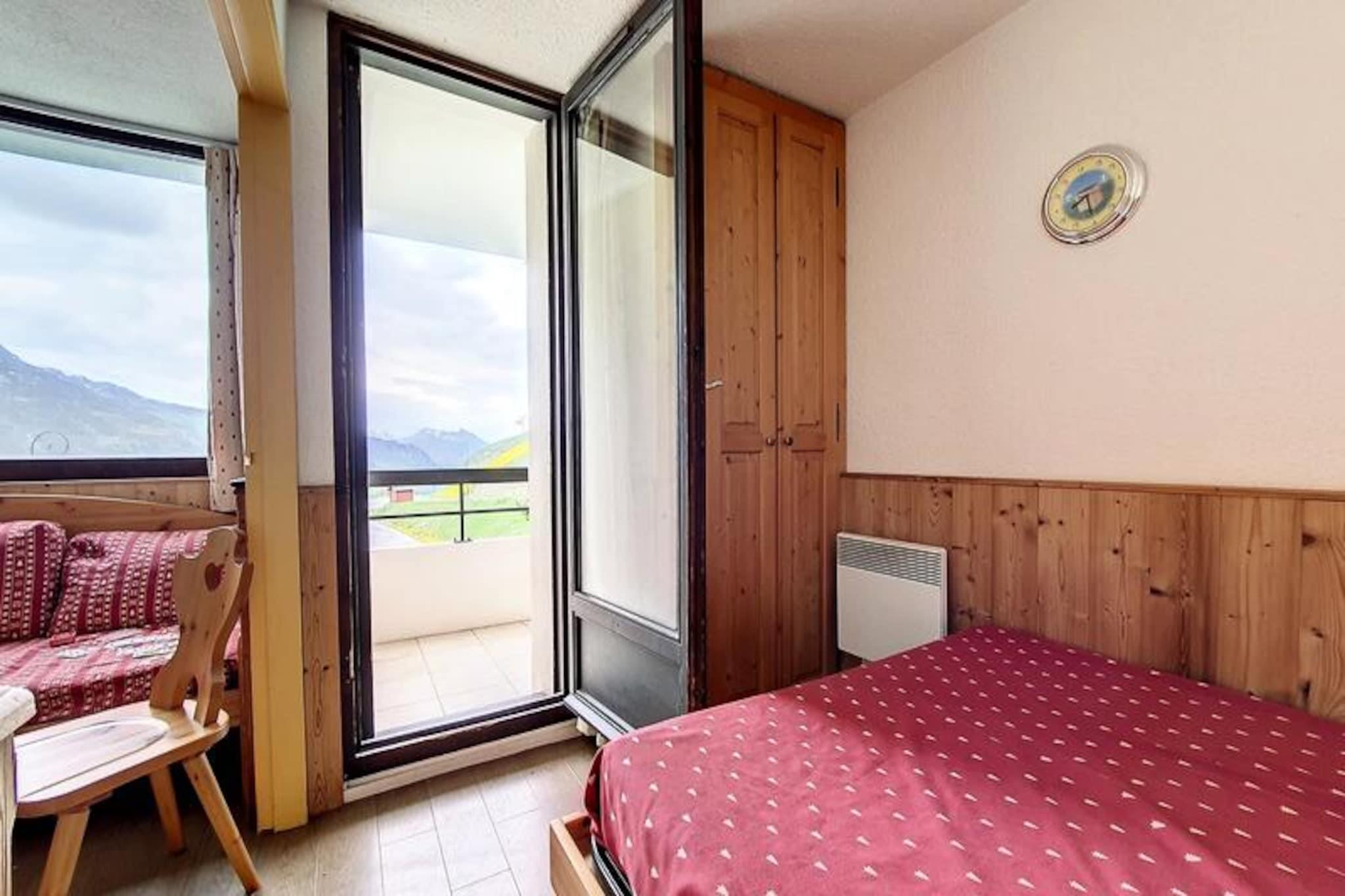 In the serene Reberty 1850 district, this charming two-room apartment offers a cozy retreat for up to four guests. Located on the 2nd floor of the Médian residence, it combines modern comfort with alpine charm, making it an ideal choice for couples or small families seeking a memorable mountain getaway. The northeast-facing balcony invites you to start your day with crisp mountain air and views of the surrounding peaks, setting the tone for an unforgettable stay in the French Alps. Free parking at the foot of the building ensures convenience, while nearby shops and a ski school make this location perfect for both relaxation and adventure. The slopes are just 250 meters away, offering easy access to thrilling winter sports or scenic summer hikes. Inside, the apartment boasts a thoughtfully designed layout with a movable partition for added flexibility. The living room features a single sofa bed and a pull-out bed, complemented by a television for cozy evenings indoors. The bedroom is furnished with a comfortable double bed, ensuring restful nights after active days. The fully equipped kitchen includes a two-burner cooktop, microwave, refrigerator, dishwasher, toaster, kettle, and electric coffee maker, making meal preparation a breeze. Linoleum flooring throughout adds to the practicality and ease of maintenance. After a day exploring the slopes or trails, unwind in the bathroom with a bathtub and toilet. While the apartment is non-smoking and pet-free, it is equipped with blankets for added comfort. Paid Wi-Fi access is available, subject to network coverage, allowing you to stay connected during your stay. With its blend of convenience, comfort, and proximity to key facilities, this apartment is the perfect base for your alpine adventures. Whether you’re here to ski, hike, or simply relax, the Médian residence offers a warm and welcoming escape in the heart of the French Alps.