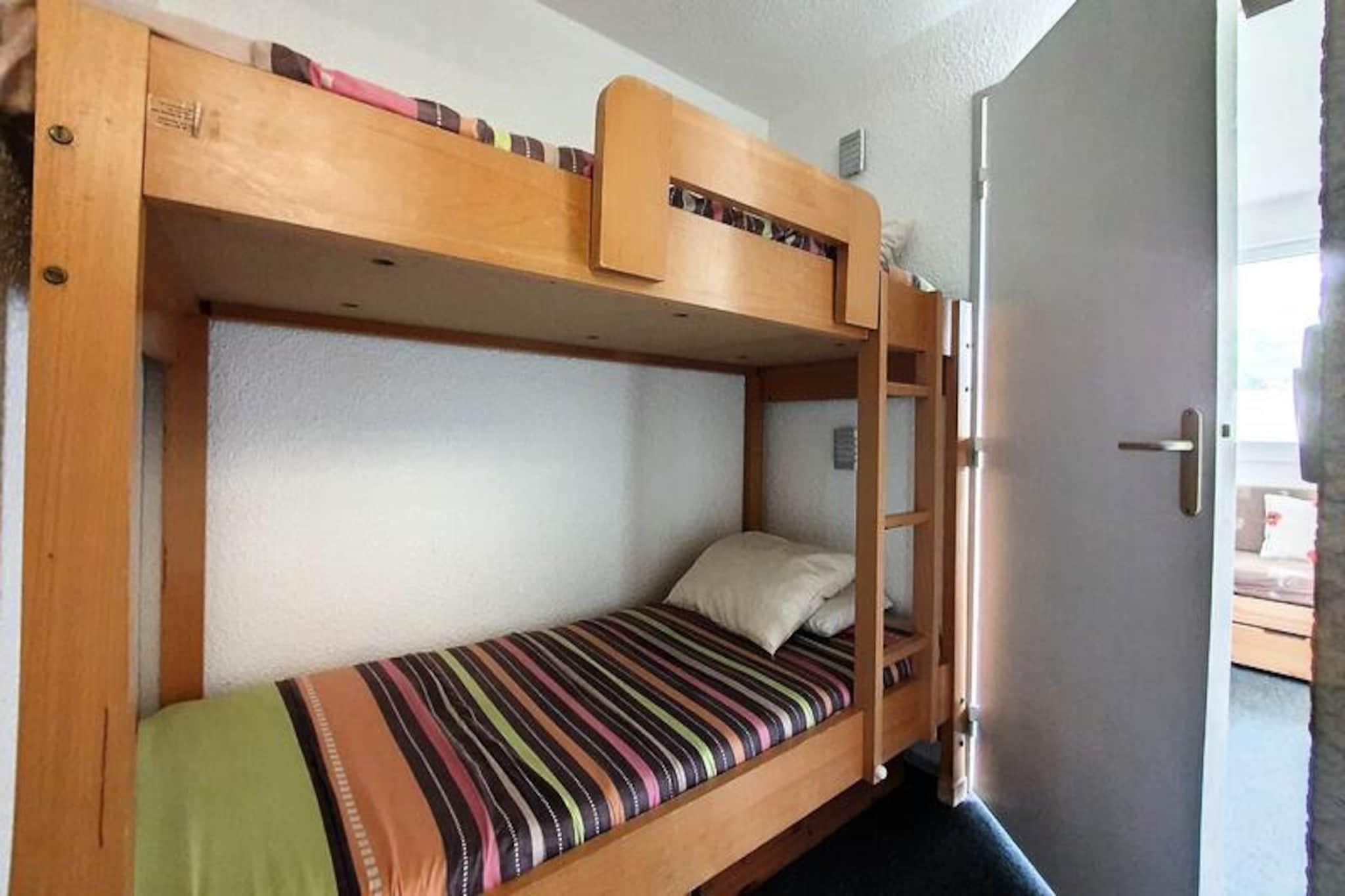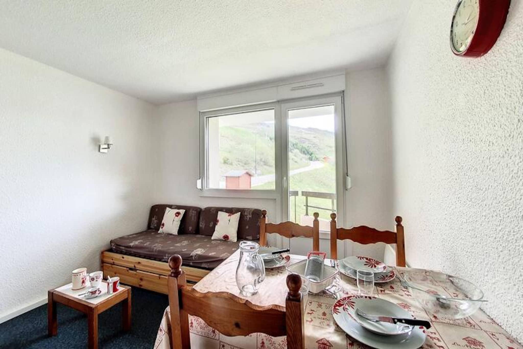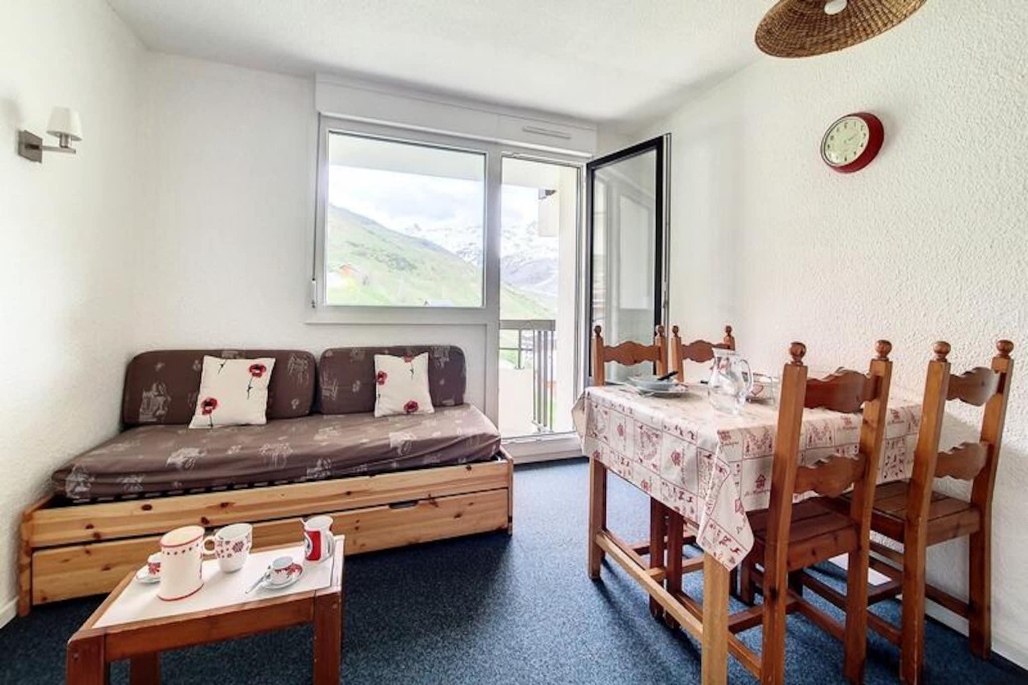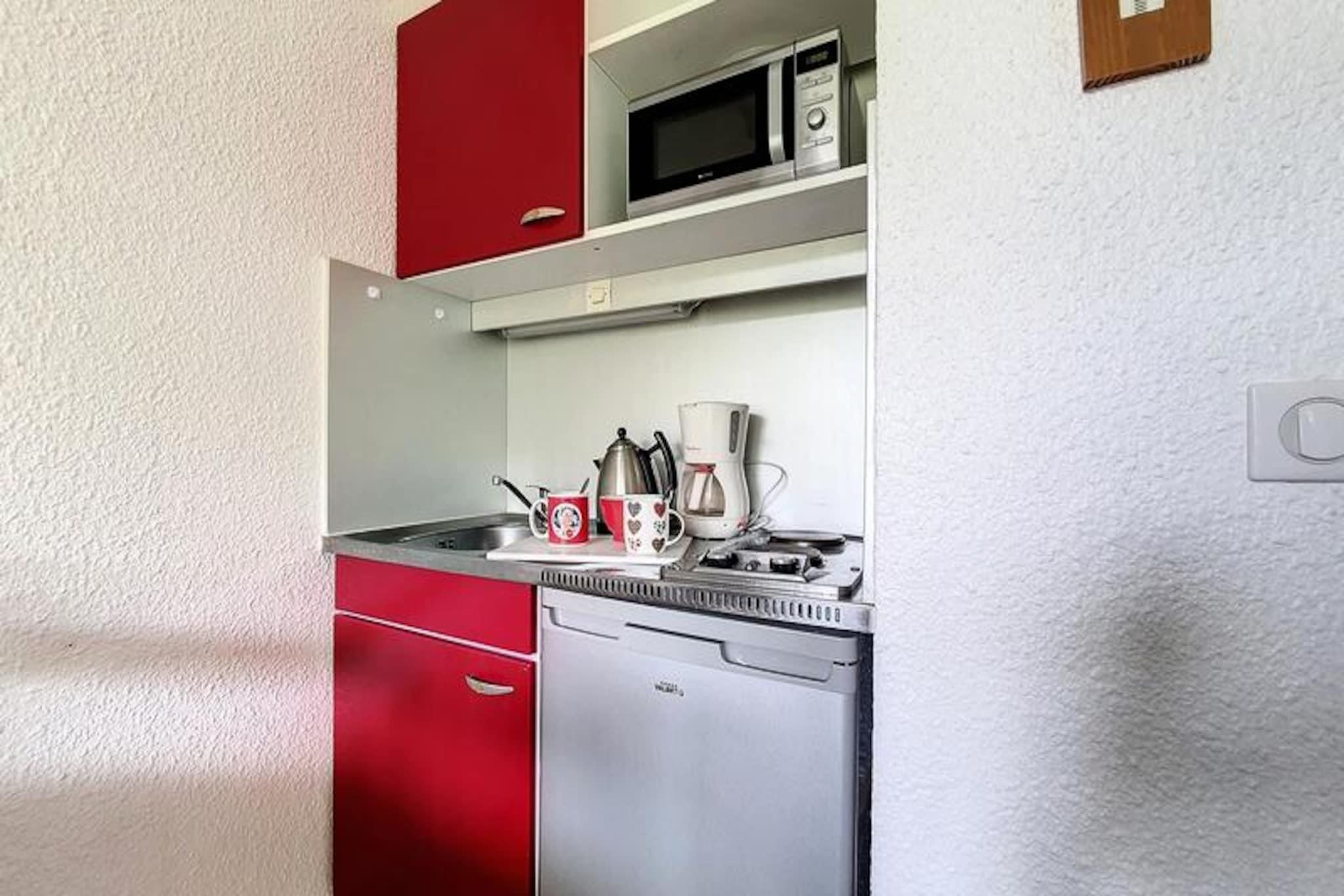 High above the picturesque Reberty 1850 district, this charming studio apartment invites you to experience the magic of the French Alps. With its south/east-facing balcony, enjoy breathtaking views as the morning sun bathes the snowy peaks in golden light. Perfect for a couple or small group, this cozy retreat offers a peaceful escape just moments from the slopes and alpine adventures. Whether you're here to ski, hike, or simply relax, the Médian residence provides a welcoming base for your mountain getaway. \n\nInside, the 18 m² studio is thoughtfully designed to maximize comfort and convenience. The living area features a single sofa bed and pull-out bed, while a separate sleeping alcove offers a single bed for added privacy. A fully equipped kitchen includes a 2-burner cooktop, microwave/grill, refrigerator, toaster, coffee maker, and kettle, making it easy to prepare meals after a day of exploration. The apartment is carpeted throughout, creating a warm and inviting atmosphere, and is equipped with blankets and duvets for a restful night’s sleep. Modern amenities such as a television and paid Wi-Fi access ensure you stay connected and entertained during your stay. \n\nLocated just 250 meters from the slopes, the Médian residence is ideal for ski enthusiasts. Free parking at the foot of the building adds to the convenience, while nearby shops and a ski school make it easy to access everything you need. In the summer, the area transforms into a haven for hikers and nature lovers, with trails winding through stunning alpine landscapes. \n\nWhether you're seeking thrilling winter sports or tranquil summer escapes, this studio offers the perfect blend of comfort, location, and charm. Make unforgettable memories in the heart of the French Alps, surrounded by the beauty of Reberty 1850.