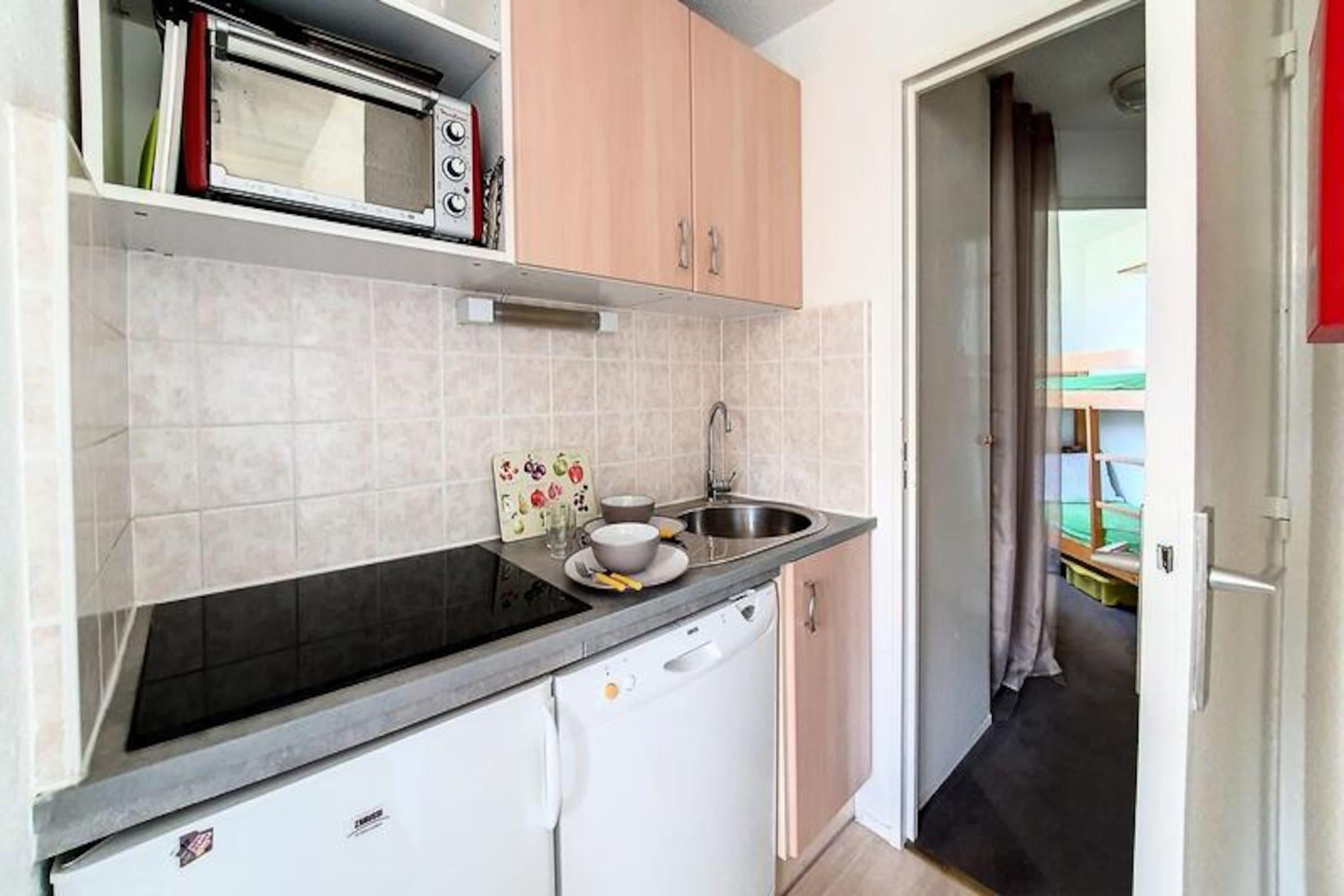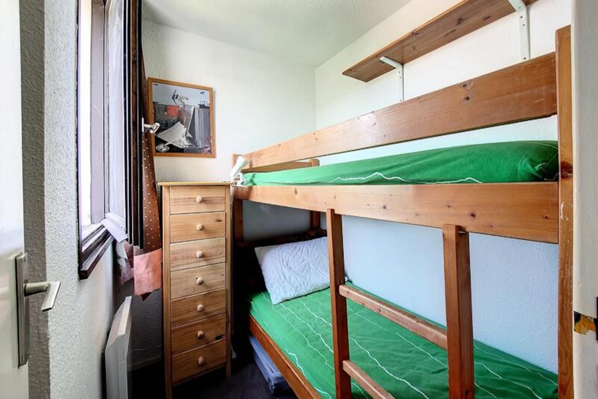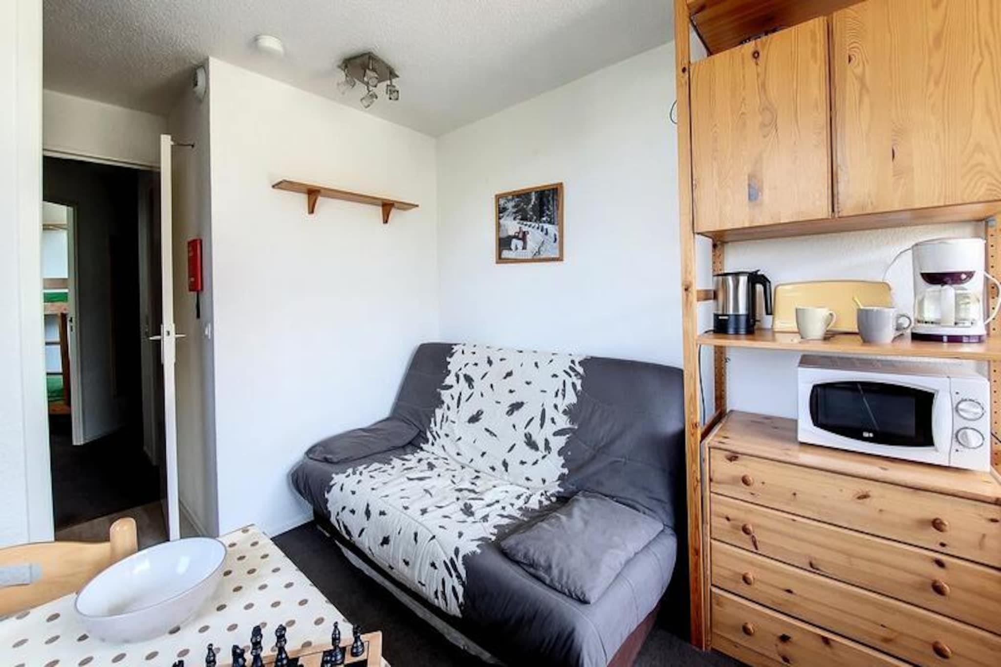 In the heart of the picturesque Reberty 1850 district, this charming studio apartment offers a cozy alpine retreat for up to four guests. With its west-facing balcony, you’ll enjoy stunning mountain views as the sun sets over the peaks, creating the perfect ambiance for a relaxing getaway. Whether you’re here to carve through the snow or simply unwind in the crisp mountain air, this residence is an inviting base for your adventures. The apartment features a well-designed layout, including a comfortable living room with a double sofa bed and a separate sleeping alcove with two single bunk beds, making it ideal for families or small groups. The fully equipped kitchen boasts modern amenities such as a refrigerator, induction hobs, an oven, a microwave, and a dishwasher, ensuring you have everything you need to prepare hearty meals after a day on the slopes. A television and DVD player add to the cozy atmosphere, while the bathroom with a bathtub provides a warm space to relax. Please note that the bunk beds are not suitable for children under six years old. Conveniently located just 250 meters from the slopes, the Médian residence ensures easy access to the ski school and nearby shops. Free parking at the foot of the building adds to the convenience, while paid Wi-Fi is available for those who need to stay connected. Whether you’re here for the thrill of skiing or the tranquility of the mountains, this apartment offers a welcoming and practical home away from home. With its prime location and thoughtful amenities, this studio is perfect for creating unforgettable alpine memories in the stunning French Alps.