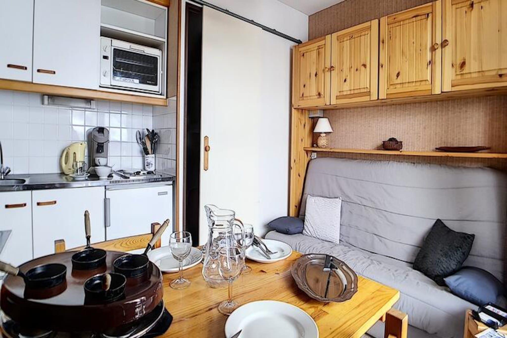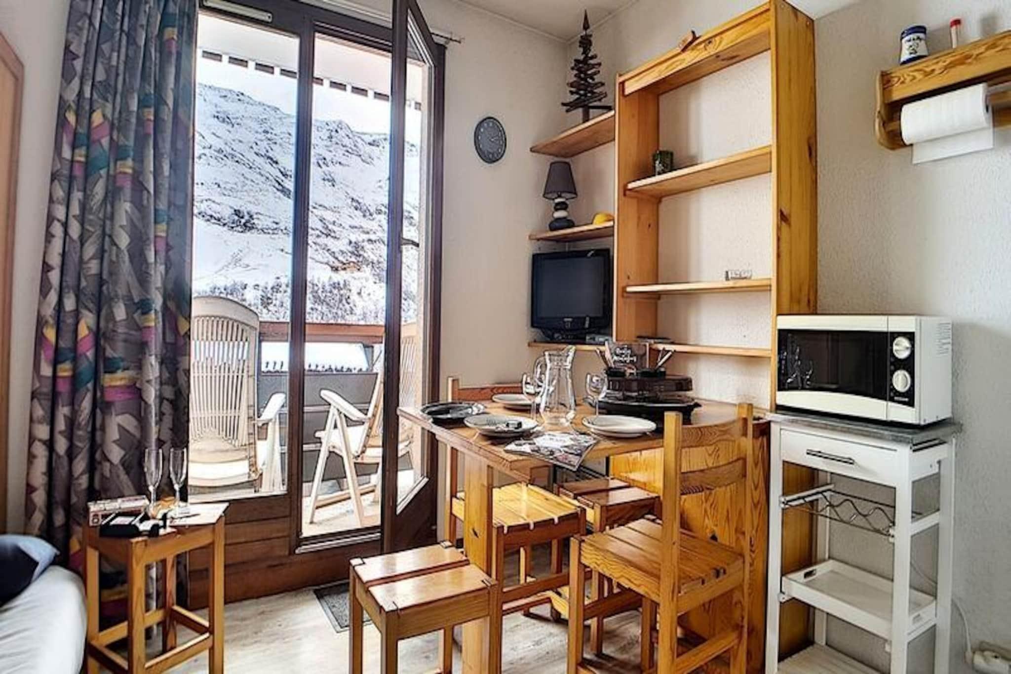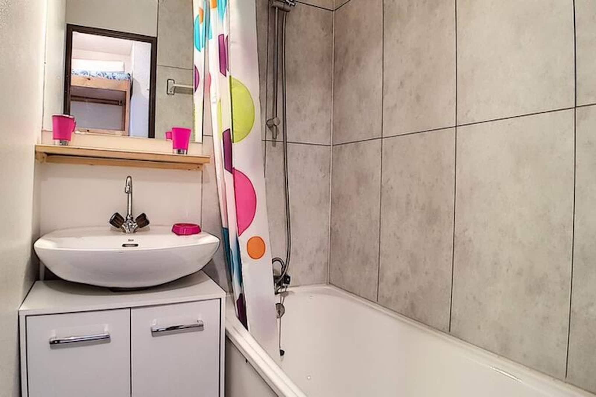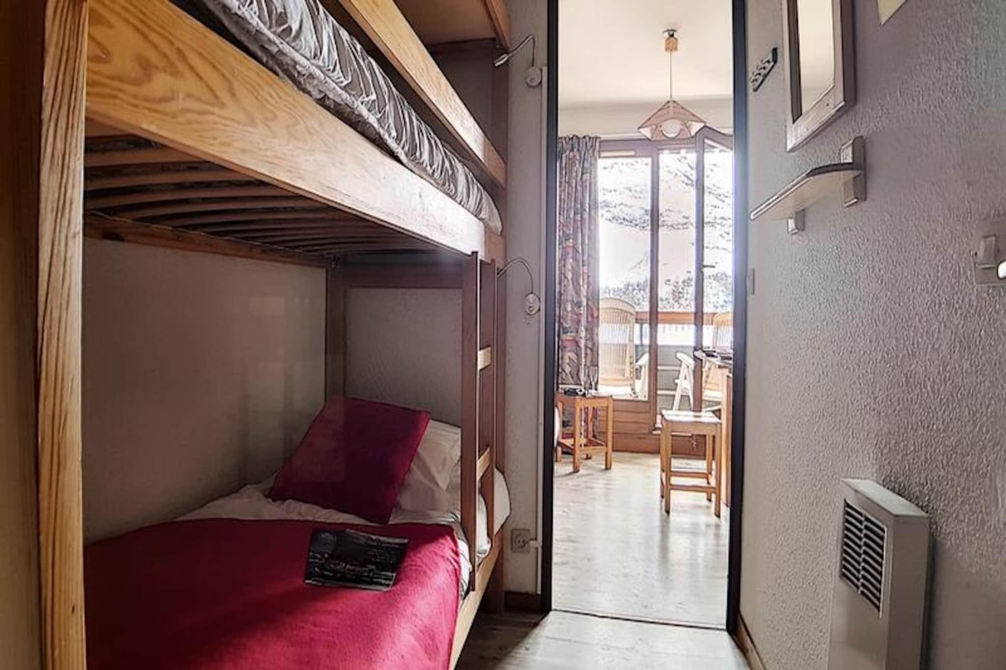 In the tranquil Fontanettes district of Les Menuires, this charming studio cabin offers a cozy retreat with breathtaking views of the Masse mountain range from its west-facing balcony. Perfect for couples or small families, the residence provides a peaceful escape while still being conveniently close to the slopes, just a 300-meter walk away. Whether you're here for winter skiing or summer hiking, the serene surroundings set the stage for unforgettable alpine moments. The studio is thoughtfully designed to maximize comfort within its 17 m² space. The living area features a double sofa bed and a television, creating a welcoming spot to relax after a day of adventure. In the entrance, you'll find two bunk beds, ideal for children or additional guests. The integrated kitchen is equipped with modern appliances including a refrigerator, oven, microwave, and a SENSEO coffee machine, ensuring you have everything needed to prepare meals with ease. The bathroom includes a bathtub and toilet, while parquet flooring throughout adds a touch of warmth to the space. The Fontanettes district is known for its quiet charm and convenient amenities. A ski rental shop, bakery, and restaurant are just steps away, while free shuttle buses connect you to the bustling La Croisette and Bruyères districts every 20 minutes. For those who prefer to walk, a scenic pedestrian path takes you to these areas in just 10-15 minutes. Whether you're seeking thrilling ski runs, peaceful mountain trails, or simply a cozy place to unwind, this studio cabin in Les Menuires offers the perfect blend of comfort, convenience, and alpine beauty. Make this your base for exploring the stunning Three Valleys region and create memories that will last a lifetime.