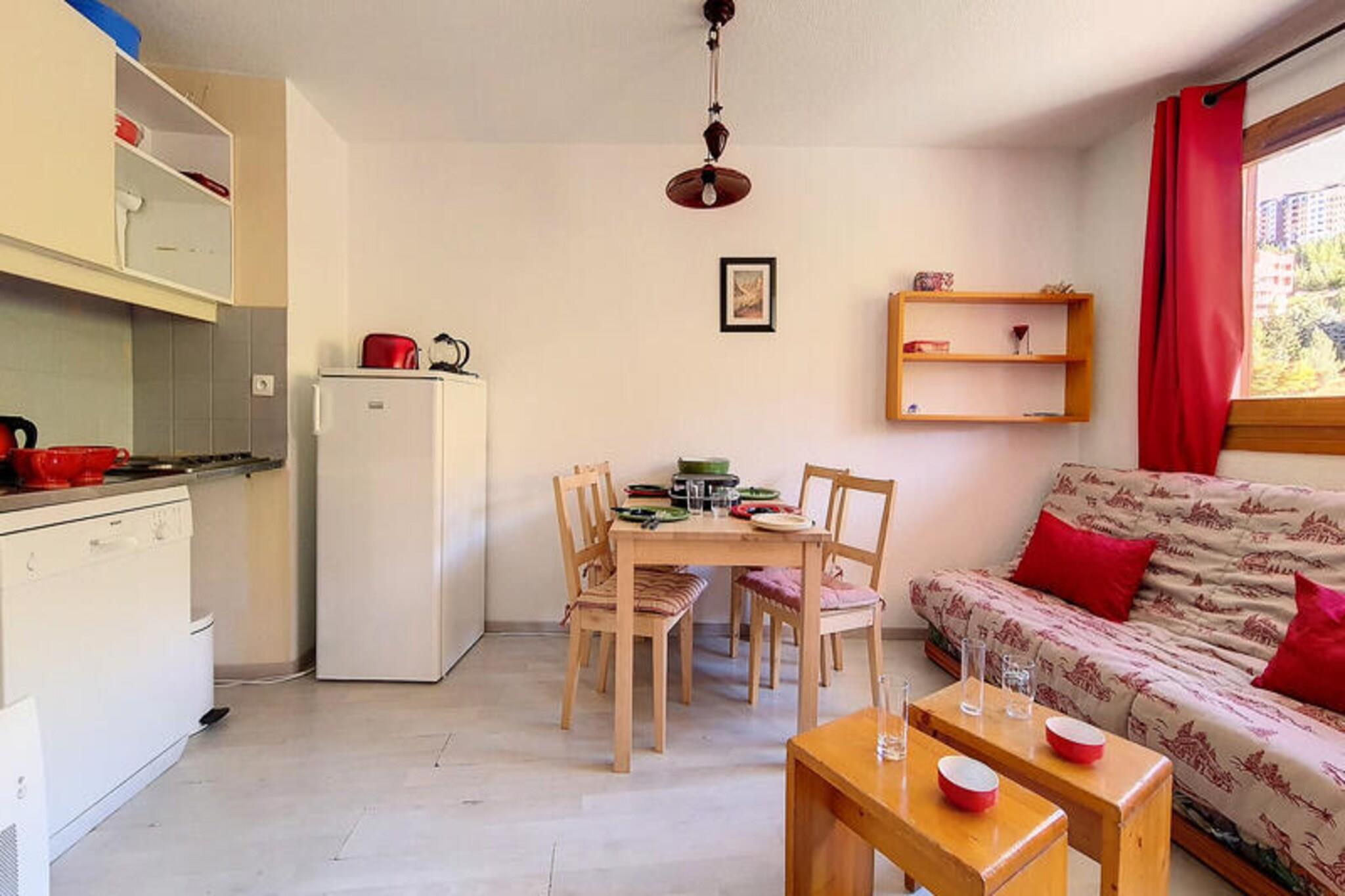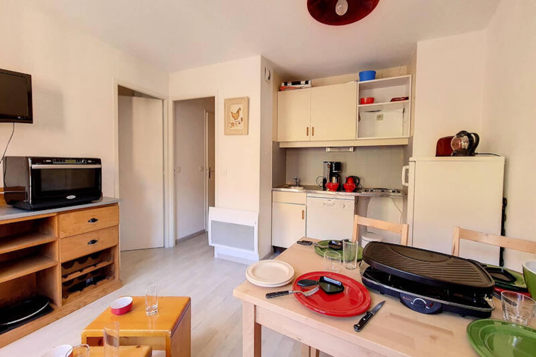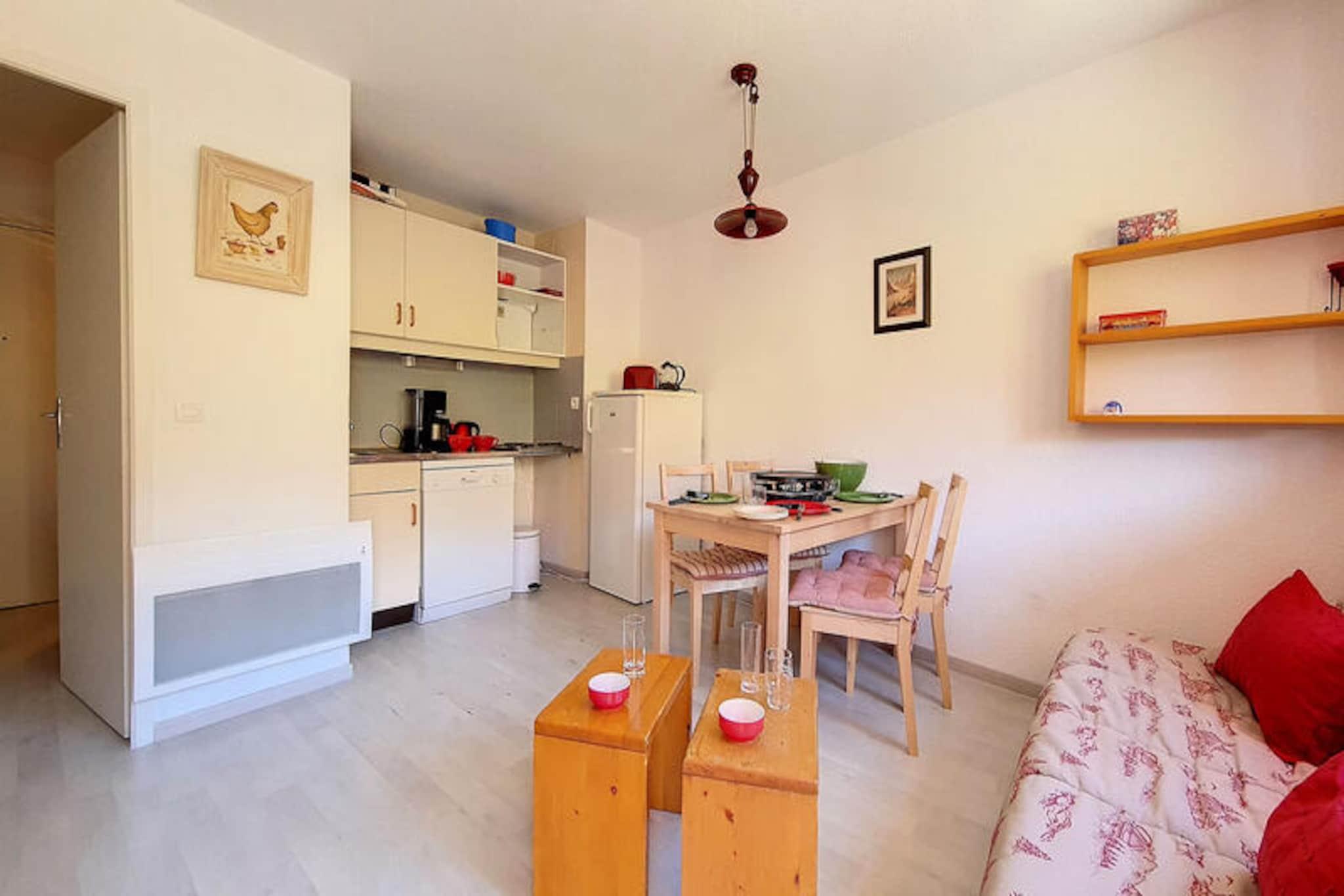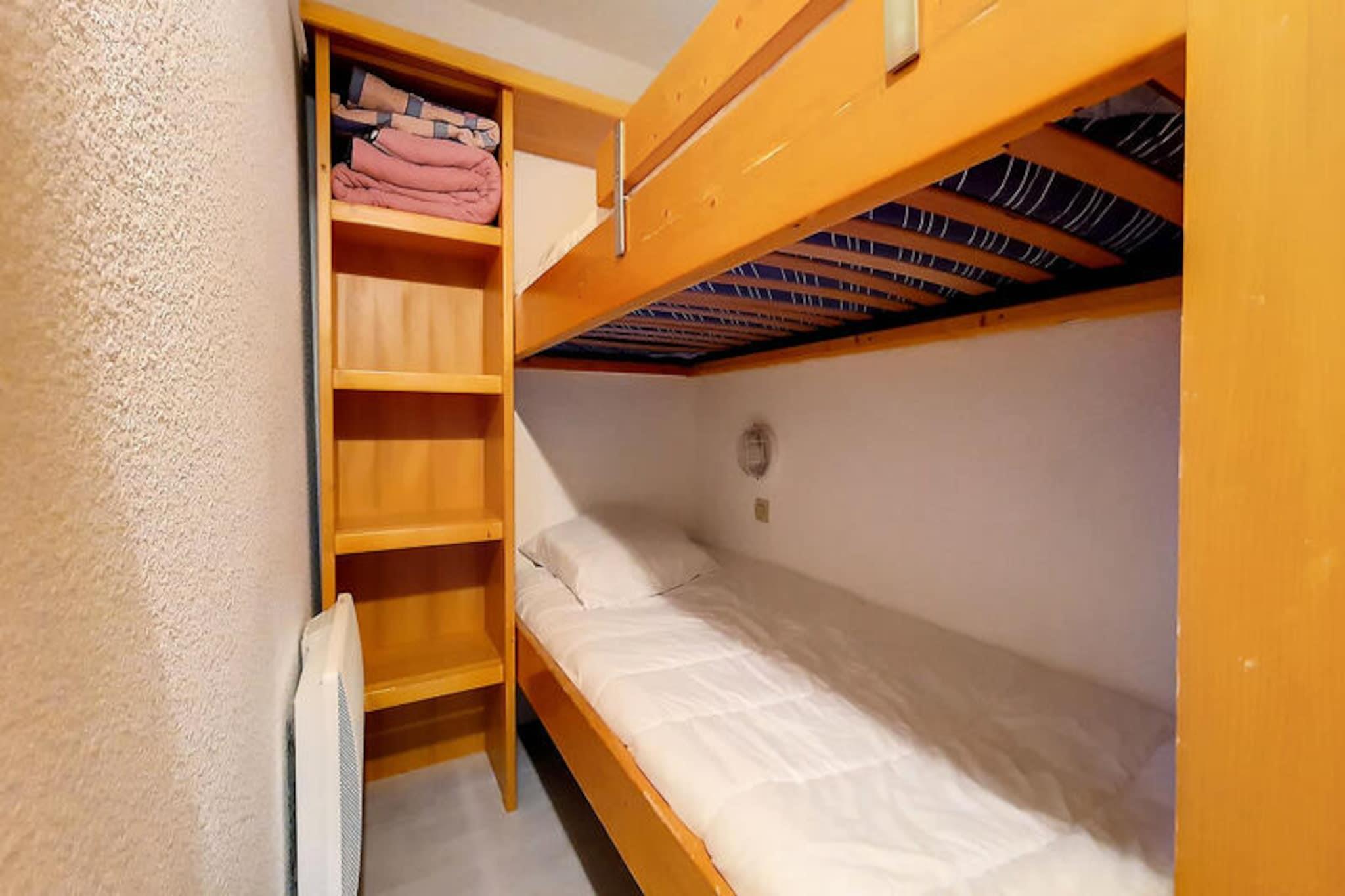 High above the charming Bruyères district, this cozy alpine retreat offers a front-row seat to the snowy wonders of Les Menuires. Imagine waking up to the crisp mountain air and stepping directly onto the slopes, thanks to its unbeatable ski-in/ski-out location. The Carlines II residence places you in the heart of a vibrant village atmosphere, where the magic of the French Alps comes alive. From your east-facing balcony on the 5th floor, soak in the morning light as it dances across the snow-capped peaks, setting the perfect tone for a day of adventure. This thoughtfully designed 2-room apartment, spanning 30 m², comfortably accommodates up to five guests. The living area is a cozy haven to unwind, complete with a television for quiet evenings. The bedroom features a double bed and a single bunk bed, while an additional alcove at the entrance provides two more bunk beds, making it ideal for families or small groups. The fully equipped kitchen includes a 3-burner cooktop, refrigerator, combination oven/microwave, dishwasher, and all the essentials to prepare hearty alpine meals. A bathroom with a bathtub and a separate toilet adds to the convenience, ensuring a comfortable stay. Please note, this is a non-smoking, pet-free apartment equipped with duvets for added warmth. Step outside, and you’ll find yourself immersed in the lively Bruyères district, home to a variety of restaurants, shops, and entertainment options. Whether it’s a relaxing visit to the wellness center, a thrilling ride down the toboggan run, or a family outing to the children’s playground, there’s something for everyone. The nearby ski school and water park make it a perfect destination for both beginners and seasoned adventurers. After a day on the slopes, enjoy a movie at the cinema or indulge in local Savoyard cuisine at one of the nearby eateries. With its prime location, modern amenities, and the allure of the Three Valleys ski area at your doorstep, this apartment is your gateway to an unforgettable alpine escape. Whether you’re here for the thrill of skiing or the charm of mountain village life, Carlines II promises a stay filled with comfort, convenience, and breathtaking views.