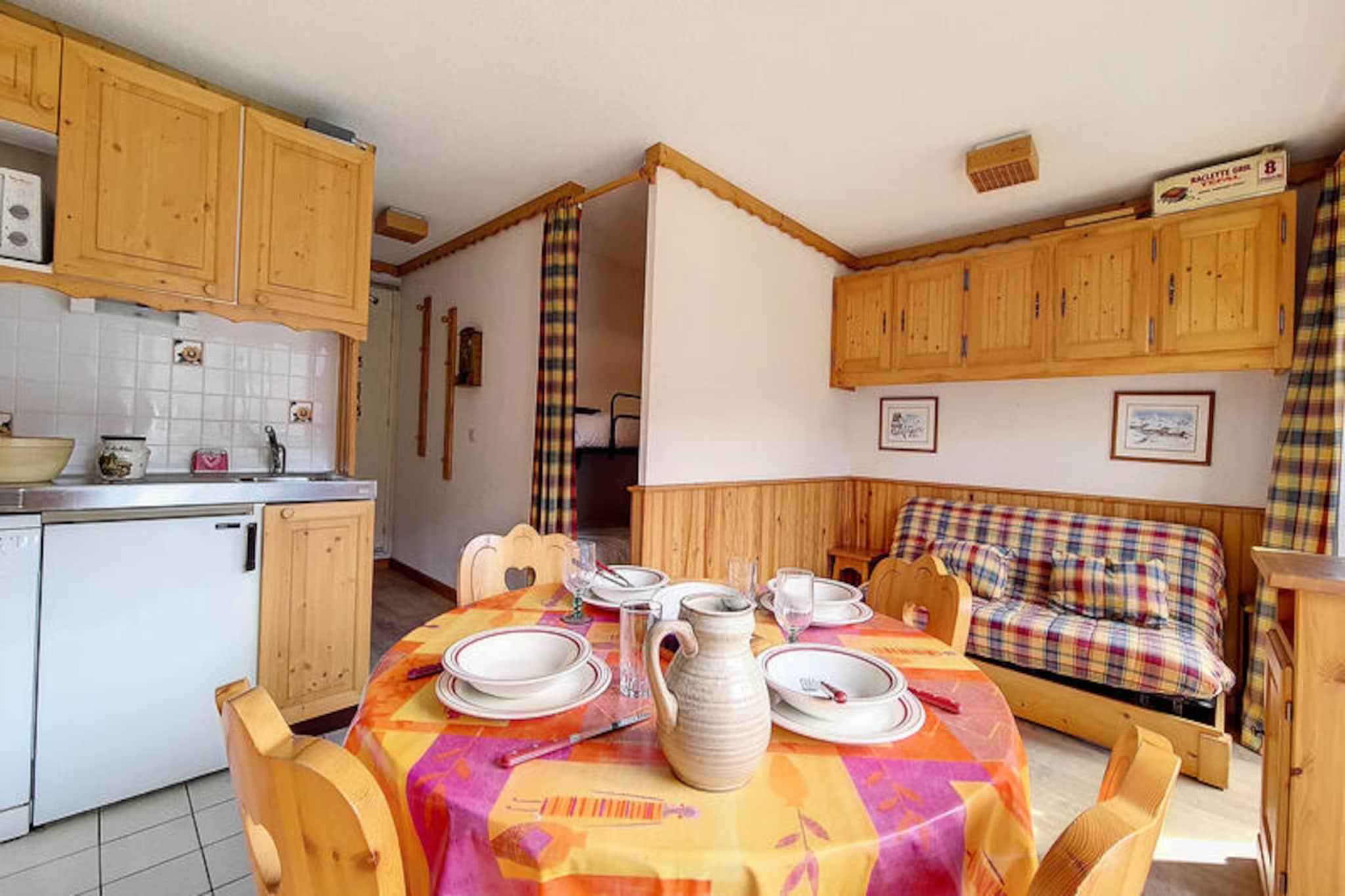 Where the pristine slopes of Les Menuires meet the charm of alpine living, this cozy studio apartment offers a perfect retreat for ski enthusiasts and nature lovers alike. Situated in the Sarvan residence in the Preyerand district, the property boasts direct ski-in/ski-out access from its west-facing balcony, allowing you to step straight onto the snow and embrace the magic of the mountains. With the free Preyerand cable car operating daily until late evening, reaching the central La Croisette area is effortless, ensuring you’re always connected to the heart of the action. \n\nInside, the 25 m² studio is thoughtfully designed to accommodate up to four guests. The living area features a comfortable sofa bed for two, while a separated sleeping alcove with bunk beds offers additional privacy. The apartment is equipped with modern amenities, including a television, a fully-equipped kitchen with a mini oven, dishwasher, coffee maker, and toaster, as well as a bathroom with a bathtub and separate toilet. Ski lockers with coded access provide convenience, and the apartment is non-smoking for a fresh and welcoming environment. \n\nBeyond the slopes, Les Menuires offers a vibrant mix of après-ski activities, dining options, and local shops, all within walking distance. Whether you’re exploring the vast Three Valleys ski domain or enjoying a peaceful evening on your balcony, the breathtaking alpine views and crisp mountain air promise an unforgettable stay. \n\nChoose this charming studio for its unbeatable location, cozy ambiance, and seamless access to one of the world’s most renowned ski destinations. Perfect for couples or small families seeking a blend of adventure and relaxation in the French Alps.