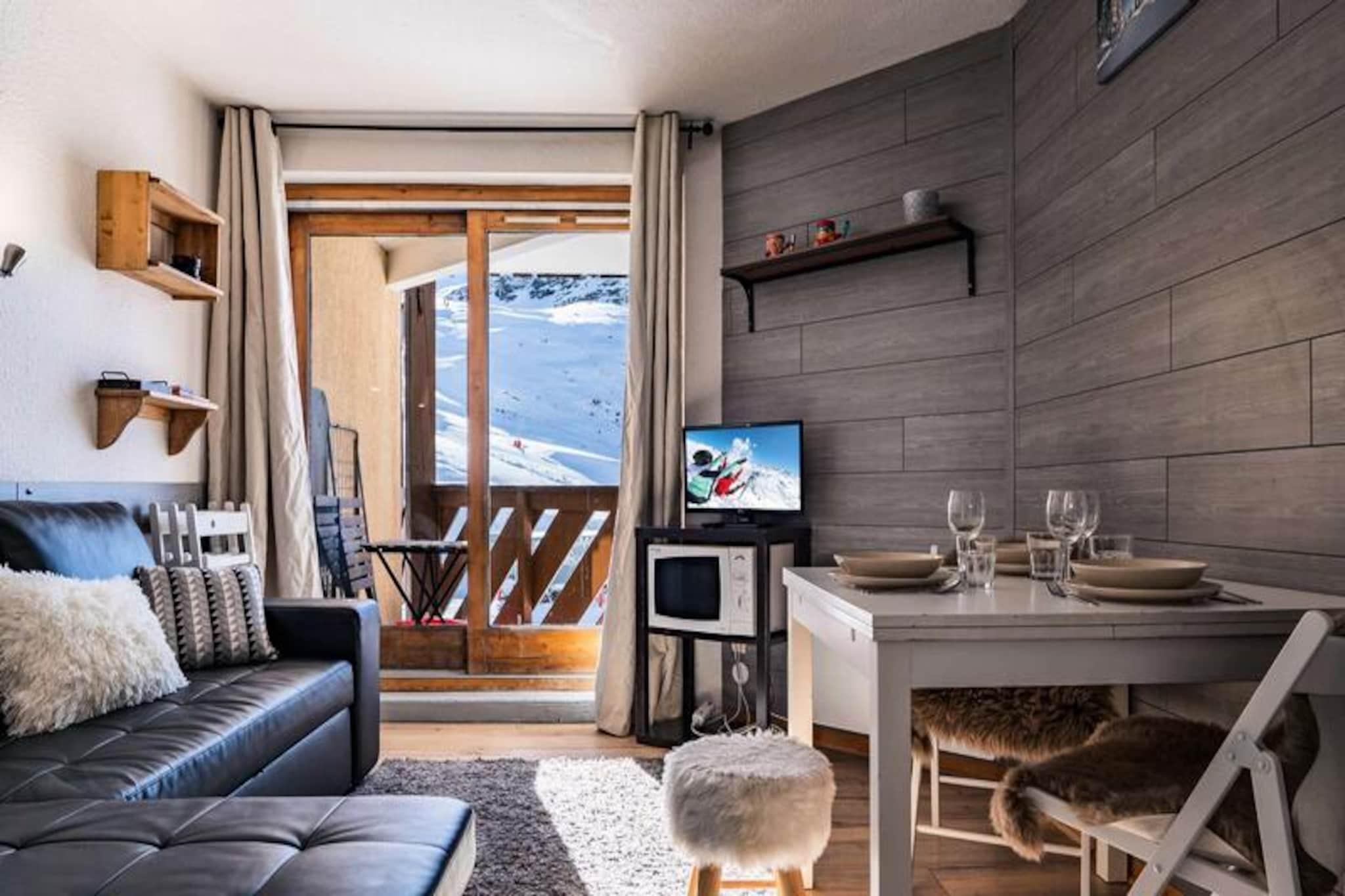 High above the bustling streets of Val Thorens, this charming 27 m² apartment offers a cozy retreat for up to five guests. From its southwest-facing balcony, you’ll be treated to stunning views of the slopes and surrounding mountains, making it the perfect spot to enjoy a morning coffee or unwind after a day of alpine adventure. Whether you’re here to ski, hike, or simply relax, this property provides an inviting base for your mountain getaway. \n\nInside, the apartment is thoughtfully designed for comfort and convenience. The living room features a double sofa bed and a TV, creating a warm space to gather with loved ones. The fully equipped kitchenette includes everything you need to prepare meals, from a ceramic hob and dishwasher to a toaster and kettle. The bedroom, with three single beds, ensures restful nights for all, while the bathroom and separate toilet add practicality to your stay. Additional amenities such as a ski locker and vacuum cleaner enhance the ease of your experience. \n\nSituated within the lively Pichu residence, you’ll find a mini-market, restaurants, and shops right at your doorstep. The residence’s prime location at the foot of the slopes means you can step outside and immediately immerse yourself in the vibrant energy of Val Thorens. Whether you’re seeking thrilling descents or après-ski indulgence, everything is within easy reach. \n\nChoose this apartment for its unbeatable location, cozy ambiance, and breathtaking views. It’s more than just a place to stay—it’s your gateway to the unforgettable charm of the French Alps.