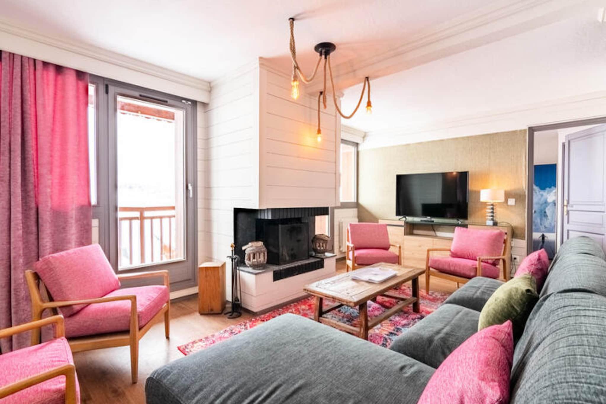 High above the world-renowned slopes of Val Thorens, Chalet Chamois offers a luxurious alpine retreat in the serene Balcons district. Here, the crisp mountain air and panoramic views of the surrounding peaks create an unforgettable setting for your next getaway. Whether you're planning a family holiday or a trip with friends, this south-facing chalet combines elegance and comfort with the charm of the French Alps. Just a 10-minute walk from the vibrant heart of the resort, you'll find yourself perfectly positioned to enjoy both tranquility and convenience. This prestigious 7-room duplex apartment spans 145 m² across the 3rd and 4th floors, comfortably accommodating up to 12 guests. The spacious living room, bathed in natural light, features a cozy fireplace and opens onto a balcony with breathtaking mountain views. Six en-suite bedrooms ensure privacy and relaxation for every guest, with highlights including a private hammam shower in the master suite and multiple balconies to soak in the alpine scenery. The apartment's warm wood-paneled interiors and thoughtful amenities, such as a private ski locker with boot dryer, create a welcoming and functional space for all. After a day on the slopes, unwind in the residence's wellness area, complete with a heated indoor pool, sauna, and hammam. The ski-in/ski-out location ensures effortless access to the world-class pistes of Val Thorens, while nearby shops and restaurants offer everything you need for a perfect stay. Whether you're here for the thrill of skiing or the serene beauty of the mountains, Chalet Chamois promises an exceptional alpine experience.