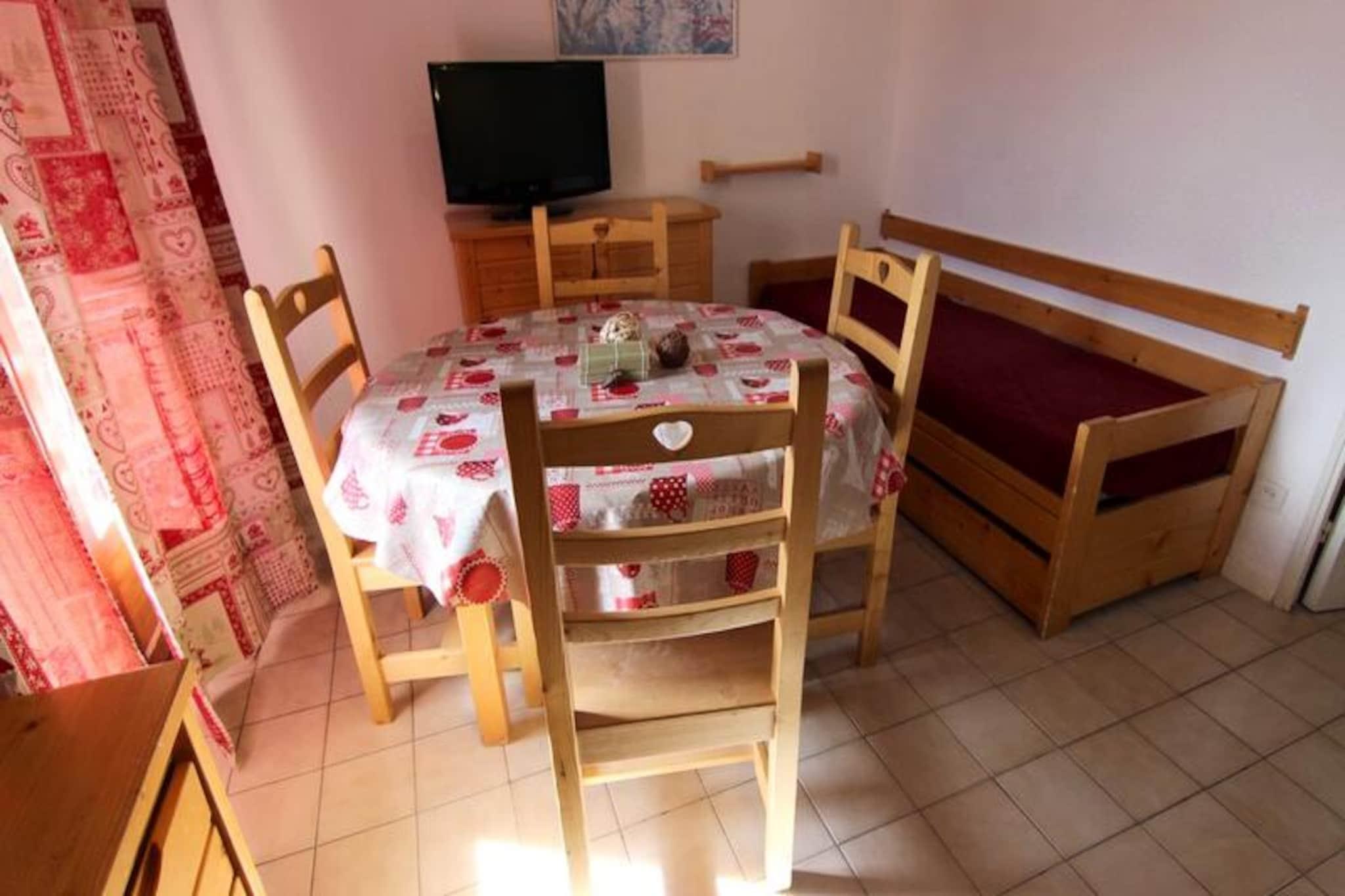 Imagine waking up to the crisp alpine air and breathtaking mountain views in the serene Arolles district of Val Thorens. This charming 2-room cabin apartment, nestled within the sought-after La Reine Blanche residence, offers a tranquil retreat at the entrance of the resort. Its exceptional south-facing exposure ensures sunlight floods the space throughout the day, creating a warm and inviting atmosphere for your alpine escape. Perfectly suited for families, the residence is a peaceful haven just steps away from the vibrant heart of the resort. The apartment, located on the first floor with elevator access, comfortably accommodates up to four guests. The living room features a cozy pull-out sofa, a dining area, and a television for relaxing evenings after a day on the slopes. The kitchenette is fully equipped with modern appliances, including an oven, microwave, electric stovetop, refrigerator, dishwasher, and extractor hood, making it easy to prepare hearty meals. The bedroom boasts a comfortable double bed, while the cabin area offers snug bunk beds, ideal for children or additional guests. A bathroom with a bathtub and a separate toilet complete the layout, ensuring convenience and comfort for all. Step outside, and you’re just 200 meters from the Caron shopping center, where you’ll find local shops, restaurants, and the Val Thorens sports center with its swimming pool and wellness area. Ski enthusiasts will appreciate the direct access to the slopes and the nearby SKISET/GOITSCHEL SPORT GS4 ski rental shop, making it effortless to gear up for a day of adventure. Whether you’re here to carve through pristine snow or explore the lively resort atmosphere, this apartment places you at the heart of it all. With its unbeatable location, family-friendly ambiance, and all the comforts of home, this apartment in La Reine Blanche is the perfect choice for your next mountain getaway. Create unforgettable memories in the world-renowned Val Thorens, where the beauty of the Alps and the thrill of the slopes await.
