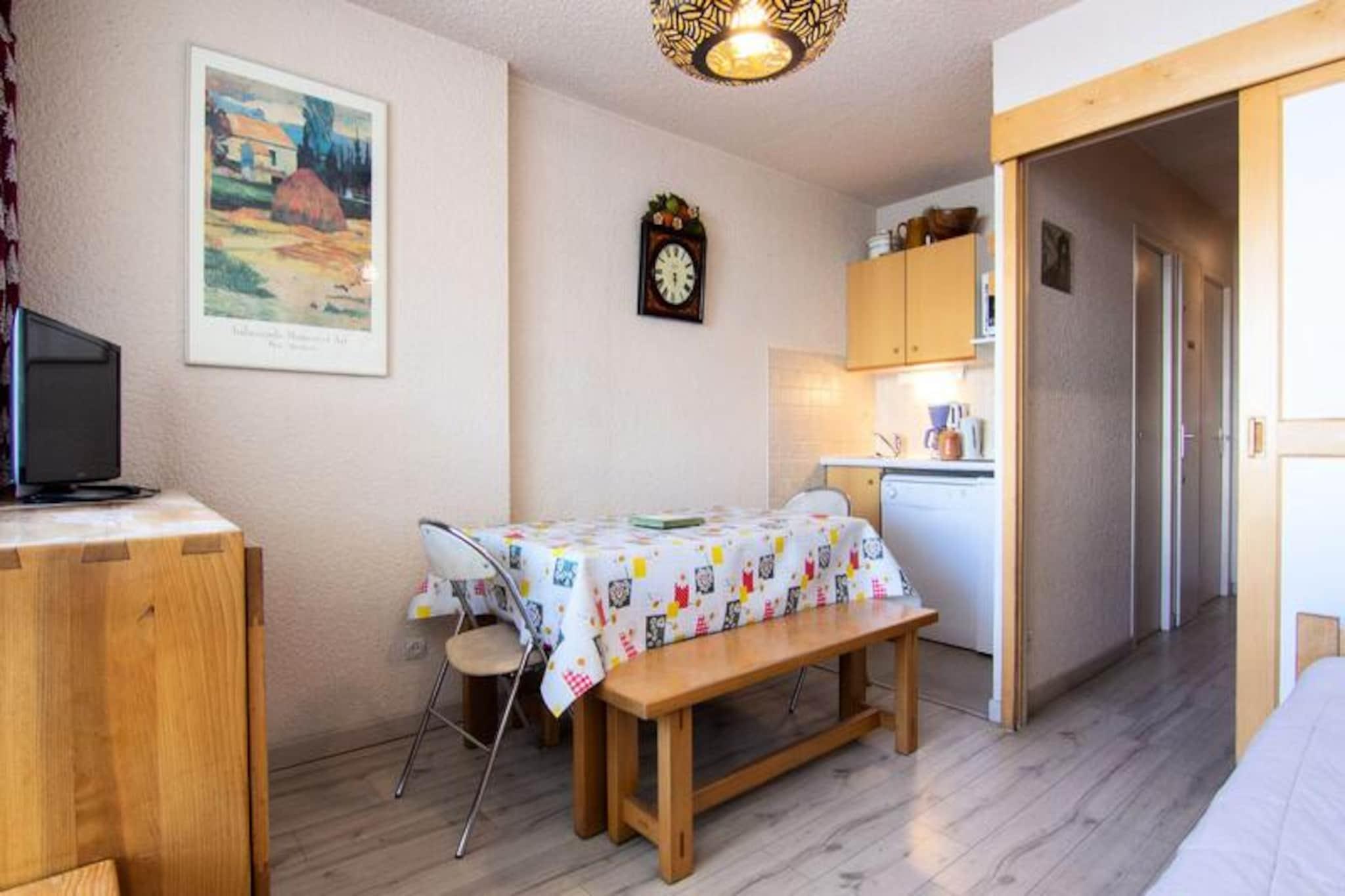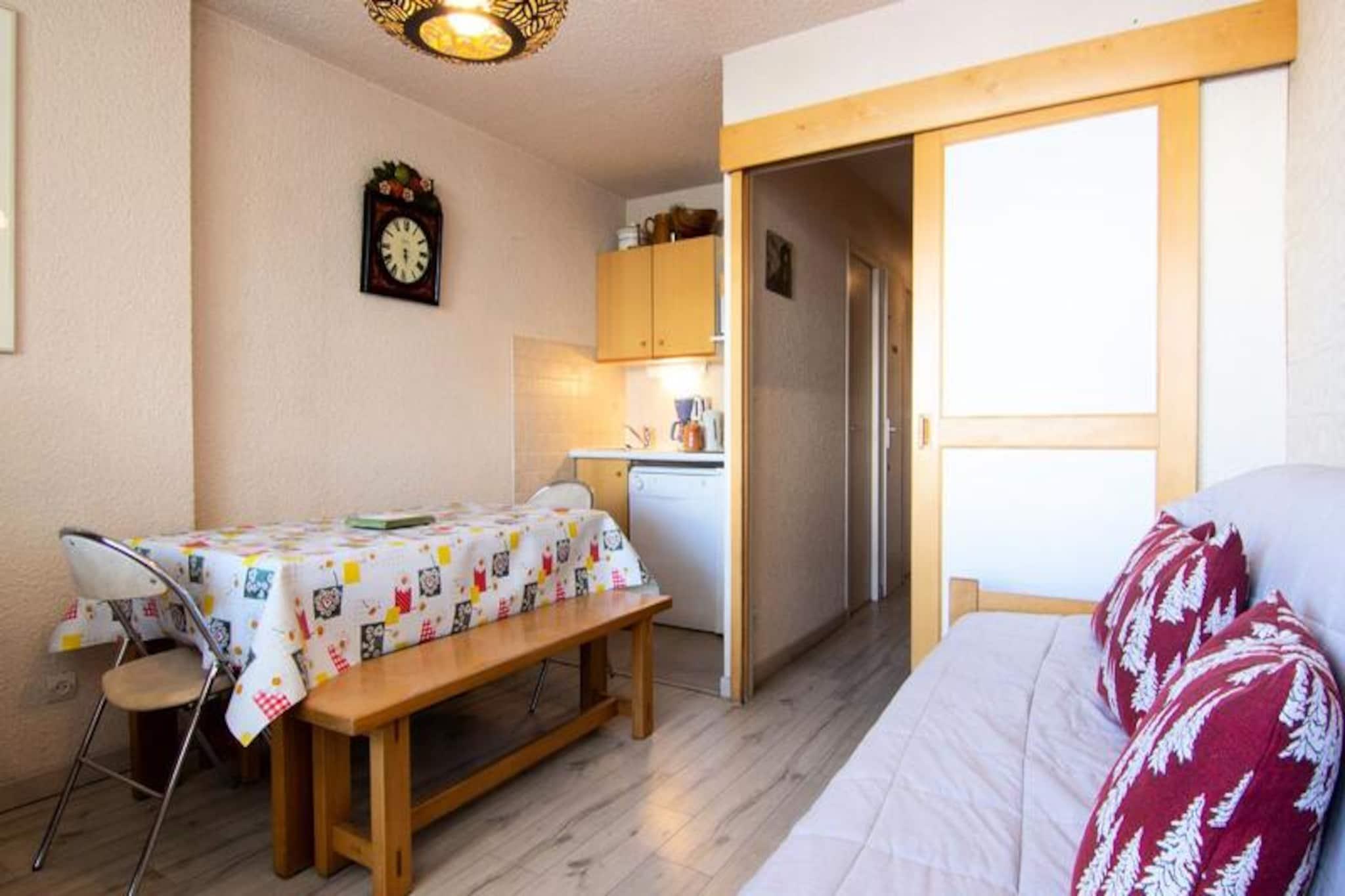 Amidst the vibrant Caron district, the Le Lac du Lou residence offers a cozy alpine retreat perfect for families and small groups. With its prime location in the heart of the resort, you’ll find yourself steps away from a variety of amenities, including a bowling alley, shops, restaurants, and essential services such as the tourist office, post office, bank, and the renowned ESF ski school. Whether you’re here for winter thrills or summer relaxation, this property places you at the center of it all. This charming 2-room apartment spans 35m² and comfortably accommodates up to six guests. Located on the third level of the residence, it features a south-facing balcony that invites you to soak in the mountain sunshine and stunning views. Inside, the kitchenette is equipped with modern conveniences like an oven, refrigerator, ceramic hob, and dishwasher, making meal preparation a breeze. The living room provides a cozy space to unwind, complete with a TV and a pull-out sofa that transforms into two single beds. The bedroom offers a comfortable double bed, while a separate nook with bunk beds is perfect for children or additional guests. A bathroom with a bathtub and a separate toilet add to the apartment’s practicality and comfort. Ski enthusiasts will appreciate the direct access to the slopes via the ski lockers, ensuring a seamless start to your alpine adventures. After a day on the pistes, explore the lively Caron district, where après-ski options abound. In the warmer months, the area transforms into a haven for hikers and nature lovers, with trails that wind through breathtaking alpine landscapes. With its unbeatable location and thoughtful amenities, Le Lac du Lou is your gateway to an unforgettable mountain escape.