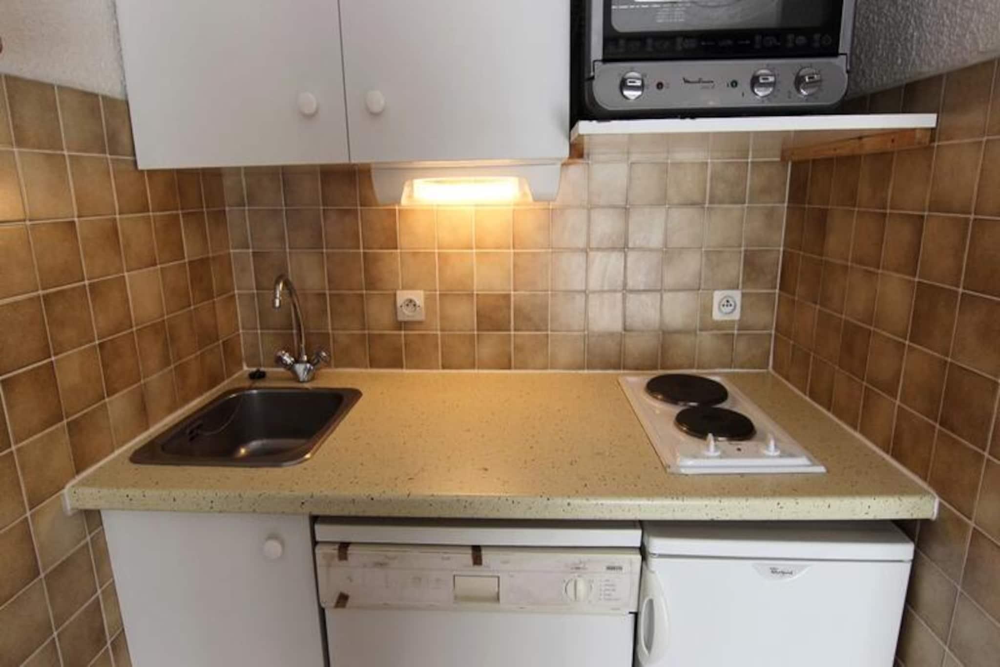 In the vibrant Caron district of Val Thorens, this charming studio invites you to experience the magic of the French Alps. With its south-facing balcony, you can soak in the breathtaking mountain views while enjoying the crisp alpine air. Perfectly situated in the heart of the resort, this cozy retreat is ideal for couples or small families seeking both adventure and relaxation. \n\nThe 24 m² studio is thoughtfully designed to accommodate up to four guests. The kitchenette is fully equipped with a microwave, oven, stovetop, refrigerator, and dishwasher, making it easy to prepare meals after a day on the slopes. The living area features a comfortable pull-out sofa bed and a TV for cozy evenings in, while the separate sleeping area with bunk beds offers privacy and convenience. The modern bathroom includes a shower, sink, and heated towel rail, with a separate toilet for added comfort. \n\nStep outside and find yourself just 50 meters from the Skiset store and moments away from direct slope access via the ski lockers. The residence is surrounded by a variety of amenities, including a bowling alley, shops, restaurants, and essential resort services like the tourist office, post office, and ski school. Whether you're a seasoned skier or a first-time visitor, you'll find everything you need right at your doorstep. \n\nChoose this delightful studio for its unbeatable location, practical amenities, and the promise of unforgettable alpine adventures. From skiing to après-ski, Val Thorens offers a vibrant atmosphere and stunning natural beauty, ensuring a holiday to remember.
