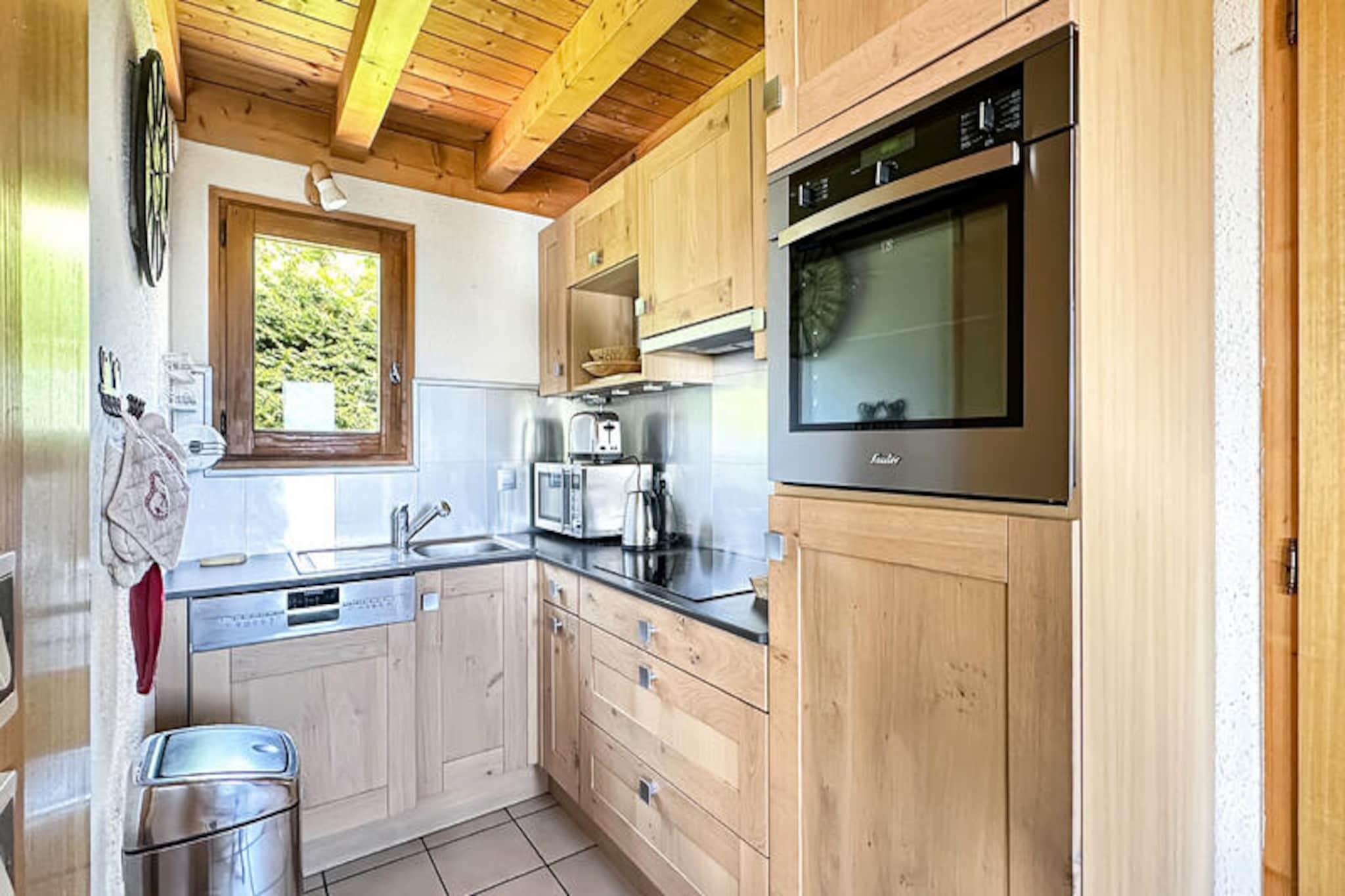 Surrounded by the serene beauty of the French Alps, this charming detached chalet in the Domaine du Clos area offers a warm and inviting retreat for your mountain getaway. Just 750 meters from the Kédeuse cable car and 1 kilometer from the village center, it combines convenience with tranquility, making it the perfect base for exploring the region’s natural wonders and ski slopes. The chalet’s rustic yet elegant decor creates a cozy atmosphere, ideal for unwinding after a day of alpine adventures. Spanning 80 square meters, the chalet comfortably accommodates up to six guests across its three thoughtfully designed bedrooms. The ground floor features a bedroom with bunk beds, while upstairs, you’ll find a room with two single beds and a master bedroom with a luxurious queen-size bed. The living and dining area, complete with a wood-burning stove, invites you to relax in front of its warm glow. Two large glass doors flood the space with natural light and offer breathtaking views of the surrounding mountains. The fully equipped kitchen, with modern appliances including a ceramic hob, oven, microwave, and dishwasher, ensures you have everything you need to prepare delicious meals. The chalet also boasts practical amenities such as a ski rack and two private parking spaces, making it an excellent choice for winter sports enthusiasts. Its location provides easy access to the Kédeuse cable car for skiing and snowboarding, while the nearby village offers charming shops, restaurants, and après-ski activities. In summer, the area transforms into a haven for hikers and nature lovers, with trails that lead to stunning alpine vistas. Whether you’re seeking adventure on the slopes or peaceful moments surrounded by nature, this chalet promises an unforgettable stay in the heart of the Alps. With its blend of comfort, style, and prime location, it’s the perfect choice for families or friends looking to create lasting memories together.