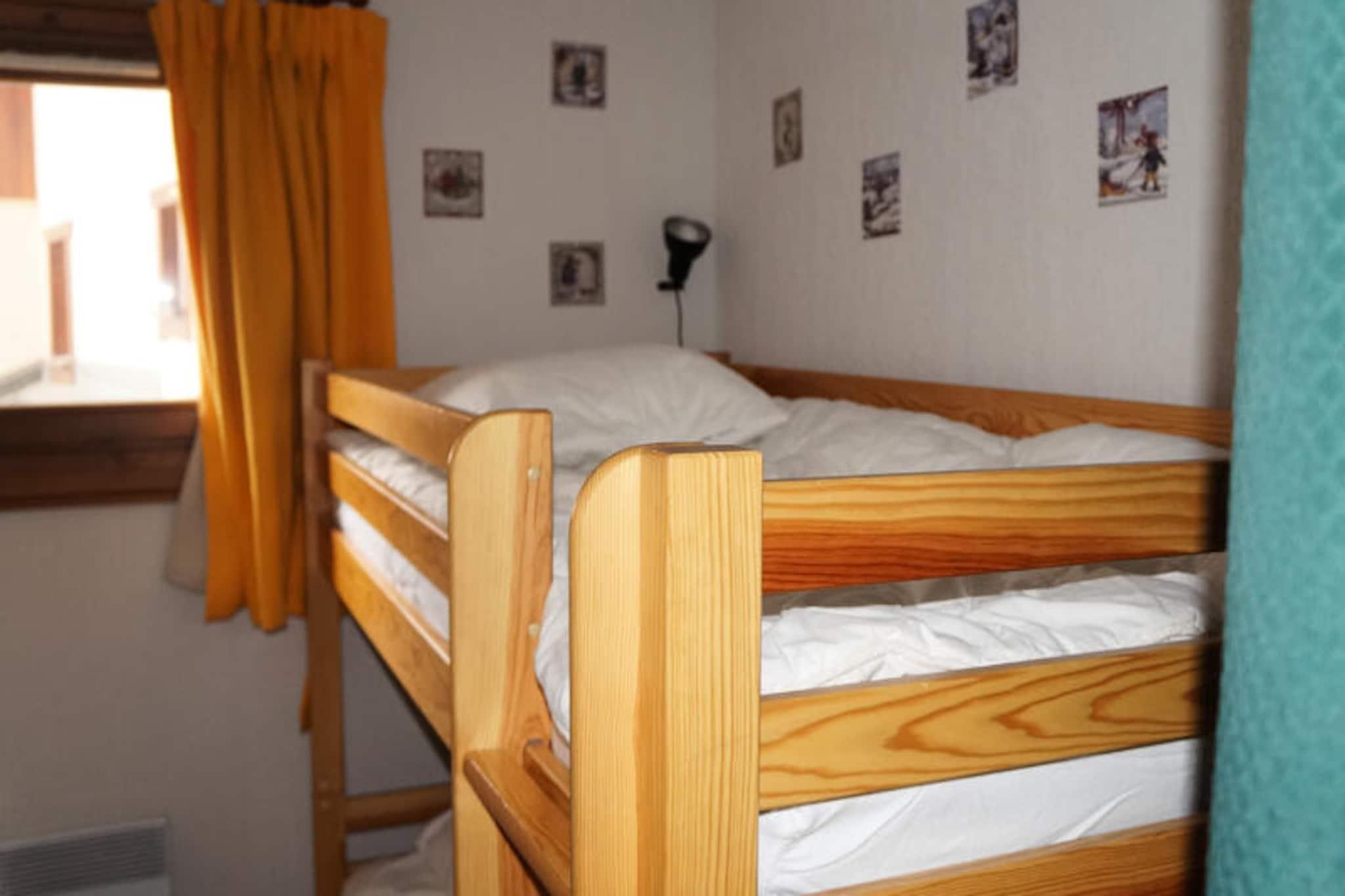 Apartment on the 1st floor with elevator in the "Sabaudia B" residence in the village center, with a living area of ??39.80 m². This apartment comprises 3 sleeping areas, accommodating 5/6 people: a bedroom (1 double bed), a sleeping alcove (2 bunk beds), and a living room (1 sofa bed). West-facing balcony with a beautiful view of the Aravis mountain range. This apartment offers easy access to the various activities in the village center, including the ice rink next to the building, while also providing a quiet location close to the shuttle bus stop. Important note: this apartment includes a covered parking space in the building's underground garage. Sleeps: 5/6 people Bedroom 1: 1 double bed (140cm) Alcove (with curtain): 2 bunk beds Living room (TV): 1 sofa bed Kitchenette: Brandt multifunction oven, microwave, dishwasher, 4-burner ceramic hob, extractor hood, breakfast bar Bathroom, separate WC Ski locker #6/B - Left, then straight ahead Underground parking space #6/B (Level -2 / Left, then 3rd space on the right after the door) Additional services payable on site: Security deposit (refundable) 225.00 euros per reservation