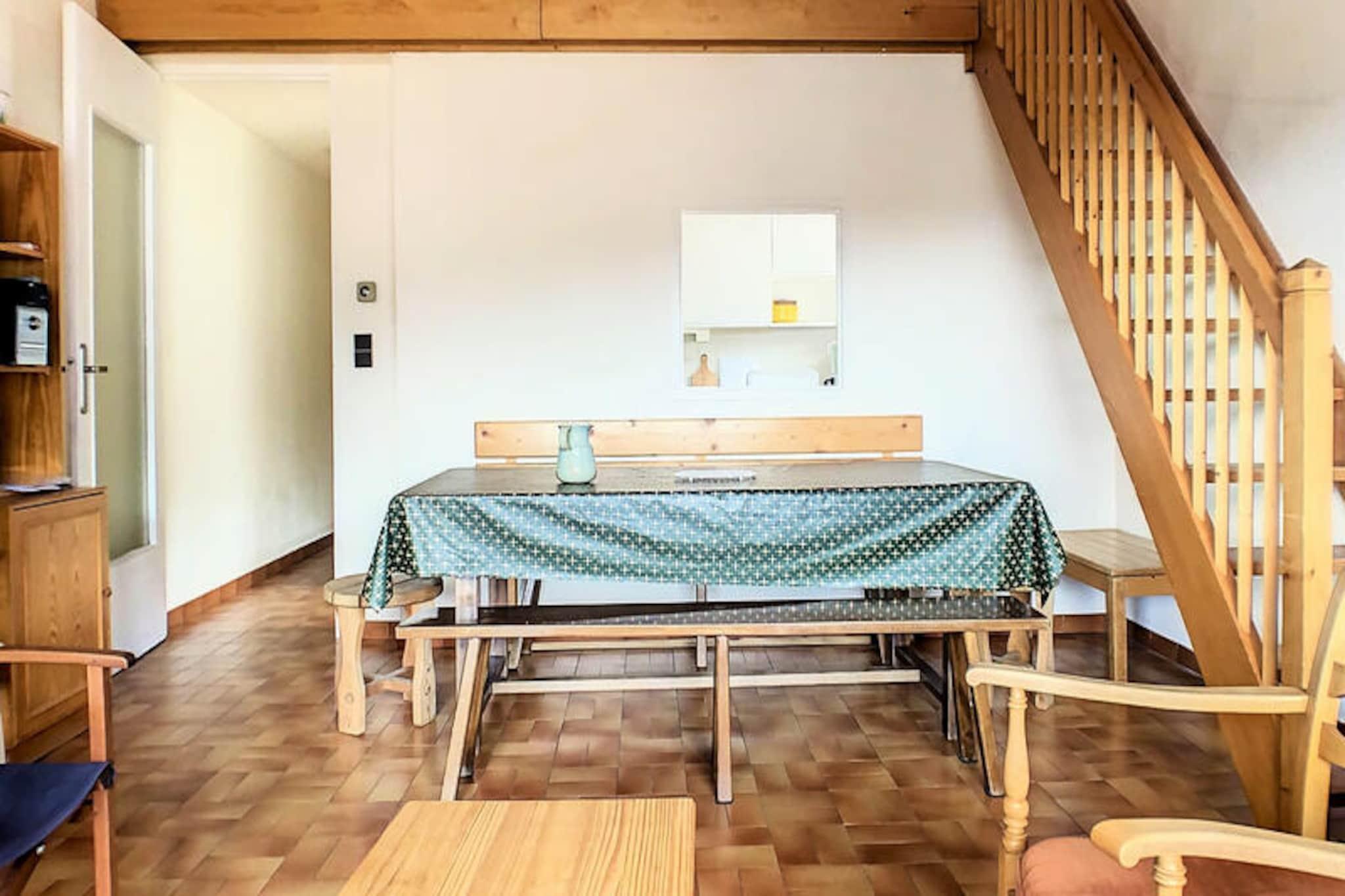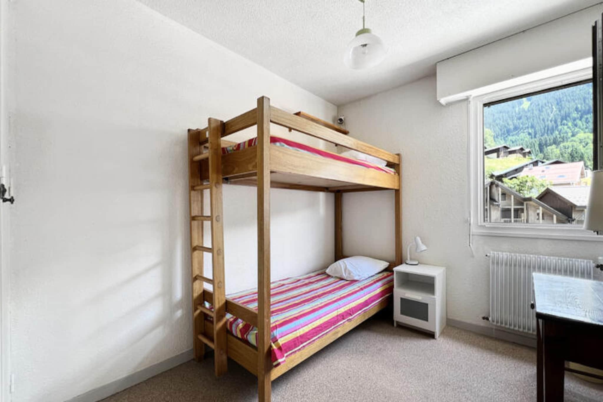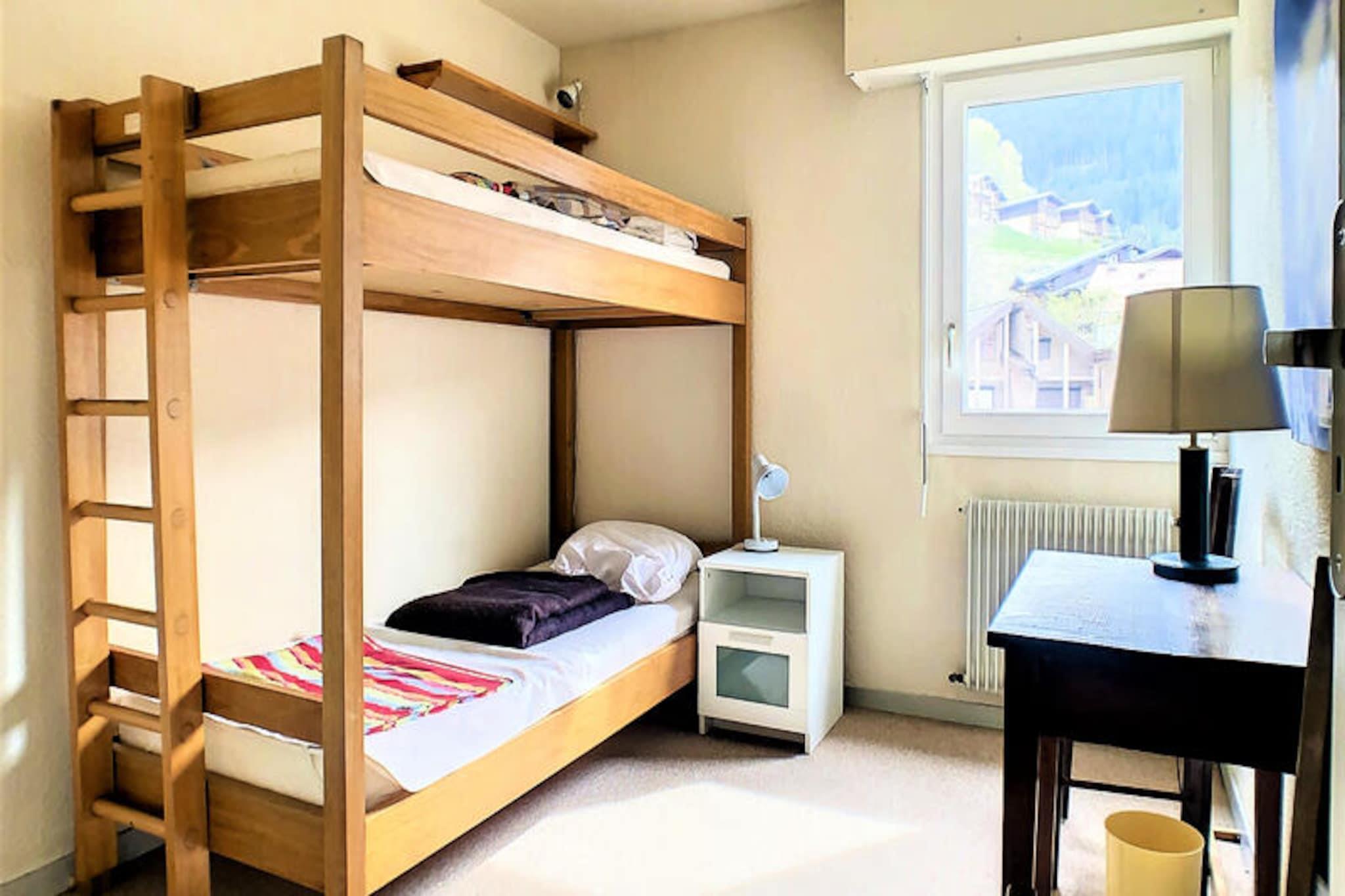 Beautiful duplex apartment located in the "Le Solaret" residence in the village center. On the 4th floor of the residence with elevator, this 68 m² apartment offers five separate sleeping areas to accommodate 8 people. It includes three separate bedrooms (bedrooms 1 and 2: bunk beds, bedroom 3: a double bed), a mezzanine (one single bed), a living room (one single sofa bed), a kitchenette, a bathroom, a separate toilet, and a shower room upstairs. The south-facing balcony offers a lovely view of the village and the Timalets ski slope. Ideally located, you have access to all the village's activities: shops, restaurants, cinema, etc. Access to the slopes is via a free ski bus, with the stop less than 100 meters from the residence. Sleeps: 8 people Bedrooms 1-2: 2 bunk beds in each room Bedroom 3 (upstairs): 1 double bed (140 cm) Mezzanine: 1 single bed (80 cm) Living room (TV): 1 single sofa bed Kitchenette (gas stove, oven, dishwasher, refrigerator, microwave) Bathroom - Separate WC Ski locker: Opposite entrance door #15 Additional services payable on site: Security deposit (refundable) EURO225.00 per booking
