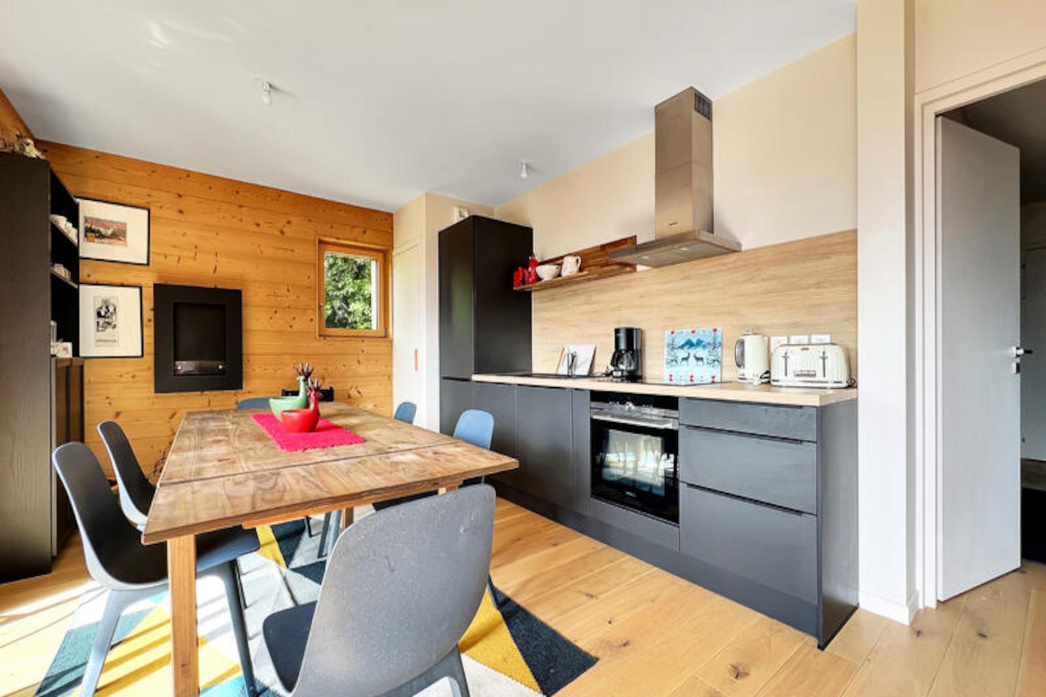 High above the shimmering valley, where alpine serenity meets modern luxury, this exquisite apartment in Le Grand Cerf residence offers an unparalleled mountain retreat. With direct access to the Timalets ski slope and gondola lift, your adventure begins just outside the door. Wake up to breathtaking views from the expansive balcony, where the crisp mountain air and stunning vistas set the tone for an unforgettable day in the French Alps. This is a place where comfort and elegance blend seamlessly with the thrill of outdoor exploration. \n\nInside, the 75 m² apartment is tastefully designed to accommodate up to six guests. The master bedroom features a plush 160cm bed and a private en-suite bathroom, ensuring a tranquil retreat after a day on the slopes. A second bedroom with two 90cm beds and a cozy cabin with bunk beds share a modern shower room and separate WC. The spacious living and dining area, bathed in natural light, invites you to relax and unwind, while the fully equipped kitchen—with induction hob, dishwasher, washer-dryer, and large refrigerator—makes meal preparation effortless. Two ski lockers and underground parking spaces add to the convenience of this high-end rental. \n\nThe location is unbeatable. Whether you’re here for winter skiing or summer hiking, the gondola lift provides easy access to the surrounding wonders. Nearby, you’ll find charming alpine villages, local markets, and trails that wind through breathtaking landscapes. For those seeking relaxation, the residence itself offers a peaceful haven with all the comforts of home. \n\nChoose this exceptional property for a holiday that combines the best of alpine adventure and refined living. With beds made upon arrival and bath towels provided, every detail has been thoughtfully prepared to ensure your stay is as effortless as it is memorable.