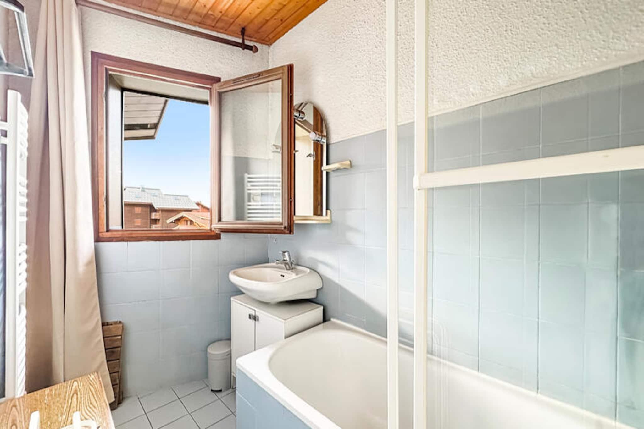 In the heart of the charming village center, this delightful duplex apartment offers a warm and inviting retreat for families and groups seeking an authentic alpine getaway. With its west-facing balcony, you can bask in the afternoon sun while enjoying picturesque views of the surrounding mountain scenery. The apartment is perfectly situated to provide easy access to the village’s vibrant amenities, including shops, restaurants, and a convenient ski bus stop just 100 meters away, ensuring seamless connections to the slopes and winter adventures. \n\nSpanning 67 m², this thoughtfully designed apartment accommodates up to eight guests across four separate sleeping areas. Upstairs, you’ll find three cozy bedrooms, including one with a double bed, another with two single beds, and a third with bunk beds, ideal for children. The living room features two pull-out beds, making it a flexible space for larger groups. A fully equipped kitchen invites you to prepare hearty meals after a day in the snow, while the bathroom with a separate toilet adds to the convenience. The property also includes a covered parking space directly under the building, ensuring hassle-free arrivals and departures. \n\nBeyond the apartment, the village center offers a lively atmosphere with everything you need within walking distance. Whether you’re exploring local shops, sampling regional cuisine at nearby restaurants, or hopping on the ski bus to access the slopes, the location is unbeatable for both relaxation and adventure. In summer, the area transforms into a haven for hikers and cyclists, with trails leading to breathtaking alpine vistas. \n\nThis duplex apartment combines comfort, practicality, and an unbeatable location, making it the perfect base for creating unforgettable memories in the French Alps, no matter the season.