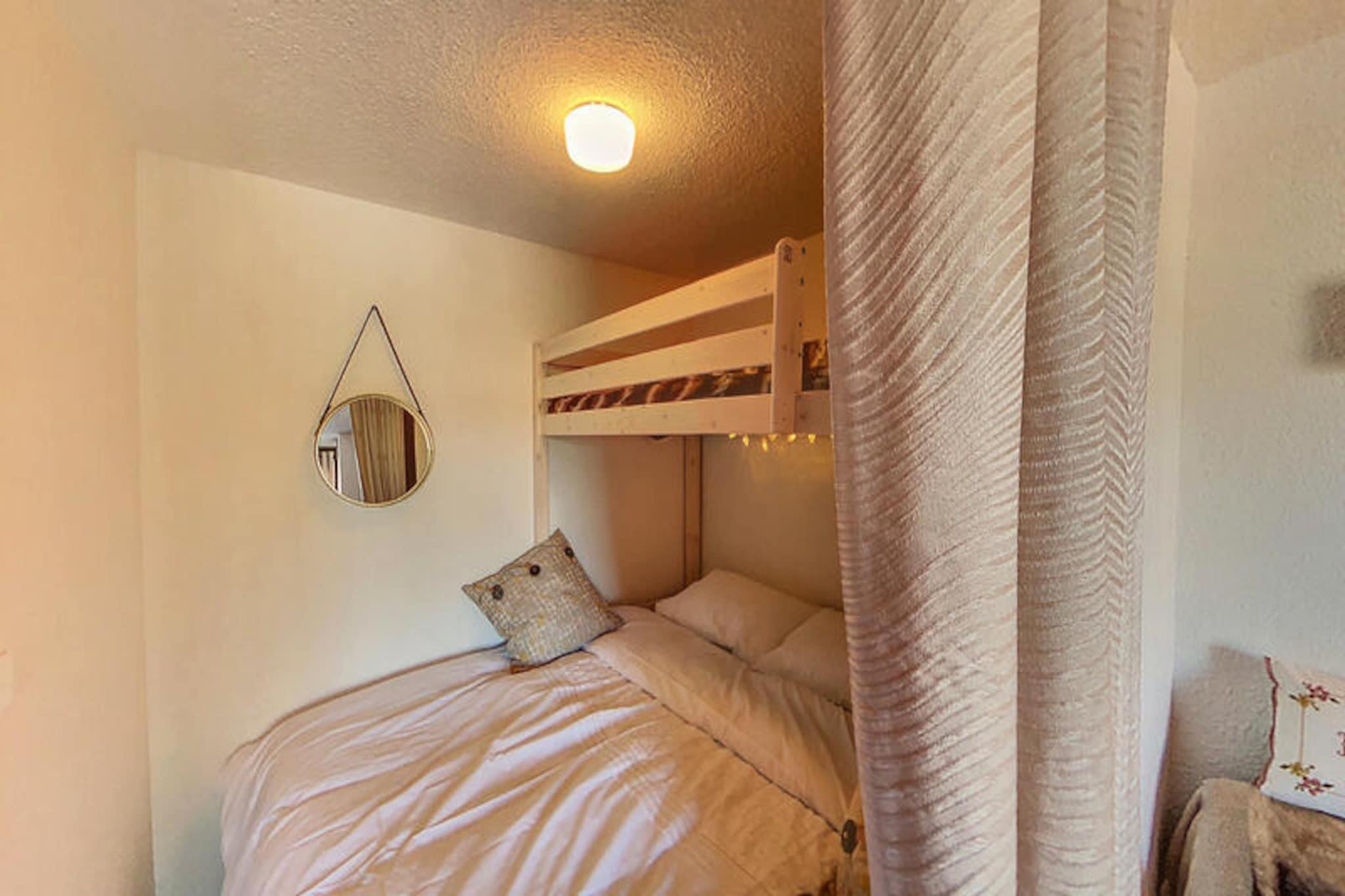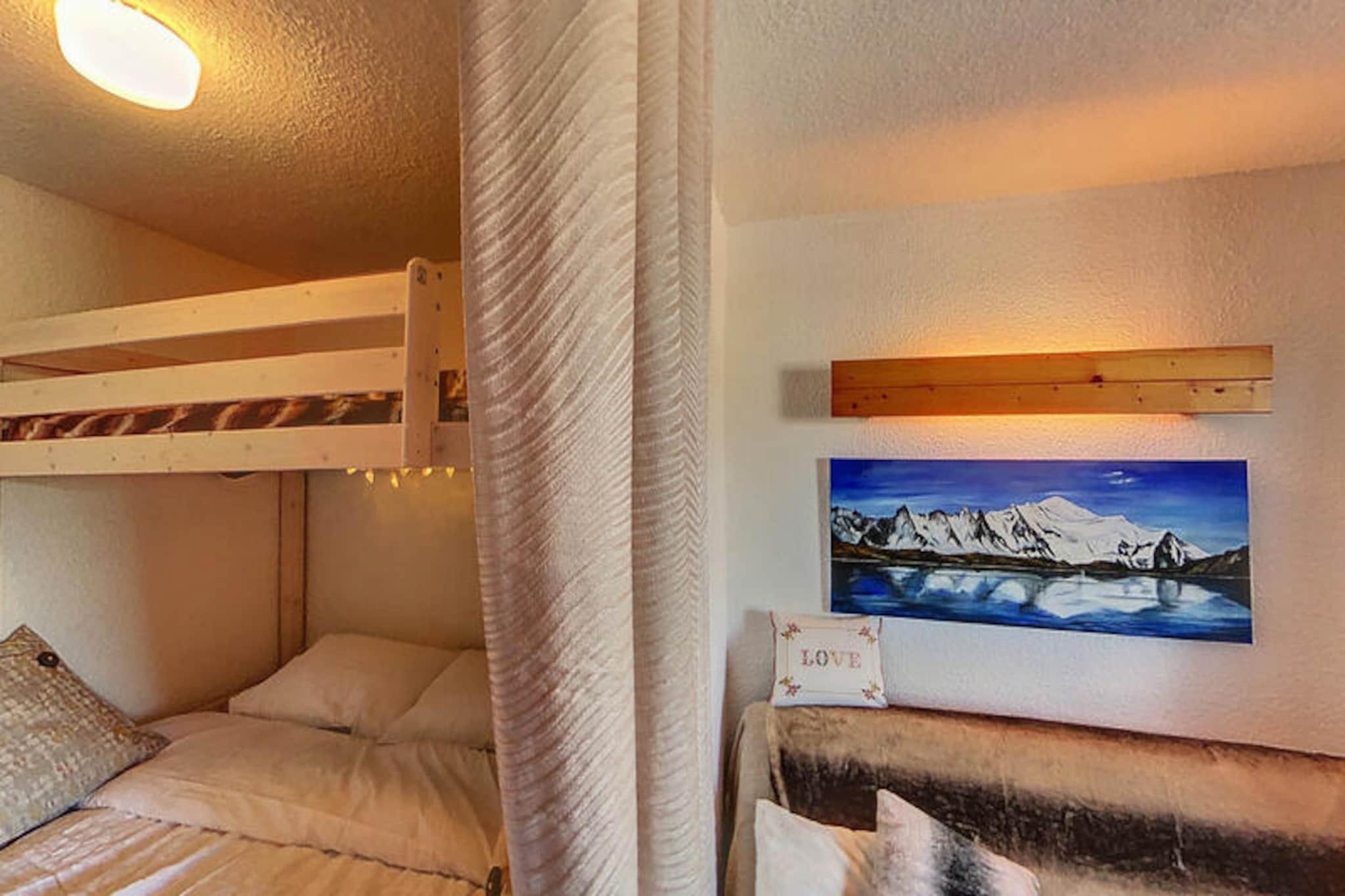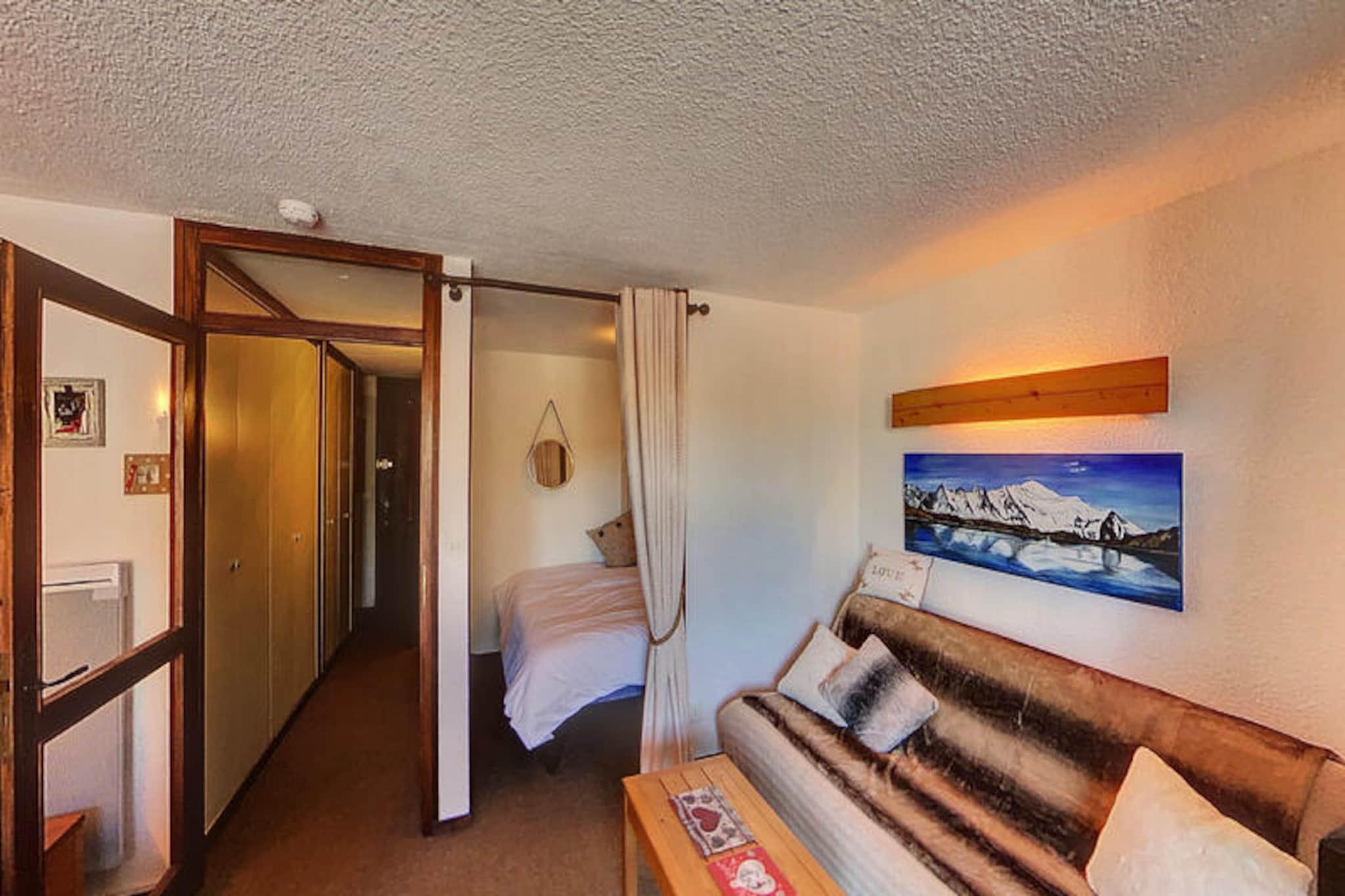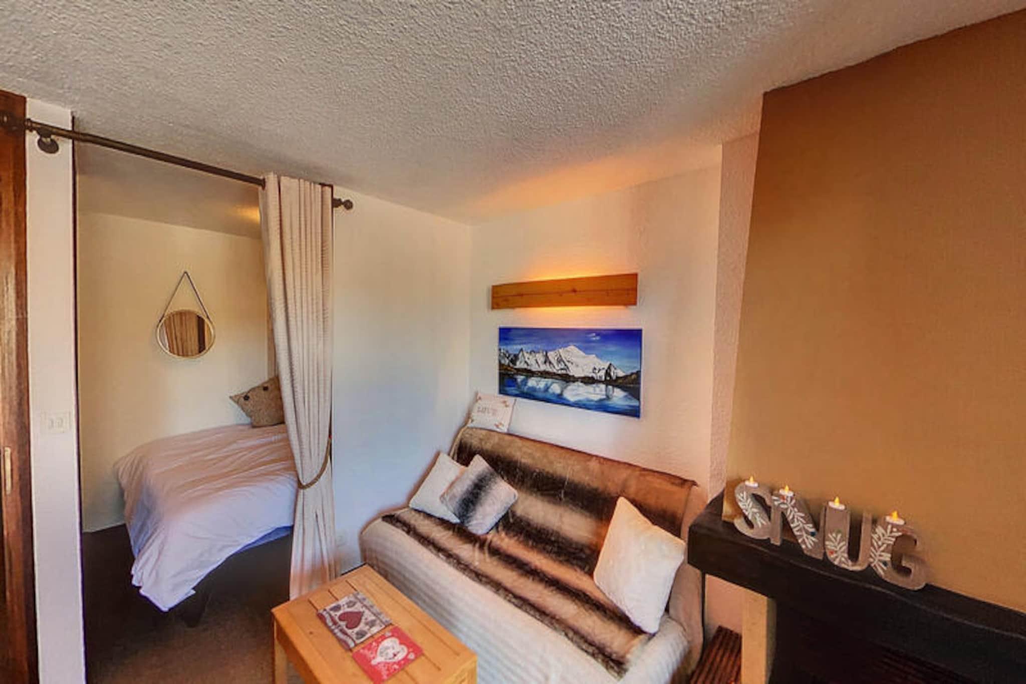 Amidst the serene charm of Les Carroz, this beautifully furnished studio apartment offers a cozy retreat just a short stroll from the village center. With its west-facing balcony, you can bask in the afternoon sun while enjoying views of the picturesque surroundings. Perfectly situated just 300 meters from the heart of the village and a mere 80 meters from the shuttle bus stop, this property ensures easy access to the slopes and local amenities, making it an ideal choice for skiers and mountain enthusiasts alike. The decorative fireplace adds a touch of alpine warmth, creating a welcoming atmosphere for your stay. \n\nDesigned to accommodate up to five guests, the studio features a smart layout with an entrance hall equipped with built-in wardrobes, a semi-enclosed sleeping alcove, and a living/dining area that seamlessly connects to the kitchenette. The alcove, separated by a curtain, provides privacy and includes a single bunk bed and two single beds side by side, while the living room offers a comfortable sofa bed. The kitchenette is fully equipped with modern appliances including an oven, refrigerator, ceramic hob, dishwasher, washing machine, and microwave, ensuring convenience for preparing meals after a day of adventure. \n\nLes Carroz is renowned for its vibrant village atmosphere and proximity to the Grand Massif ski area, offering endless opportunities for skiing, snowboarding, and hiking. The nearby shuttle bus stop makes it effortless to explore the slopes, while the village center boasts charming shops, restaurants, and après-ski options. Whether you’re visiting in winter or summer, the region’s natural beauty and outdoor activities promise unforgettable memories. \n\nChoose this delightful studio for its blend of comfort, convenience, and authentic alpine charm. It’s the perfect base for creating cherished moments in the French Alps.