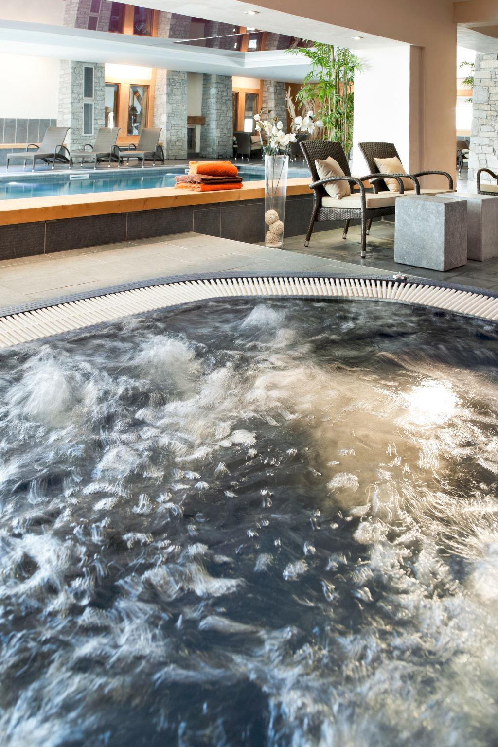 "CGH Rés&Spa Chalets de Jouvence 4*", 4-room apartment 70 to 80 m2. Comfortable and tasteful furnishings: living/sleeping room with 2 sofabeds, dining table and satellite TV. Exit to the balcony. 1 room with 1 french bed. 2 rooms, each room with 2 beds. Kitchenette (oven, dishwasher, 4 ceramic glass hob hotplates, toaster, kettle, electric coffee machine, steamer). Bath/WC, sep. WC, bath or shower. Electric heating. Wooden floors. Balcony or terrace. Balcony furniture. Facilities: telephone, baby cot, hair dryer. Internet (WiFi, free). Please note: maximum 1 pet/ dog allowed. Smoke alarm, fire extinguisher. Apartment in the main building. This type of flat can also be laid on 2 levels.