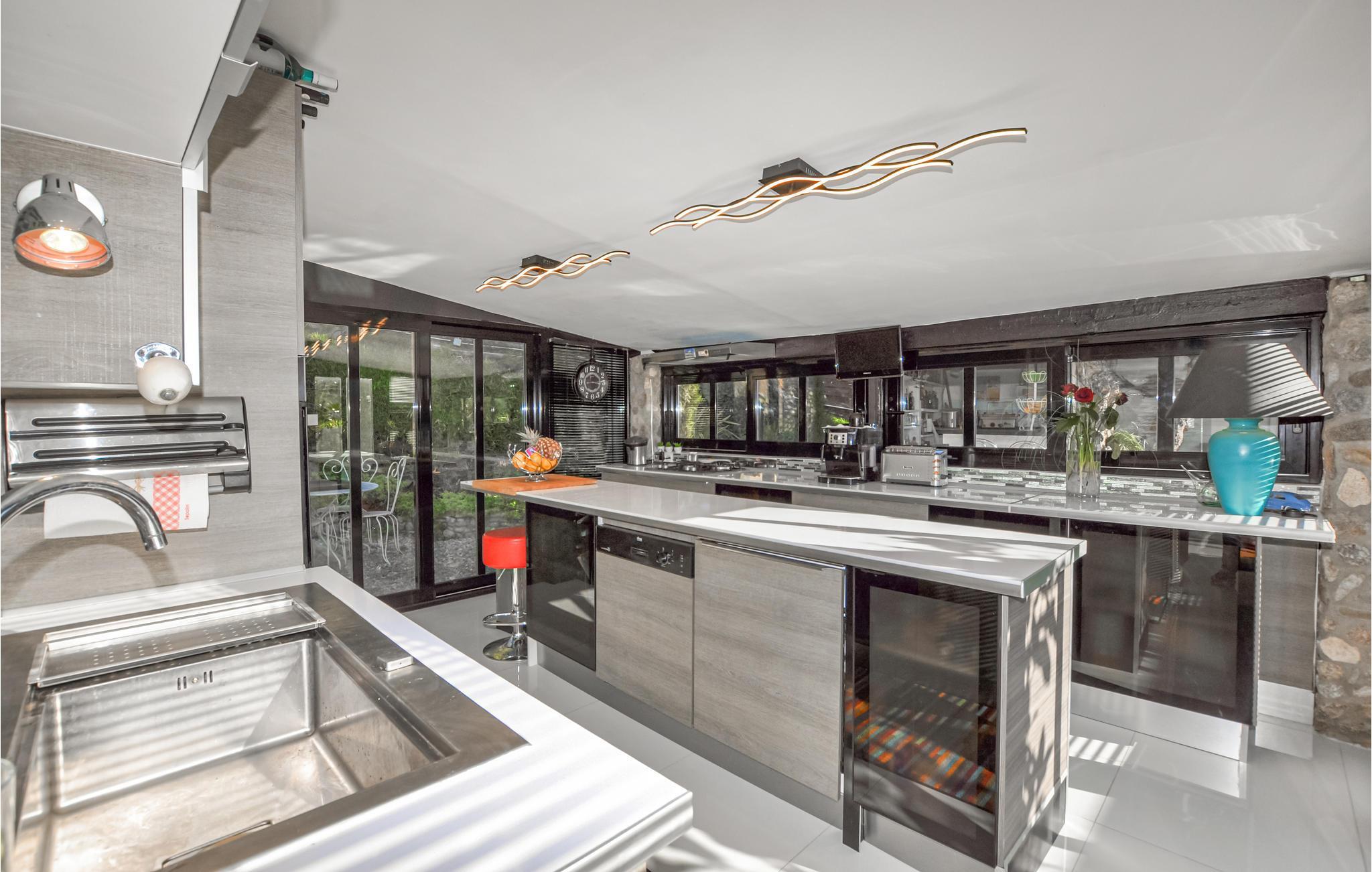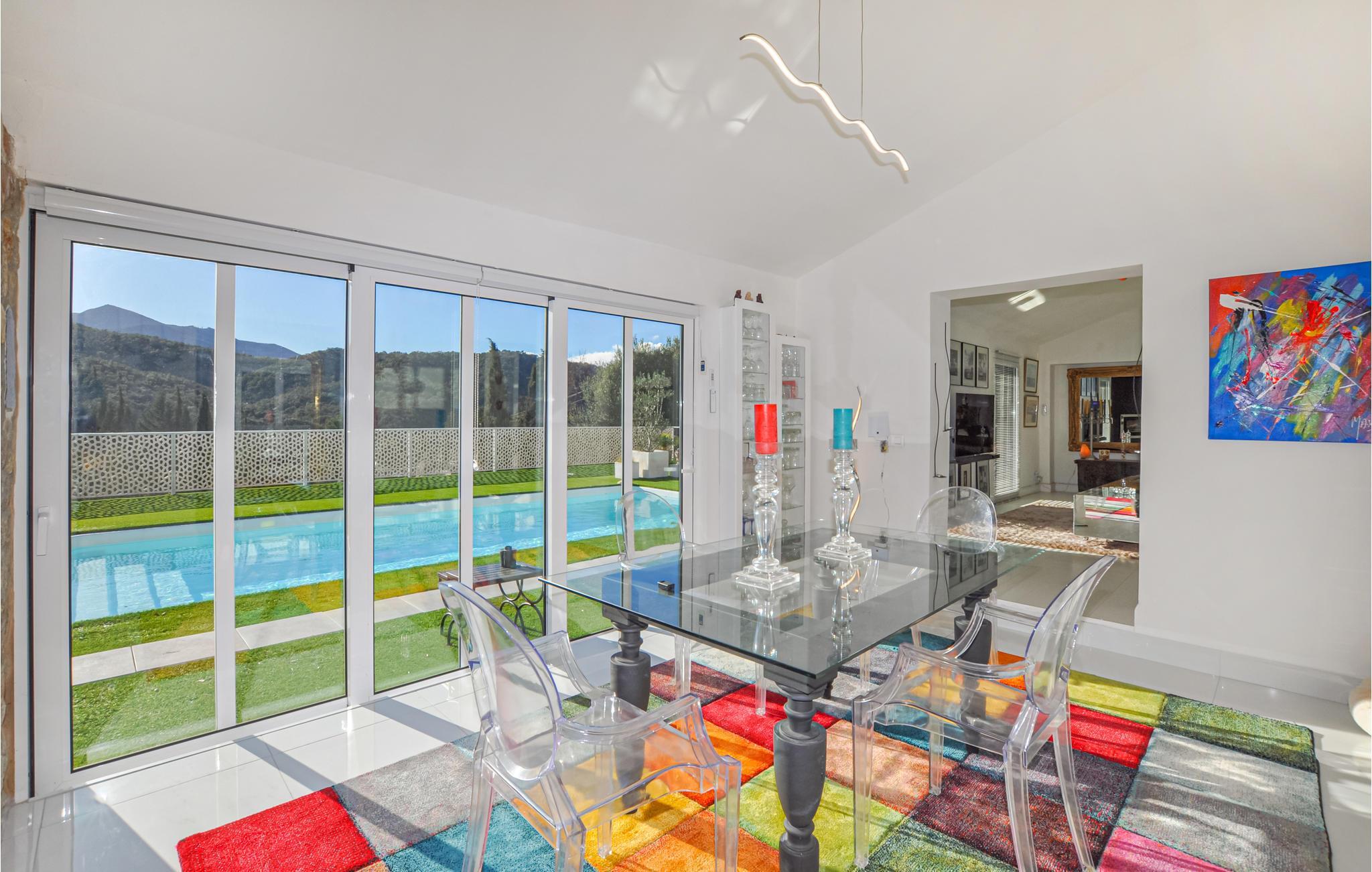 Genießen Sie in diesem hellen und geräumigen Ferienhaus einen traumhaften Urlaub mit allen Annehmlichkeiten. Die moderne und komfortable Einrichtung wird Sie sogleich verzaubern. Alle Räume befinden sich auf einer Ebene, und dank bodentiefer Fenster genießen Sie hier viel Tageslicht und aus dem Wohnzimmer einen schönen Blick auf den Poolbereich.
