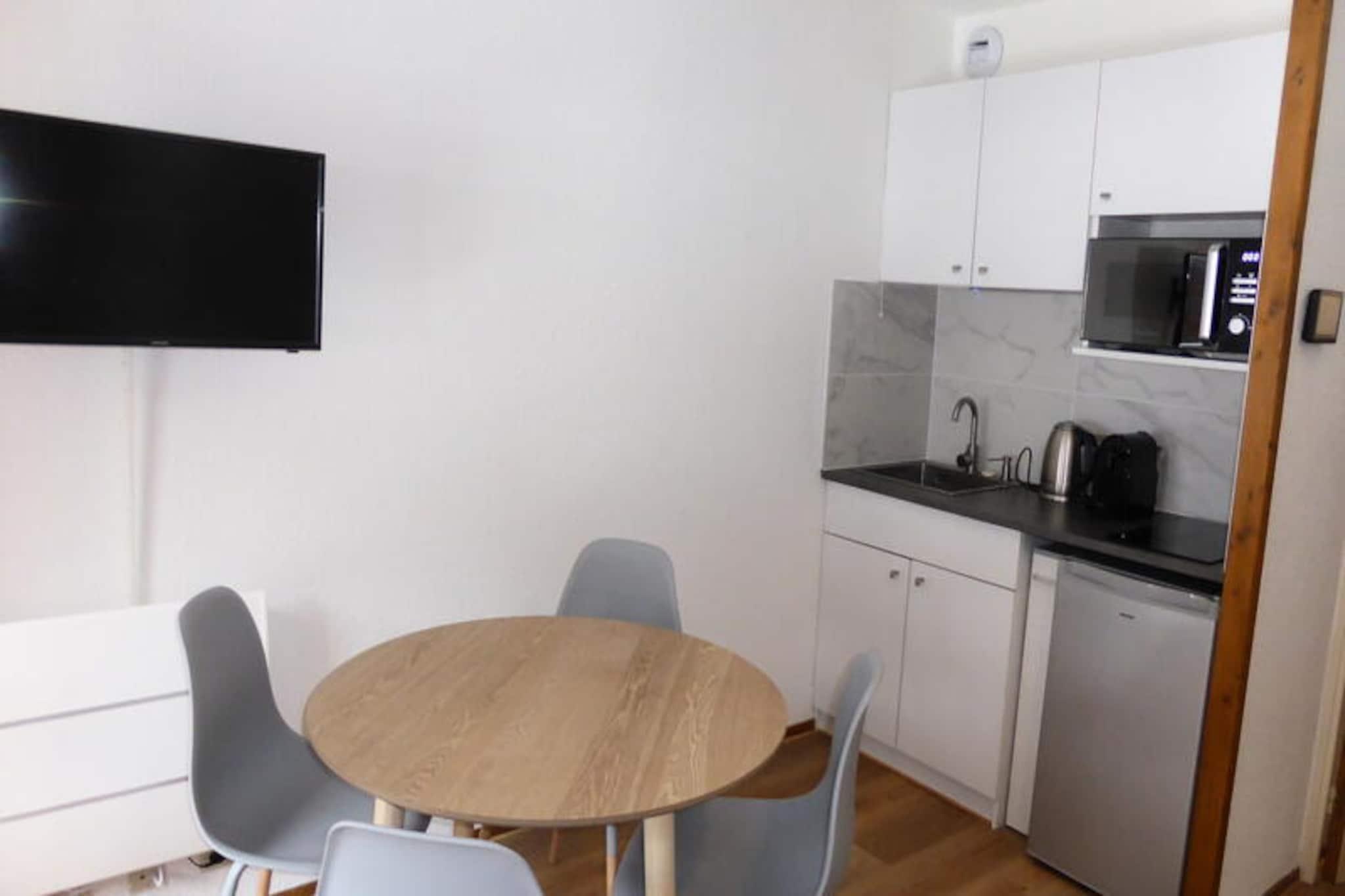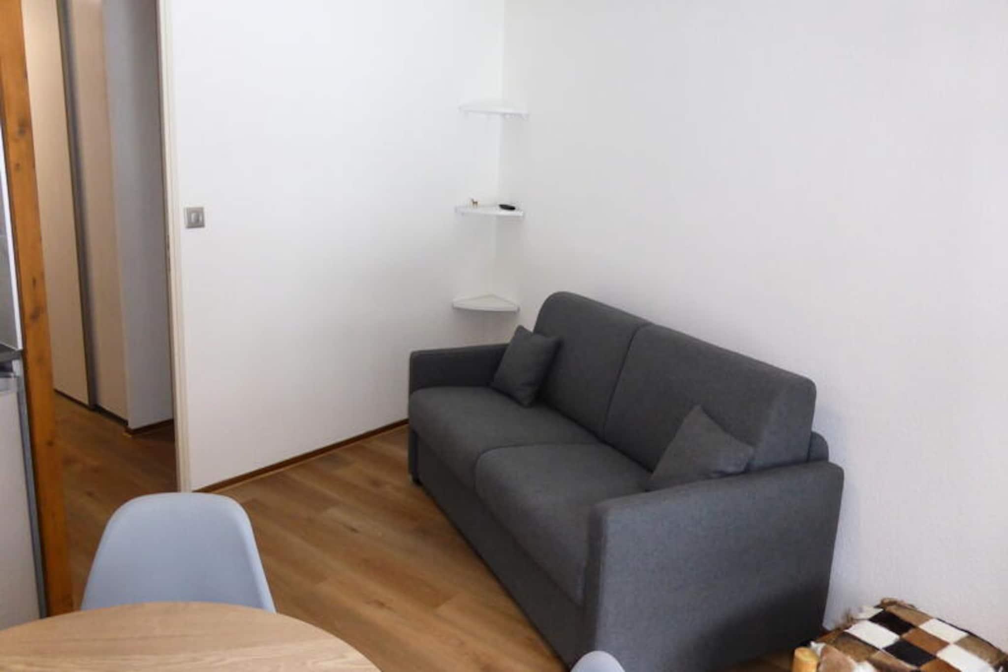 At the foot of Mont Blanc’s majestic peaks, this charming studio in Les Hameaux du Lay invites you to experience the serene beauty of the French Alps. Just 200 meters from the ski lifts and 1.4 kilometers from the heart of Les Contamines-Montjoie, it’s perfectly positioned for both adventure and relaxation. Wake up to the crisp alpine air and enjoy your morning coffee on the east-facing balcony as the sun rises over the mountains. Whether you’re here for skiing, hiking, or simply soaking in the tranquil surroundings, this cozy retreat offers a warm welcome year-round. \n\nDesigned for up to four guests, the studio is thoughtfully arranged to maximize comfort and functionality. The living room features a sofa bed, television, and dining area, while the kitchenette is equipped with modern appliances including a refrigerator, induction hob, and combination oven/microwave. A separate sleeping area with bunk beds ensures restful nights, and the bathroom is fitted with a bathtub, heated towel rail, and vanity. Additional conveniences include a ski locker and shared outdoor parking, making it easy to transition from your alpine adventures to the comfort of your home away from home.\n\nWithin Les Hameaux du Lay, you’ll find a grocery store, sports shops, and a bakery, ensuring all essentials are just steps away. The nearby ski lifts provide immediate access to the slopes, while the village center offers charming restaurants, shops, and cultural experiences. In summer, explore scenic trails, mountain lakes, and breathtaking vistas that make this region a paradise for outdoor enthusiasts. \n\nWhether you’re planning a family getaway or a trip with friends, this studio combines convenience, comfort, and the timeless allure of the Alps. Let the beauty of Les Contamines-Montjoie inspire unforgettable memories during your stay.