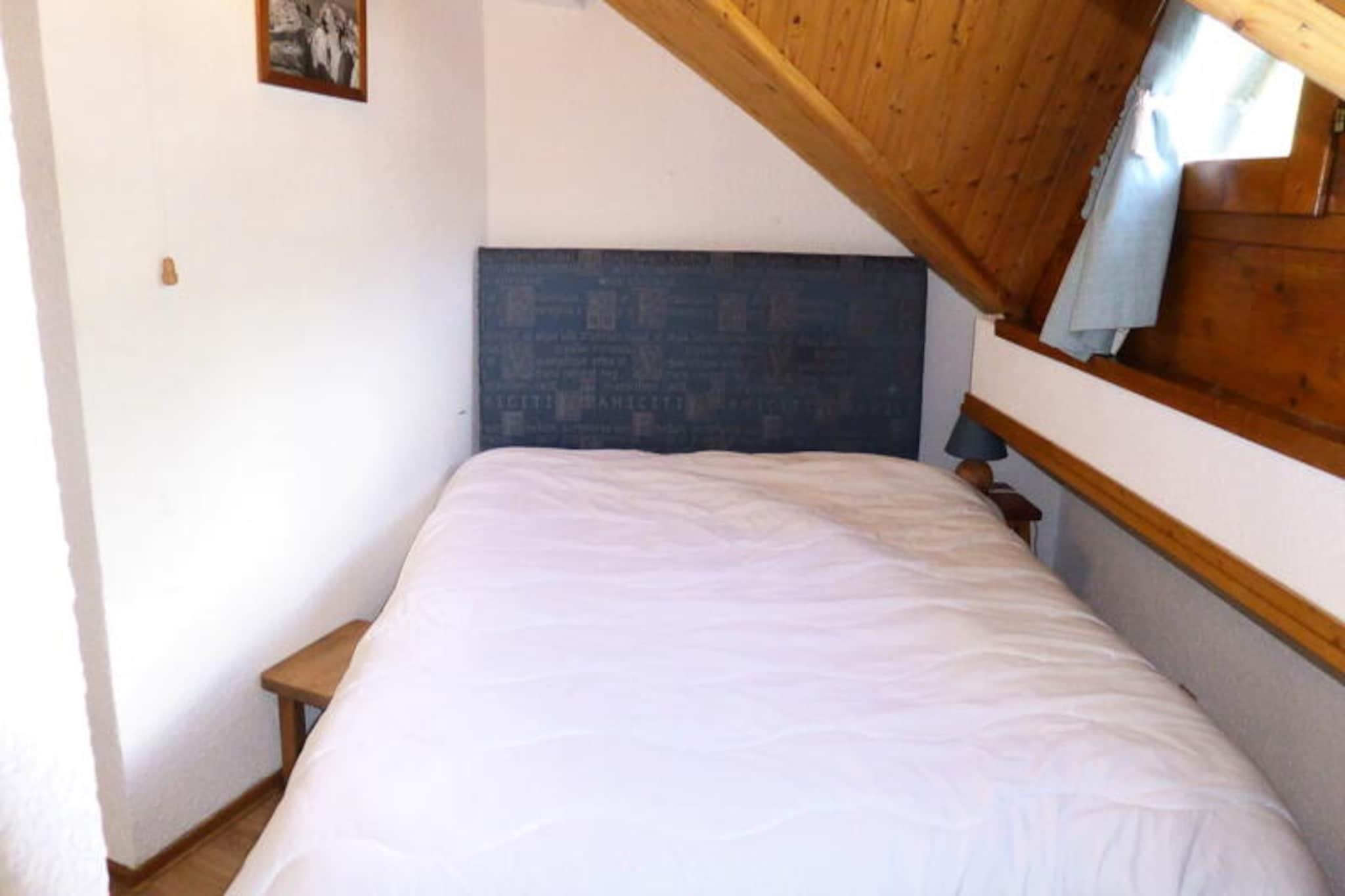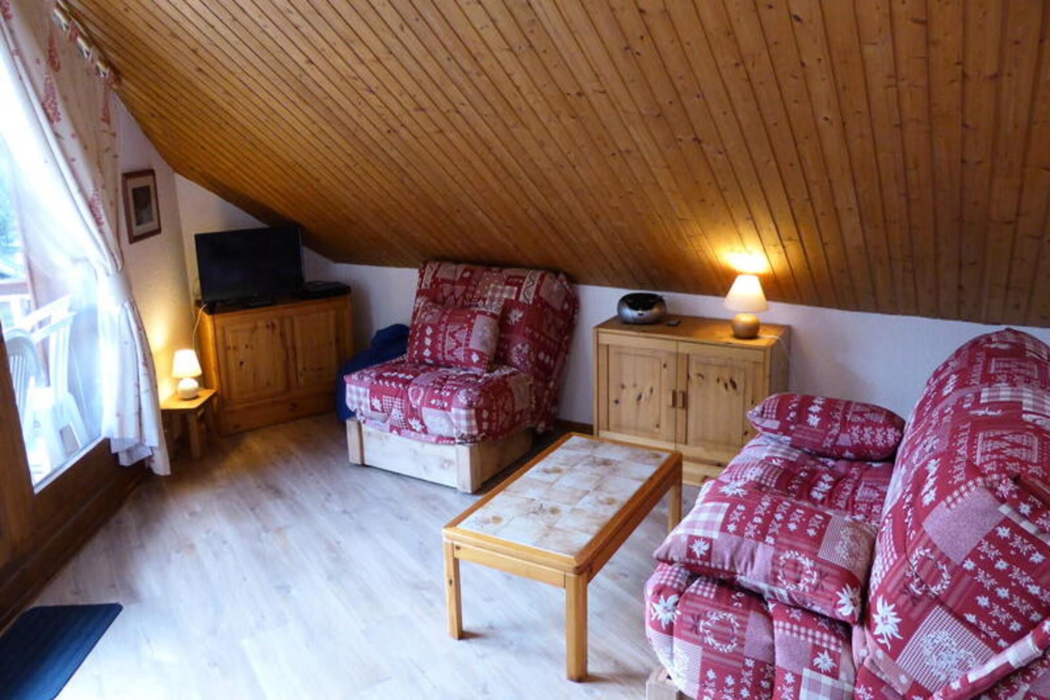 Surrounded by the majestic peaks of the Mont Blanc massif, this charming attic apartment in Les Contamines-Montjoie offers a cozy retreat for families and friends seeking alpine adventures. Located in the 'Les Combettes' residence within Les Hameaux du Lay, you’re just 200 meters from the ski lifts and 1.4 kilometers from the village center, making it an ideal base for exploring the slopes and the picturesque surroundings. The south-facing balcony invites you to soak in breathtaking mountain views while enjoying your morning coffee or unwinding after a day of exploration. \n\nThe apartment spans 38.48 m², including 13.66 m² under 1.80 meters, and comfortably accommodates up to five guests. The living room features a sofa bed for two, a single armchair bed, a television, and a dining area, creating a welcoming space to relax. The kitchenette is equipped with essentials like a microwave, refrigerator, toaster, and kettle, ensuring convenience for preparing meals. A separate bedroom with a double bed provides a peaceful retreat, while the bathroom with a bathtub and a separate toilet add to the comfort. Additional amenities include shared outdoor parking, a ski locker, and optional services such as Wi-Fi router rental and linen rental for added ease. \n\nWithin Les Hameaux du Lay, you’ll find a grocery store, sports shops, and a bakery, offering everything you need for a comfortable stay. Beyond the immediate vicinity, Les Contamines-Montjoie boasts a wealth of activities, from skiing and snowboarding in winter to hiking and mountain biking in summer. The nearby Mont Blanc trails and nature reserves promise unforgettable experiences for outdoor enthusiasts. Whether you’re seeking thrilling adventures or serene moments in the Alps, this apartment is your gateway to a memorable holiday.