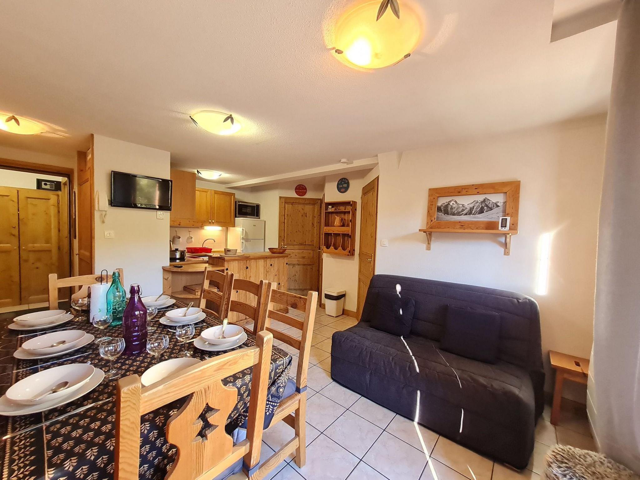 "Balcons des Pistes C", 3-room apartment 57 m2 on 2nd floor. Object suitable for 8 adults. 1 room with 1 double bed and TV. 1 room with 1 double bed. Living room with 1 sofabed and 1 x 2 bunk beds, 1 pull-out bed. Open kitchen (oven, dishwasher, 4 ceramic glass hob hotplates, toaster, kettle, microwave, freezer, electric coffee machine). Bath/WC, shower/WC. Balcony. View of the mountains. Facilities: washing machine. Garage (1 car). Please note: non-smokers only. 1 pet/ dog allowed. Offer by a commercial proprietor according to Art. 155, IV, CGI 38253003311WR