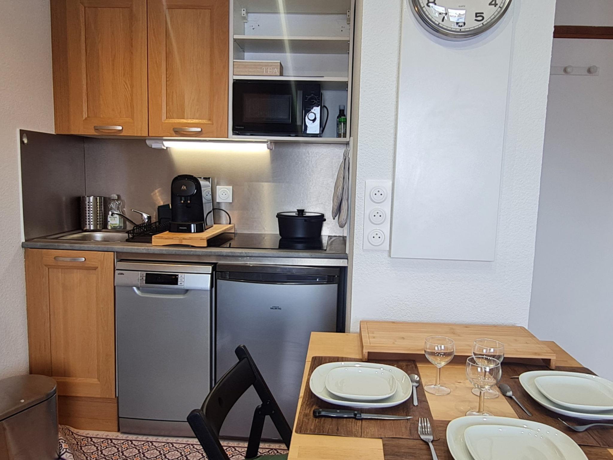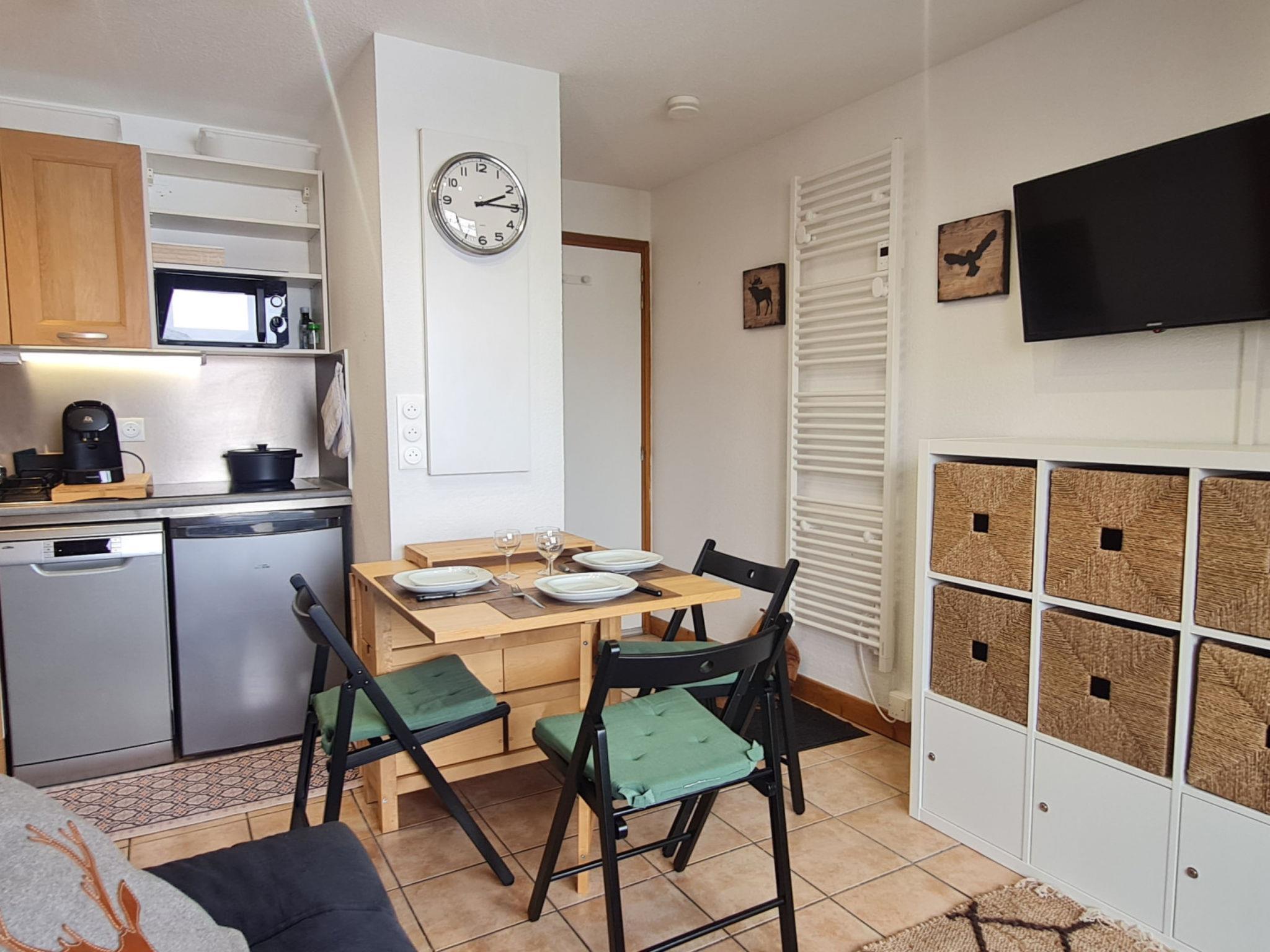 "Chalets d'Or", 2-room apartment 20 m2 on 1st floor. Object suitable for 4 adults. 1 room with 2 beds and TV. Living room with 1 sofabed and 1 pull-out bed. Open kitchen (4 hot plates, oven, dishwasher, toaster, kettle, microwave, electric coffee machine). Shower/WC, sep. WC. Balcony. Facilities: washing machine, iron. Internet (WiFi, free). Please note: non-smokers only. Offer by a commercial proprietor according to Art. 155, IV, CGI 38253004410AK