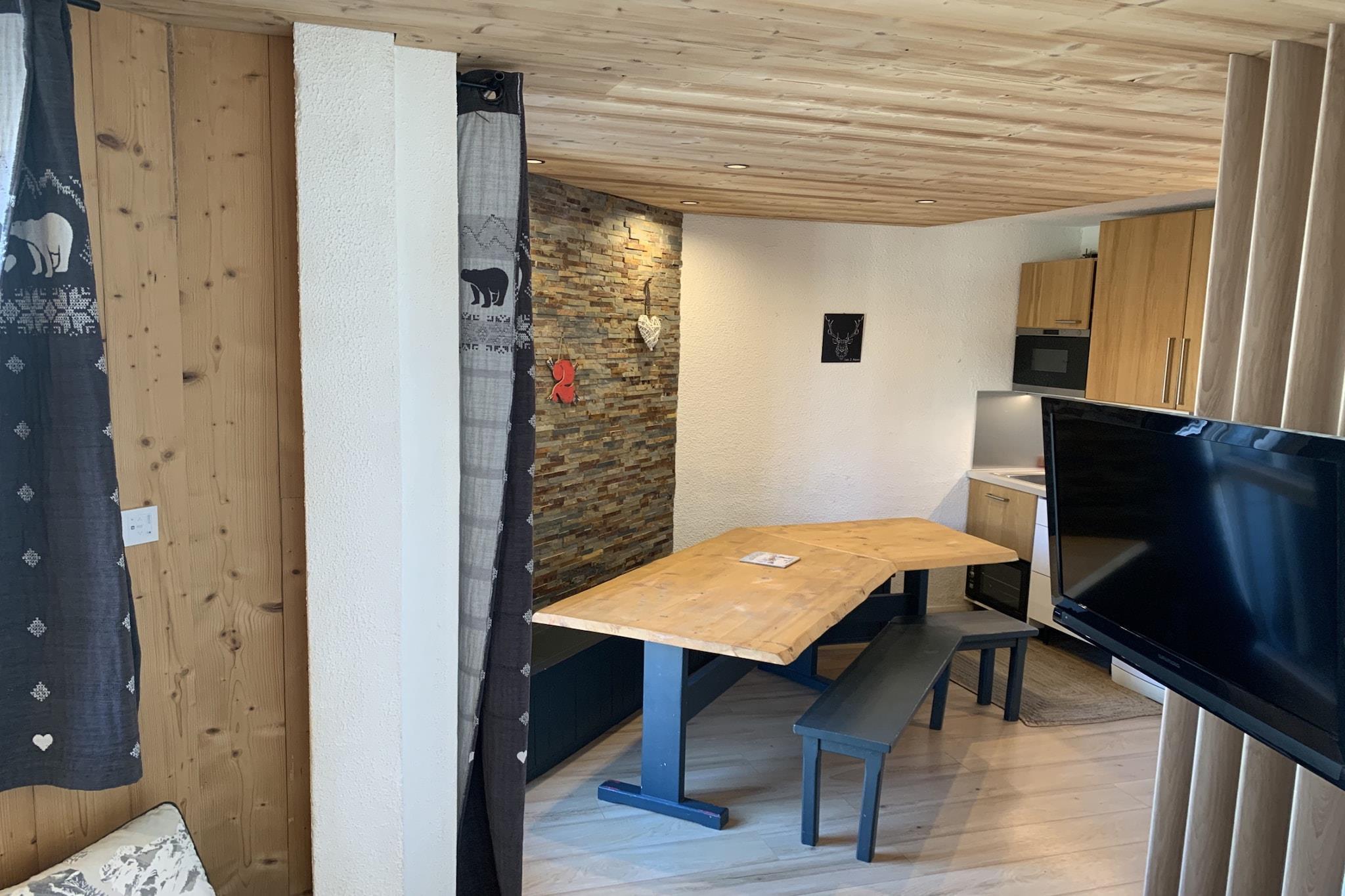 This welcoming 2-bedroom apartment in Les Deux Alpes offers a cozy and fully equipped space for up to six guests. With 47 m² of homely comfort, it’s perfect for families or small groups seeking mountain charm and convenience. Located just 50 meters from the ski resort, 90 meters from the restaurant Casa Nostra, and 150 meters from the Sherpa supermarket, everything you need is within easy reach in this peaceful, family-friendly alpine zone. The apartment features a balcony with mountain and slope views, electric heating, a TV, and open-air parking in the same building. Guests also benefit from an elevator and a dryer, adding to the ease of your stay. Whether you're relaxing after a day on the slopes or enjoying a quiet evening indoors, the space is designed for comfort and practicality. The open-plan electric kitchen includes a refrigerator, microwave, freezer, dishwasher, coffee machine, toaster, and all necessary dishes and utensils. Whether you're preparing a hearty breakfast or a cozy dinner, this apartment provides all the essentials for a self-catered alpine escape.