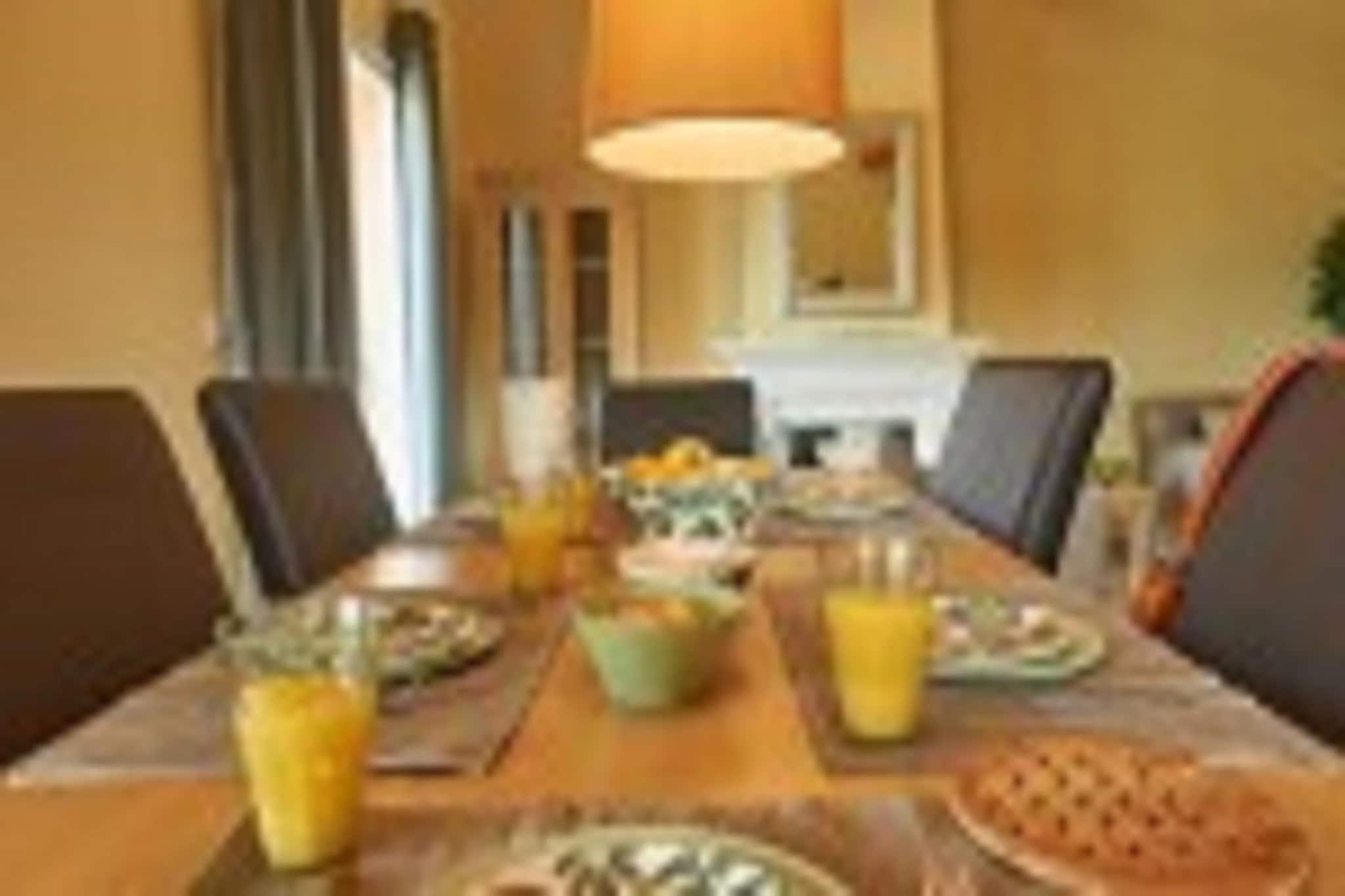 Ground floor: (hallway, Living room(TV(dutch television channels), fireplace, DVD player), Kitchen(oven, combination microwave, dishwasher, fridge-freezer), bedroom(2x single bed), bedroom(2x single bed), bathroom(shower, washbasin), bathroom(bath tub, washbasin), toilet, toilet) washing machine, garden doors, heating(central), terrace(roofed), garden, garden furniture, BBQ, swimming pool(shared with other guests), swimming pool(private), boules court