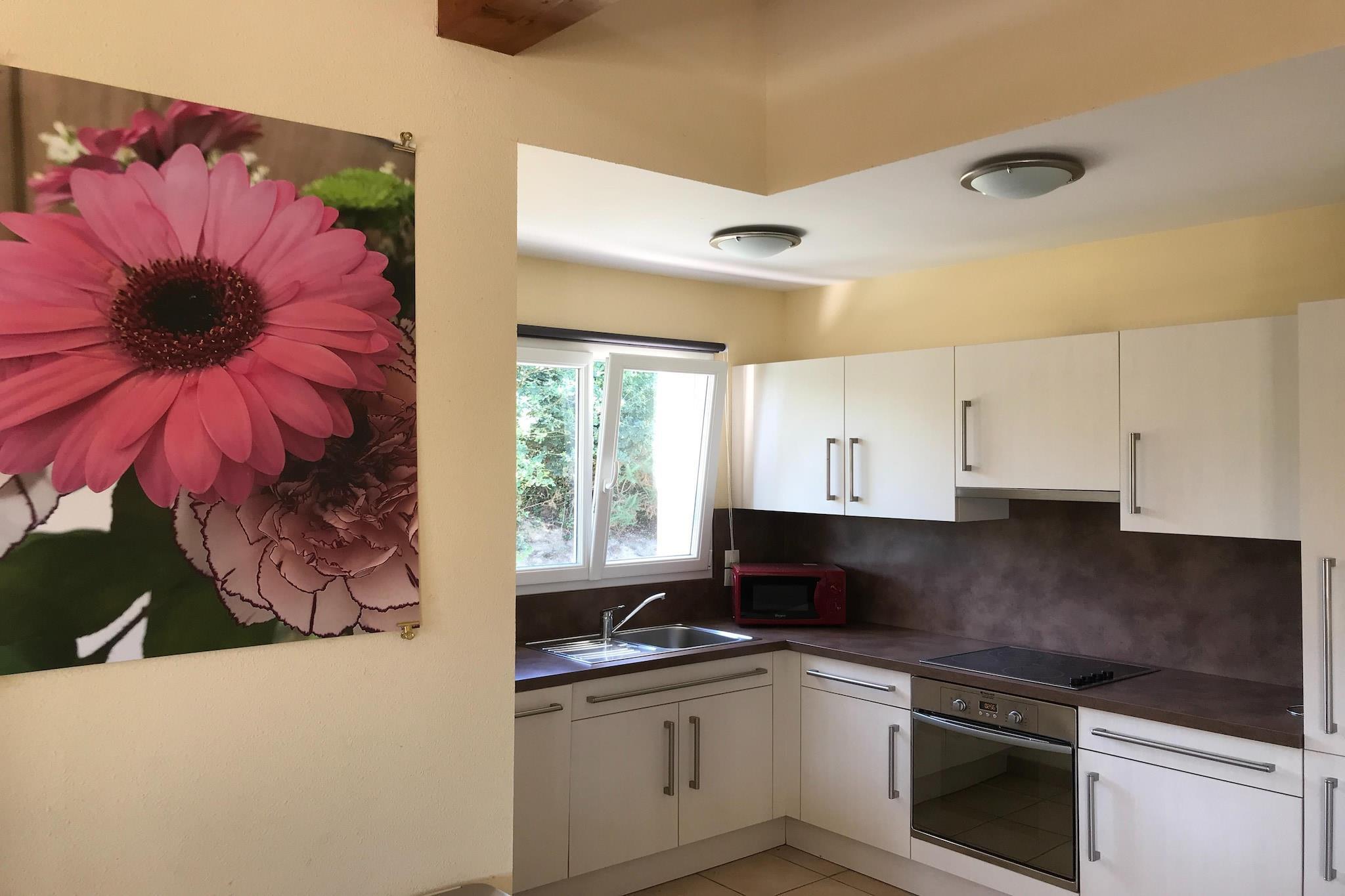 Ground floor: (open kitchen(boiling water tap, toaster, coffee machine, oven, microwave, dishwasher, fridge-freezer), pantry(washing machine), pantry, Living/diningroom(TV, dining table(6 persons), fireplace, seating area(6 persons)), bedroom(single bed(90 x 190 cm), single bed(90 x 190 cm)), bedroom(single bed(90 x 190 cm), single bed(90 x 190 cm)), Bedroom with bathroom(single bed(90 x 190 cm), single bed(90 x 190 cm)), bathroom(bathtub with shower, toilet), bathroom(shower), toilet(toilet, toilet)) playroom, stove, Bubble bath, infrared sauna(paid), washing machine, heating, terrace, garden, bicycle storage, garden furniture, BBQ, parking, swimming pool(shared with other guests, including separate children’s swimming pool (depth 50cm)), boules court, table tennis table, bicycles available