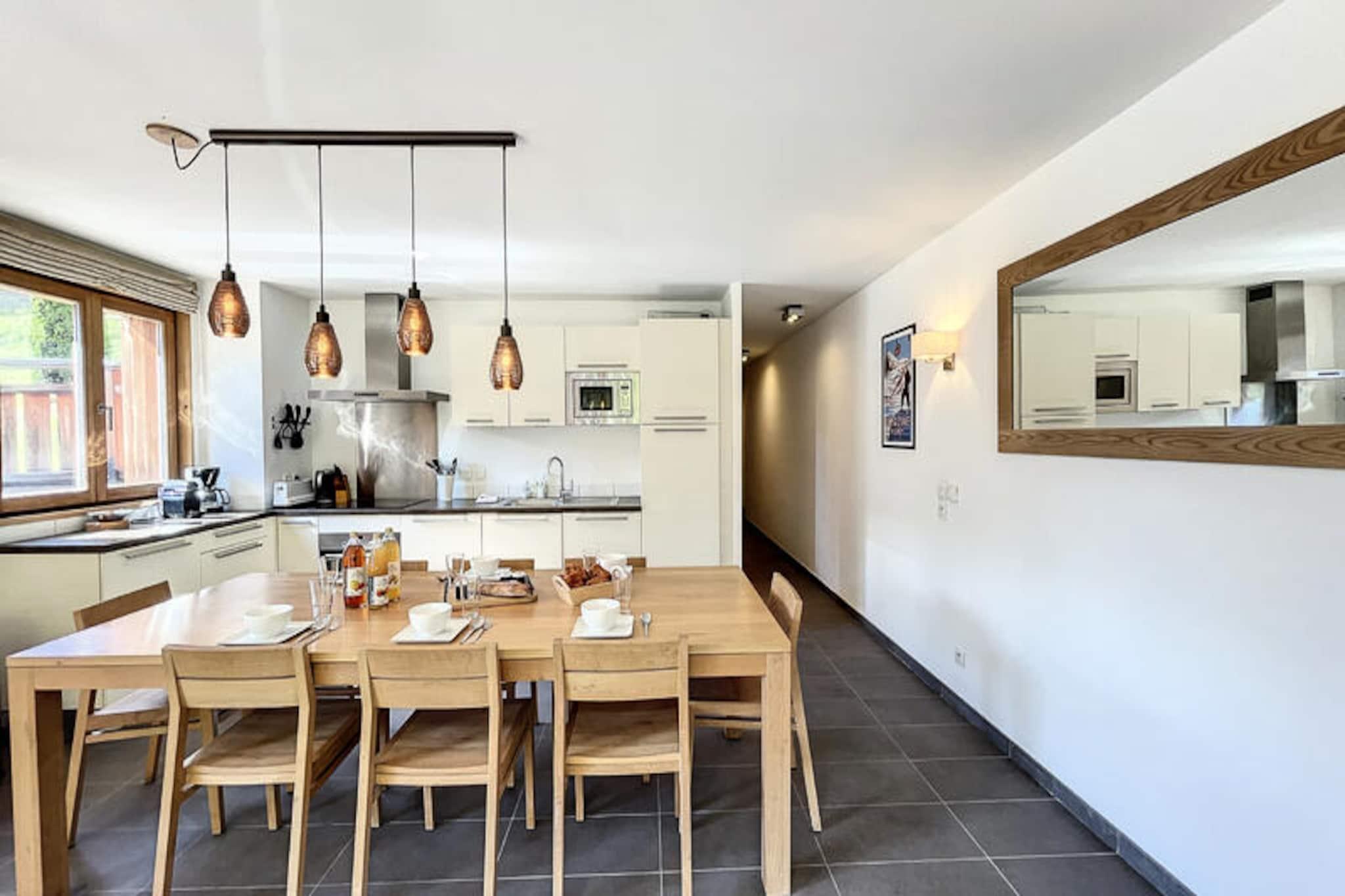 Amidst the enchanting charm of Les Gets, this stunning apartment invites you to immerse yourself in the beauty of the French Alps. Designed to accommodate up to six guests, its 92 m² of modern comfort and style make it the perfect retreat for families or friends seeking a memorable mountain getaway. From the moment you arrive, the breathtaking alpine scenery and vibrant village atmosphere set the tone for an unforgettable holiday. \n\nInside, the apartment boasts three cozy bedrooms, ensuring restful nights after days filled with adventure. The open-plan kitchen is a haven for culinary enthusiasts, equipped with an induction hob, refrigerator, microwave, oven, dishwasher, and all the utensils you need to prepare delicious meals. Relax in the living area with a television or step onto the balcony to soak in the crisp mountain air and stunning views. High-speed Wi-Fi keeps you connected, whether for work or sharing your holiday moments with loved ones. \n\nSituated just steps from the supermarket, ski slopes, and the renowned Restaurant La Fruitière, the location is ideal for exploring all Les Gets has to offer. The nearby 4-season toboggan run, Lac des Ecoles, golf course, and town center provide endless opportunities for fun and relaxation. Whether skiing in winter or hiking in summer, the region’s activities promise excitement for all ages. \n\nThis apartment is more than just a place to stay; it’s your gateway to the magic of the mountains. Experience the perfect blend of adventure, comfort, and alpine charm in Les Gets.